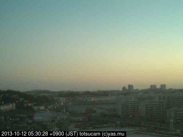 横浜市戸塚駅周辺から 東戸塚方面(北北東)を望む展望カメラの映像です。 左は現在の映像です。 下に並んでいるのは、 7日間に亘る日の出どき、昼間、夕暮れどきの写真(サムネイル)です。 それぞれ、日の出15分前、南中時、日没20分後の写真となっています。 各写真の下にはmpeg形式の動画へのリンクがあります。 それぞれ、日の出、南中、日没の前後1時間の画像です。 右欄にはその日24時間の動画へのリンクがあります。 この7日間以外は日付が一覧表示されています。 日付部分をクリックすると、 その日付から7日分が展開されて表示されます。