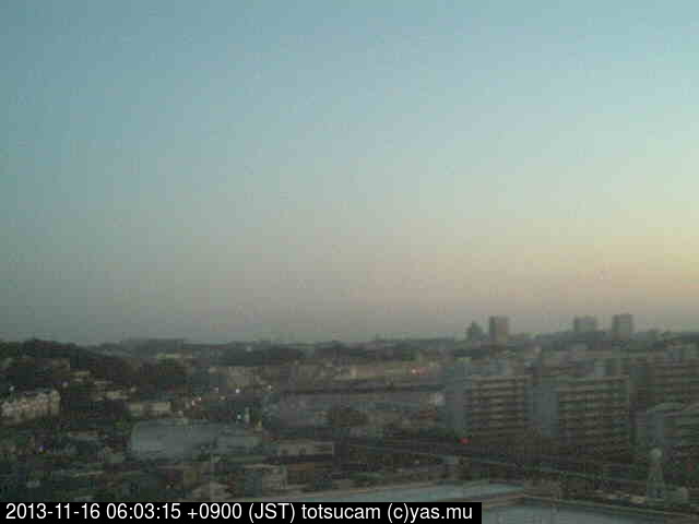 横浜市戸塚駅周辺から 東戸塚方面(北北東)を望む展望カメラの映像です。 左は現在の映像です。 下に並んでいるのは、 7日間に亘る日の出どき、昼間、夕暮れどきの写真(サムネイル)です。 それぞれ、日の出15分前、南中時、日没20分後の写真となっています。 各写真の下にはmpeg形式の動画へのリンクがあります。 それぞれ、日の出、南中、日没の前後1時間の画像です。 右欄にはその日24時間の動画へのリンクがあります。 この7日間以外は日付が一覧表示されています。 日付部分をクリックすると、 その日付から7日分が展開されて表示されます。