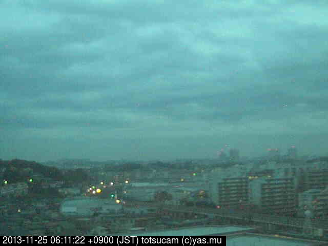 横浜市戸塚駅周辺から 東戸塚方面(北北東)を望む展望カメラの映像です。 左は現在の映像です。 下に並んでいるのは、 7日間に亘る日の出どき、昼間、夕暮れどきの写真(サムネイル)です。 それぞれ、日の出15分前、南中時、日没20分後の写真となっています。 各写真の下にはmpeg形式の動画へのリンクがあります。 それぞれ、日の出、南中、日没の前後1時間の画像です。 右欄にはその日24時間の動画へのリンクがあります。 この7日間以外は日付が一覧表示されています。 日付部分をクリックすると、 その日付から7日分が展開されて表示されます。