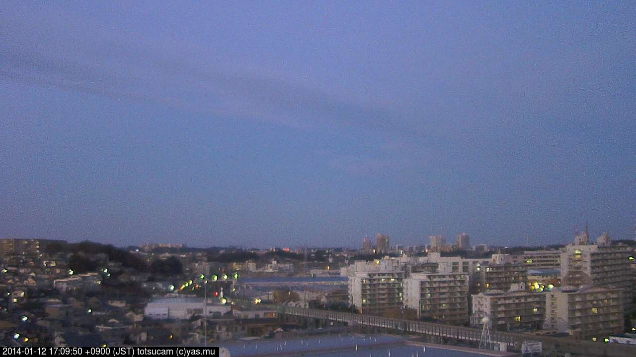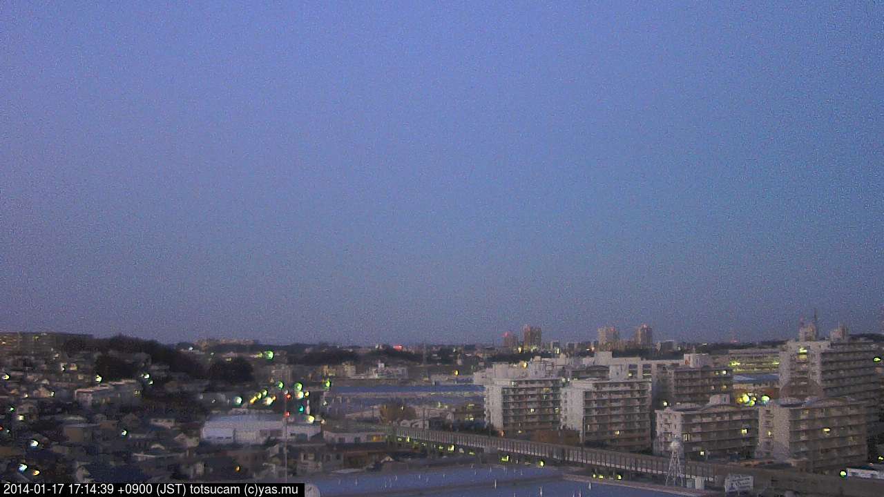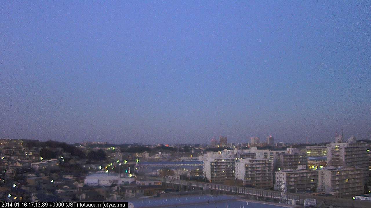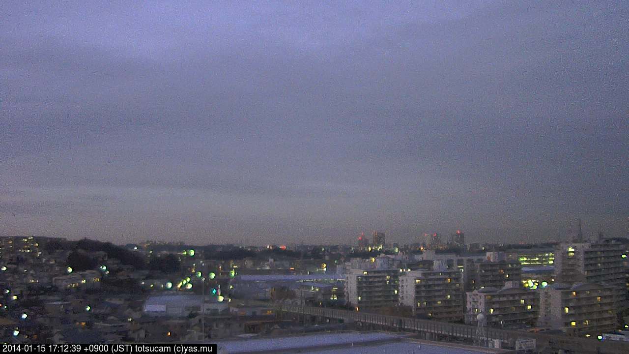 適度に曇った日の雲の動き (例: 2005-10-24) がとても楽しめます。 正面を横切っている高架は横須賀線下りです。 その下に横須賀線上り、東海道線、同貨物線が走っていますが、 高架に隠れていてよく見えません。 夜間は特に中央左寄りの車の動きがよく見えます。
