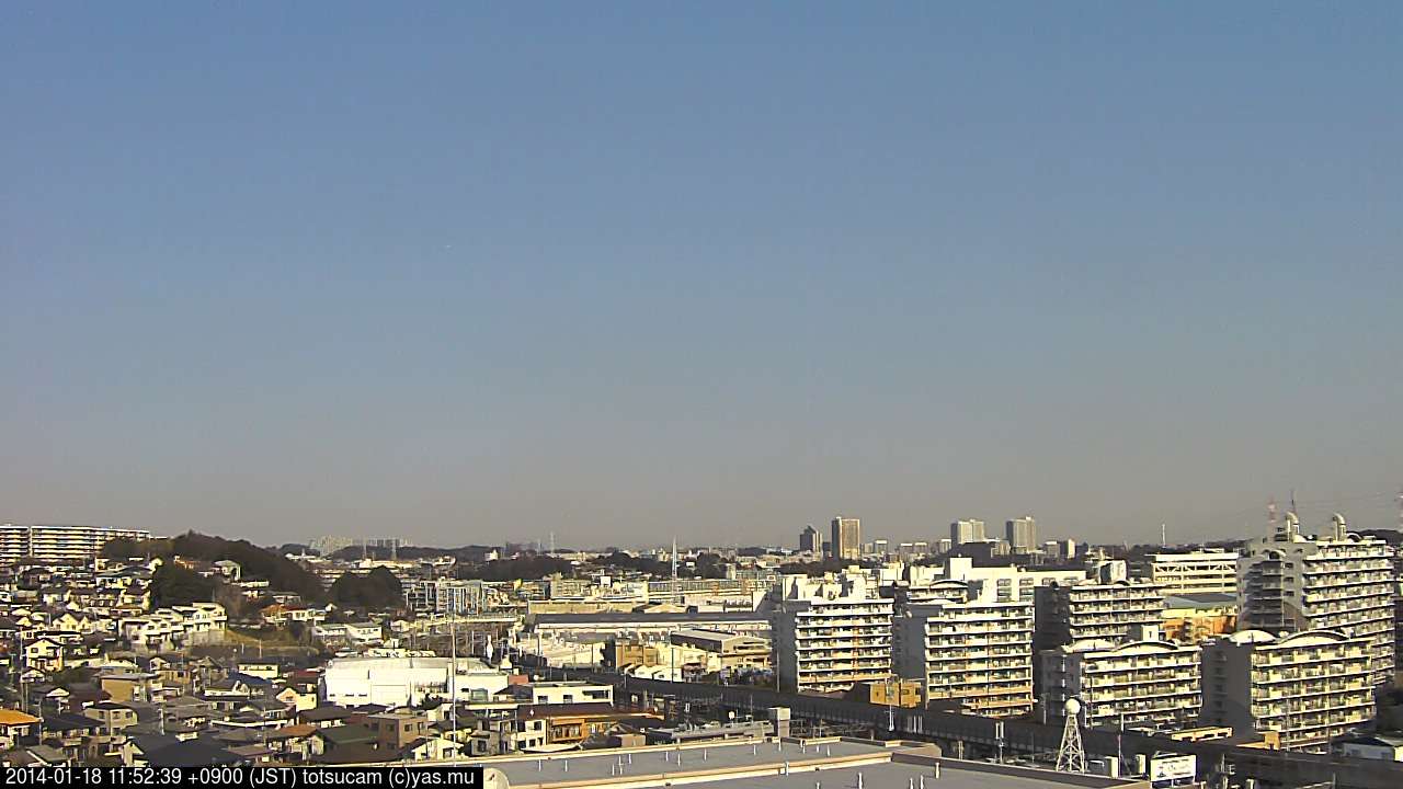 適度に曇った日の雲の動き (例: 2005-10-24) がとても楽しめます。 正面を横切っている高架は横須賀線下りです。 その下に横須賀線上り、東海道線、同貨物線が走っていますが、 高架に隠れていてよく見えません。 夜間は特に中央左寄りの車の動きがよく見えます。
