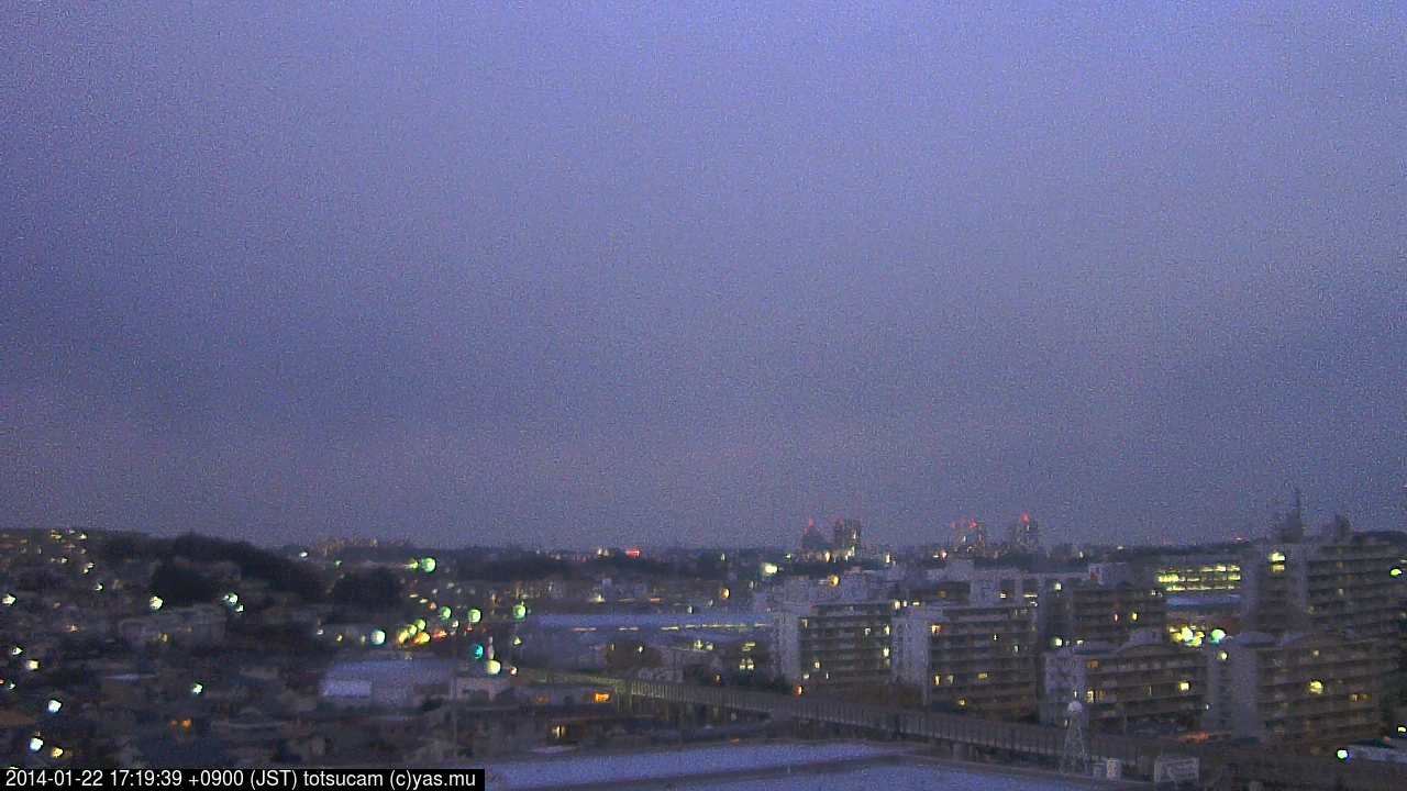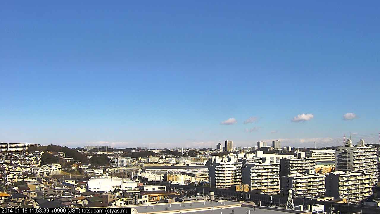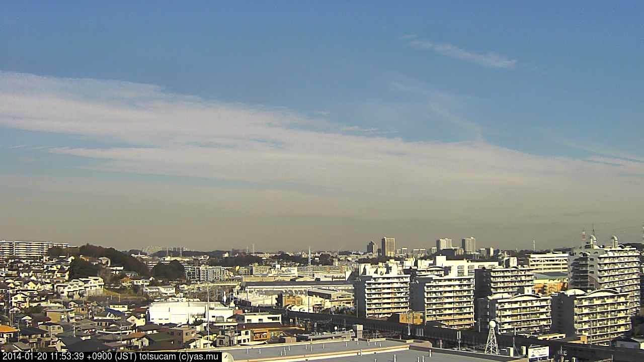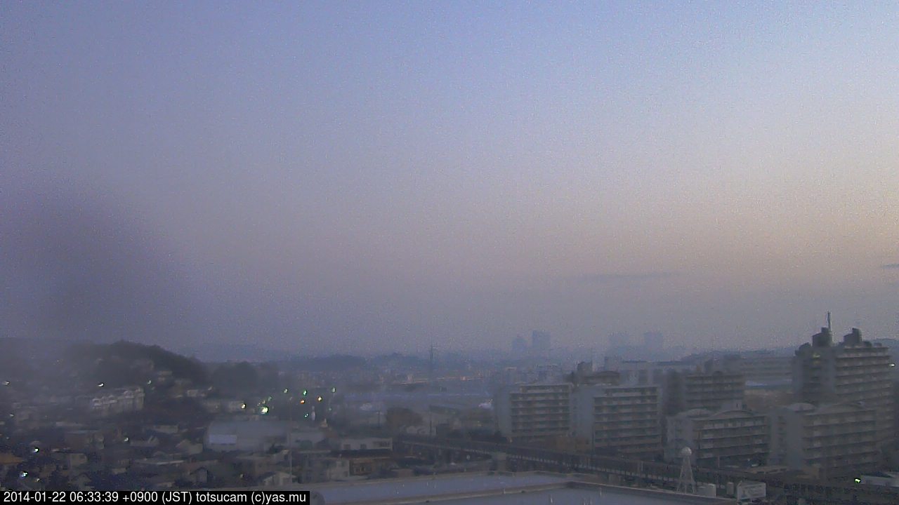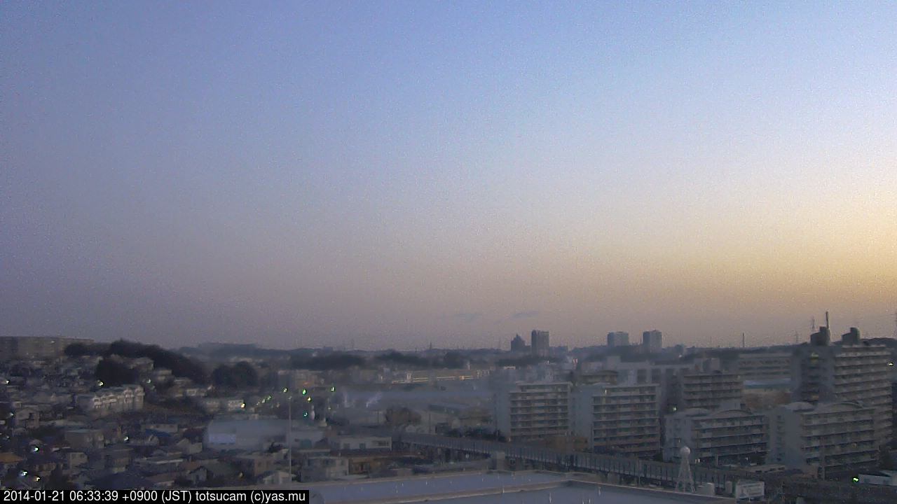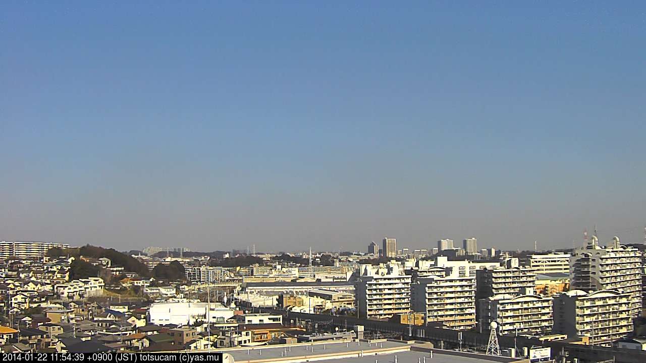 横浜市戸塚駅周辺から 東戸塚方面(北北東)を望む展望カメラの映像です。 左は現在の映像です。 下に並んでいるのは、 7日間に亘る日の出どき、昼間、夕暮れどきの写真(サムネイル)です。 それぞれ、日の出15分前、南中時、日没20分後の写真となっています。 各写真の下にはmpeg形式の動画へのリンクがあります。 それぞれ、日の出、南中、日没の前後1時間の画像です。 右欄にはその日24時間の動画へのリンクがあります。 この7日間以外は日付が一覧表示されています。 日付部分をクリックすると、 その日付から7日分が展開されて表示されます。
