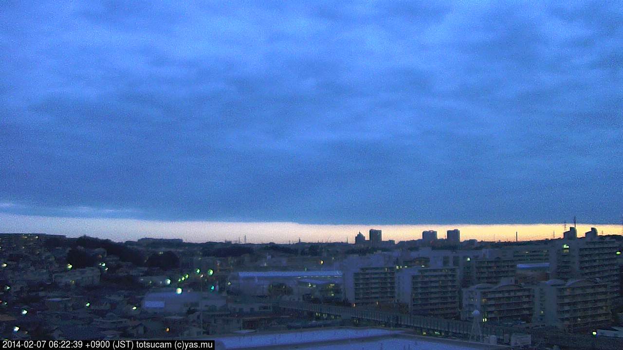 横浜市戸塚駅周辺から 東戸塚方面(北北東)を望む展望カメラの映像です。 左は現在の映像です。 下に並んでいるのは、 7日間に亘る日の出どき、昼間、夕暮れどきの写真(サムネイル)です。 それぞれ、日の出15分前、南中時、日没20分後の写真となっています。 各写真の下にはmpeg形式の動画へのリンクがあります。 それぞれ、日の出、南中、日没の前後1時間の画像です。 右欄にはその日24時間の動画へのリンクがあります。 この7日間以外は日付が一覧表示されています。 日付部分をクリックすると、 その日付から7日分が展開されて表示されます。