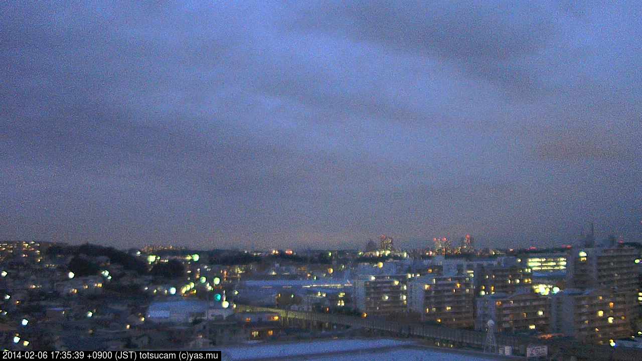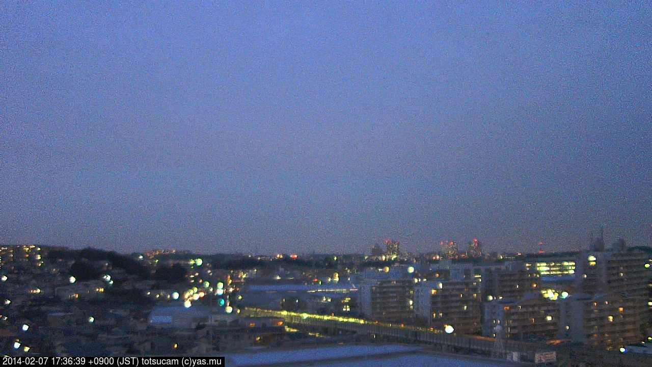 適度に曇った日の雲の動き (例: 2005-10-24) がとても楽しめます。 正面を横切っている高架は横須賀線下りです。 その下に横須賀線上り、東海道線、同貨物線が走っていますが、 高架に隠れていてよく見えません。 夜間は特に中央左寄りの車の動きがよく見えます。