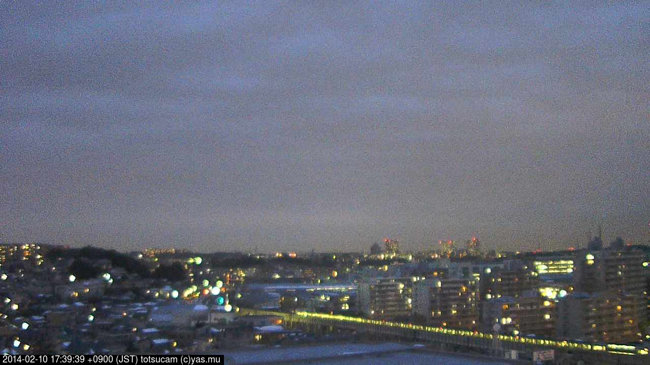 適度に曇った日の雲の動き (例: 2005-10-24) がとても楽しめます。 正面を横切っている高架は横須賀線下りです。 その下に横須賀線上り、東海道線、同貨物線が走っていますが、 高架に隠れていてよく見えません。 夜間は特に中央左寄りの車の動きがよく見えます。