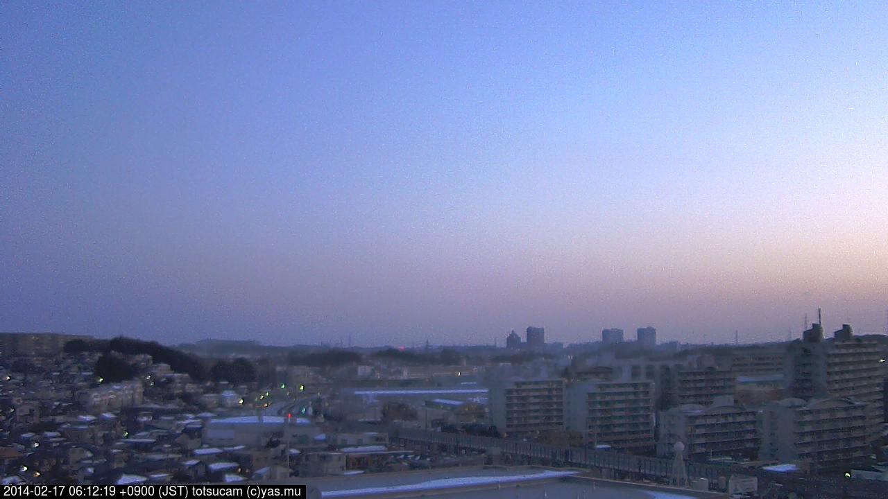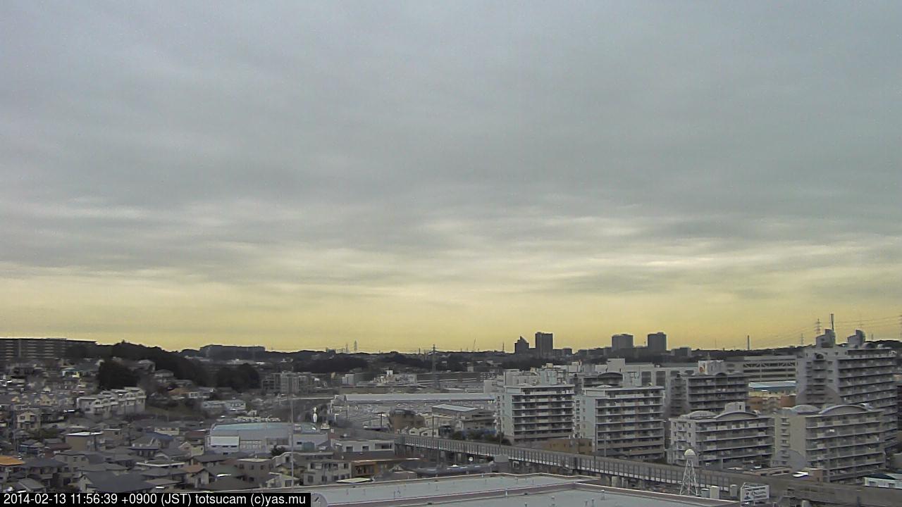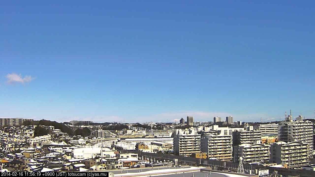 横浜市戸塚駅周辺から 東戸塚方面(北北東)を望む展望カメラの映像です。 左は現在の映像です。 下に並んでいるのは、 7日間に亘る日の出どき、昼間、夕暮れどきの写真(サムネイル)です。 それぞれ、日の出15分前、南中時、日没20分後の写真となっています。 各写真の下にはmpeg形式の動画へのリンクがあります。 それぞれ、日の出、南中、日没の前後1時間の画像です。 右欄にはその日24時間の動画へのリンクがあります。 この7日間以外は日付が一覧表示されています。 日付部分をクリックすると、 その日付から7日分が展開されて表示されます。