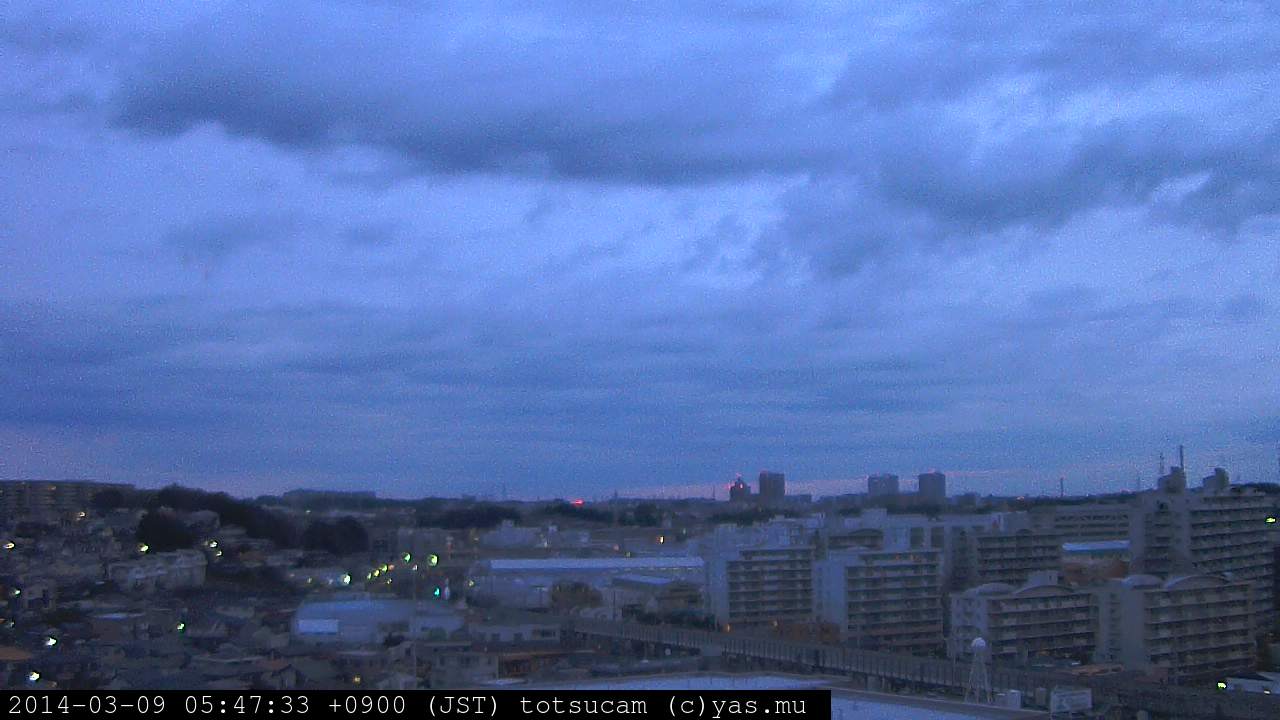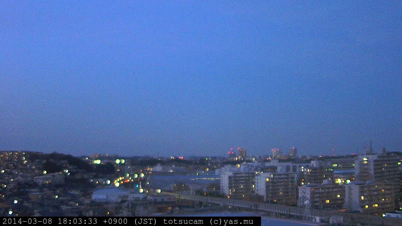 横浜市戸塚駅周辺から 東戸塚方面(北北東)を望む展望カメラの映像です。 左は現在の映像です。 下に並んでいるのは、 7日間に亘る日の出どき、昼間、夕暮れどきの写真(サムネイル)です。 それぞれ、日の出15分前、南中時、日没20分後の写真となっています。 各写真の下にはmpeg形式の動画へのリンクがあります。 それぞれ、日の出、南中、日没の前後1時間の画像です。 右欄にはその日24時間の動画へのリンクがあります。 この7日間以外は日付が一覧表示されています。 日付部分をクリックすると、 その日付から7日分が展開されて表示されます。