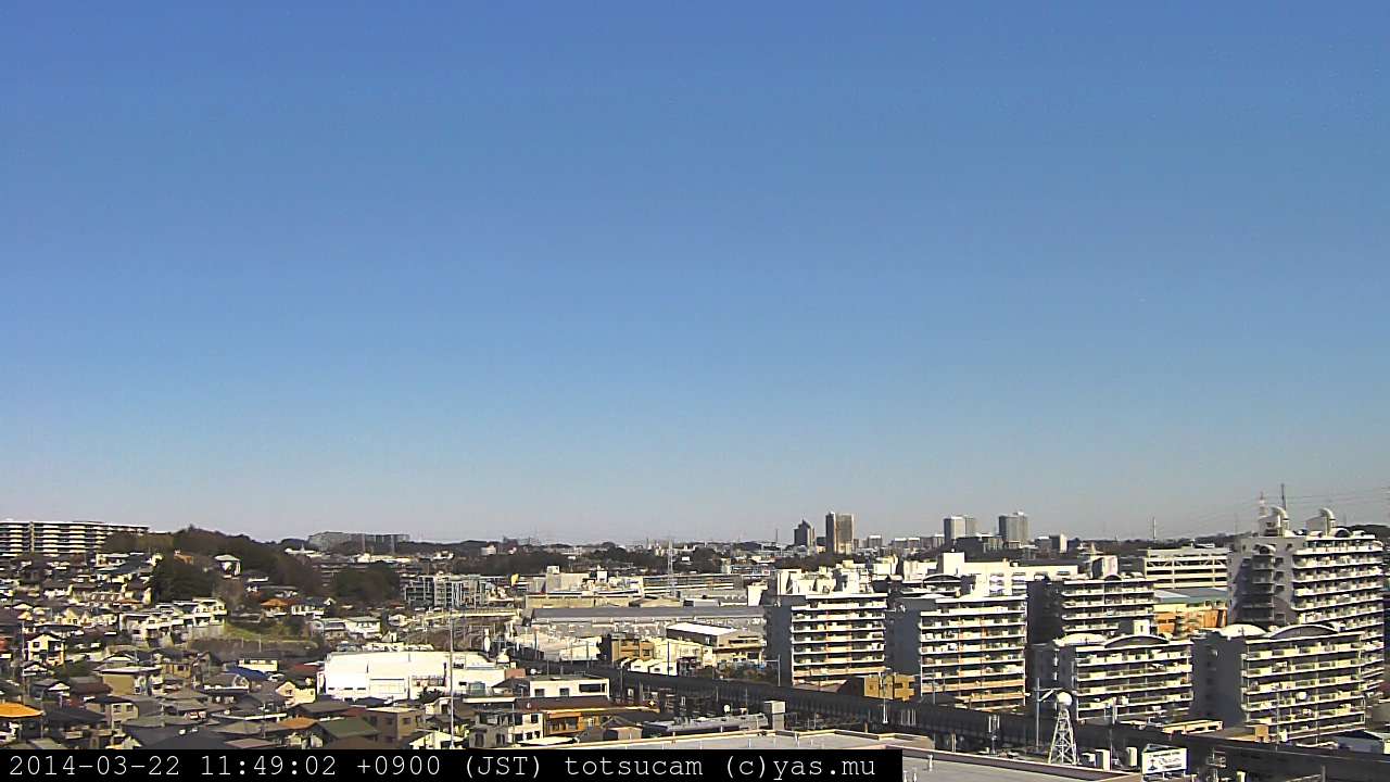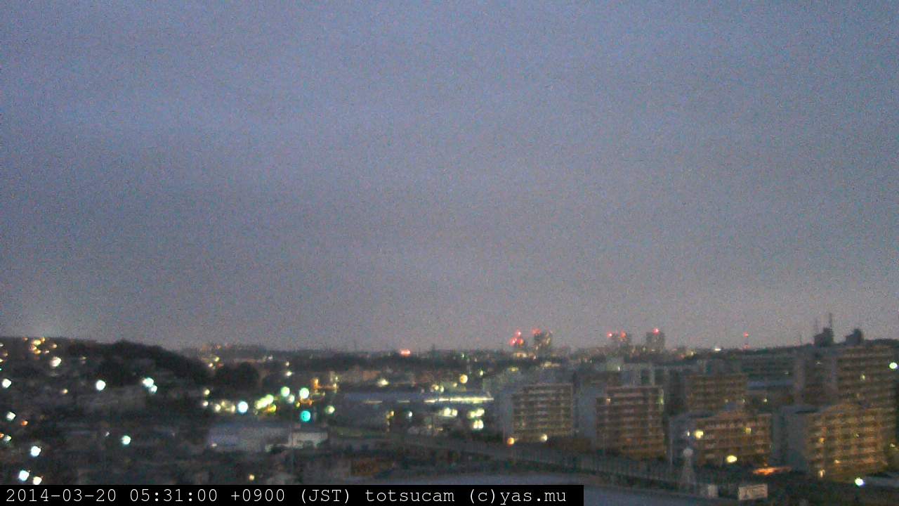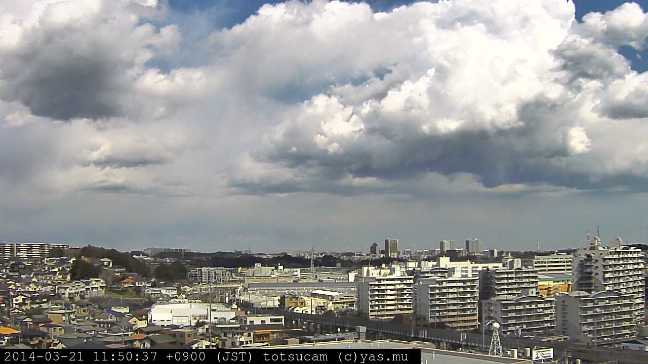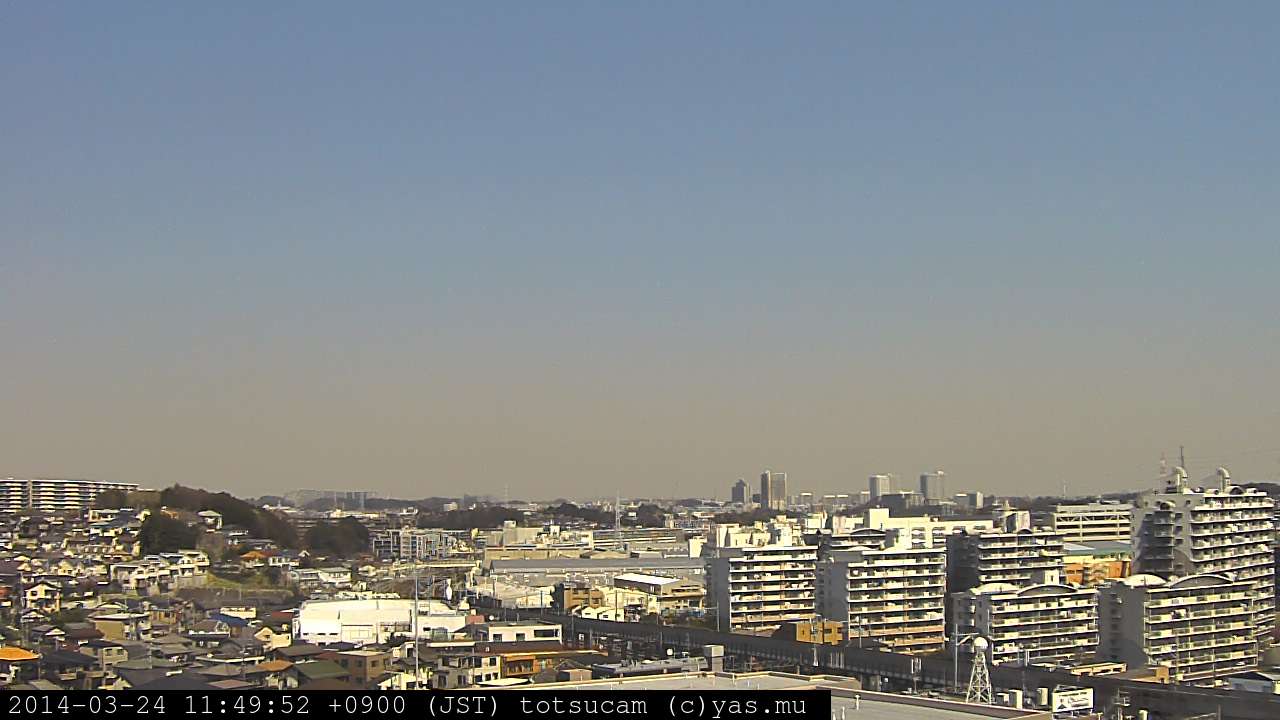 横浜市戸塚駅周辺から 東戸塚方面(北北東)を望む展望カメラの映像です。 左は現在の映像です。 下に並んでいるのは、 7日間に亘る日の出どき、昼間、夕暮れどきの写真(サムネイル)です。 それぞれ、日の出15分前、南中時、日没20分後の写真となっています。 各写真の下にはmpeg形式の動画へのリンクがあります。 それぞれ、日の出、南中、日没の前後1時間の画像です。 右欄にはその日24時間の動画へのリンクがあります。 この7日間以外は日付が一覧表示されています。 日付部分をクリックすると、 その日付から7日分が展開されて表示されます。