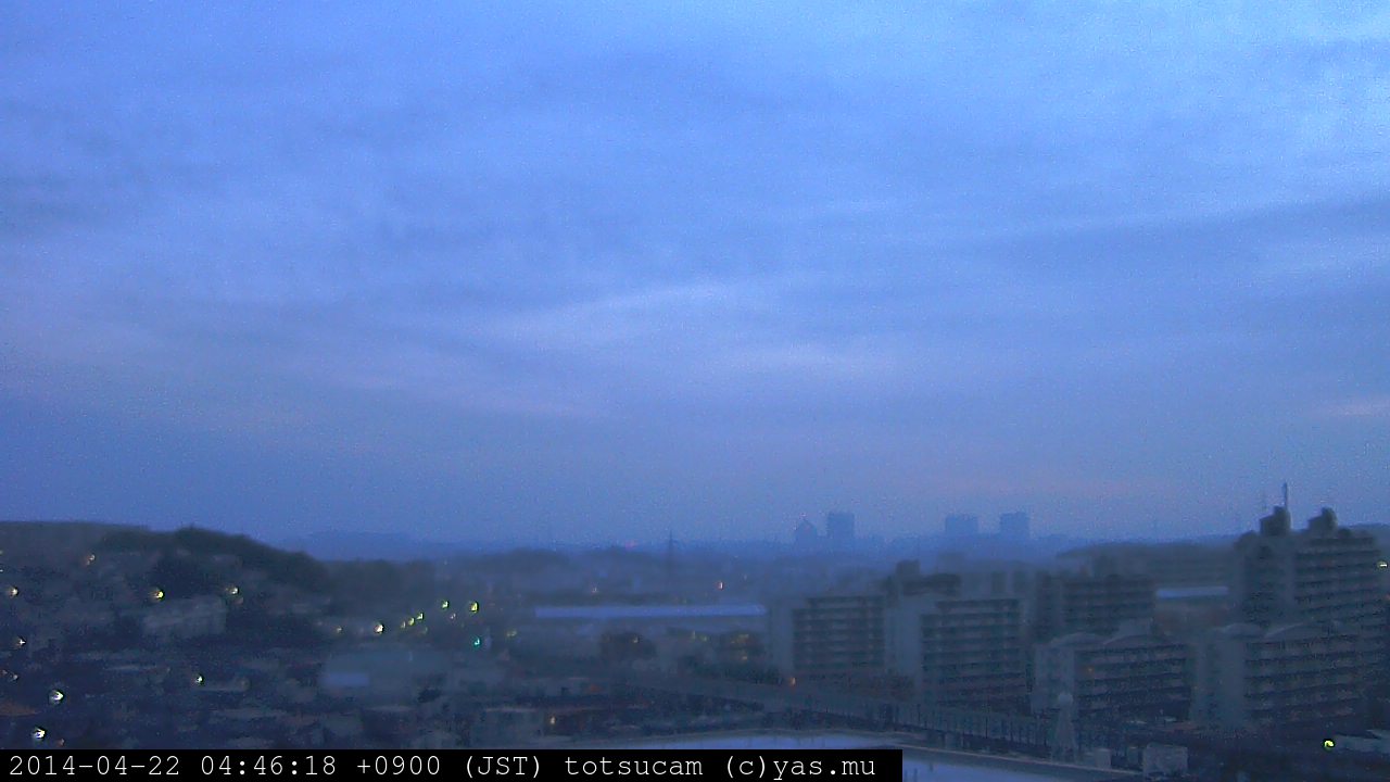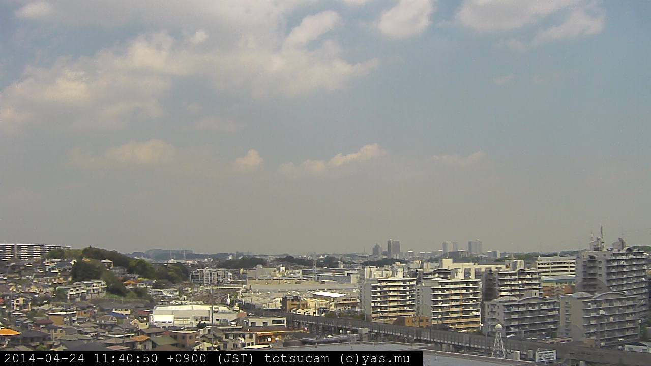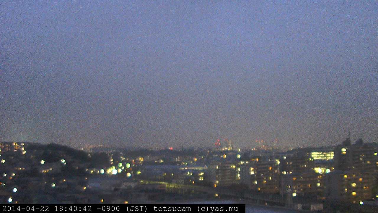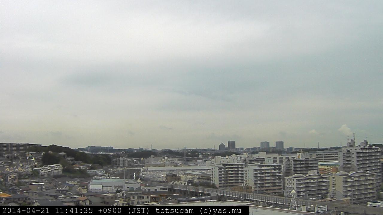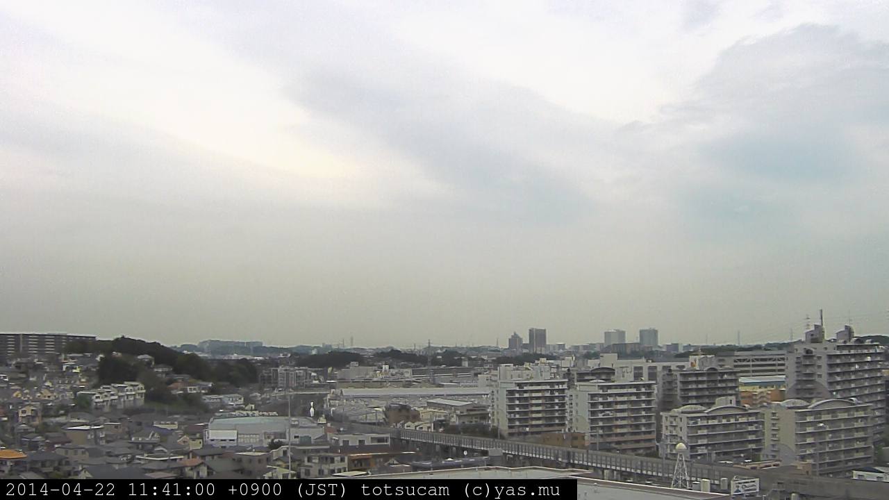 適度に曇った日の雲の動き (例: 2005-10-24) がとても楽しめます。 正面を横切っている高架は横須賀線下りです。 その下に横須賀線上り、東海道線、同貨物線が走っていますが、 高架に隠れていてよく見えません。 夜間は特に中央左寄りの車の動きがよく見えます。
