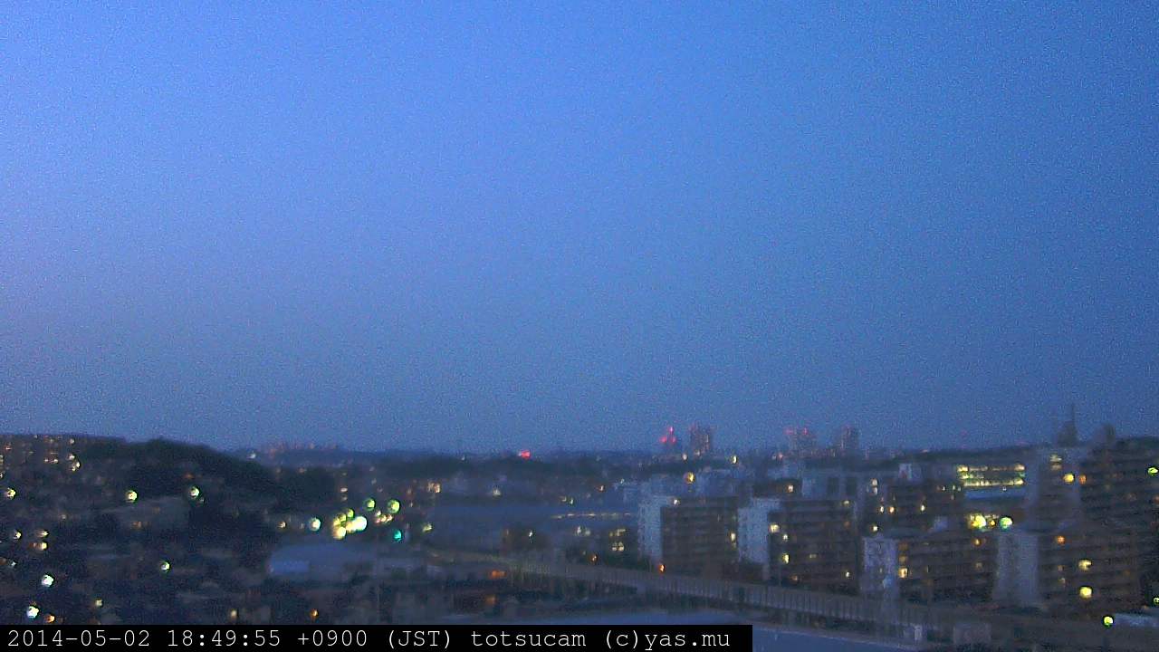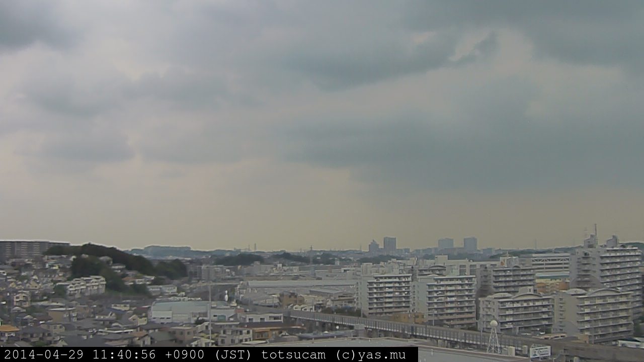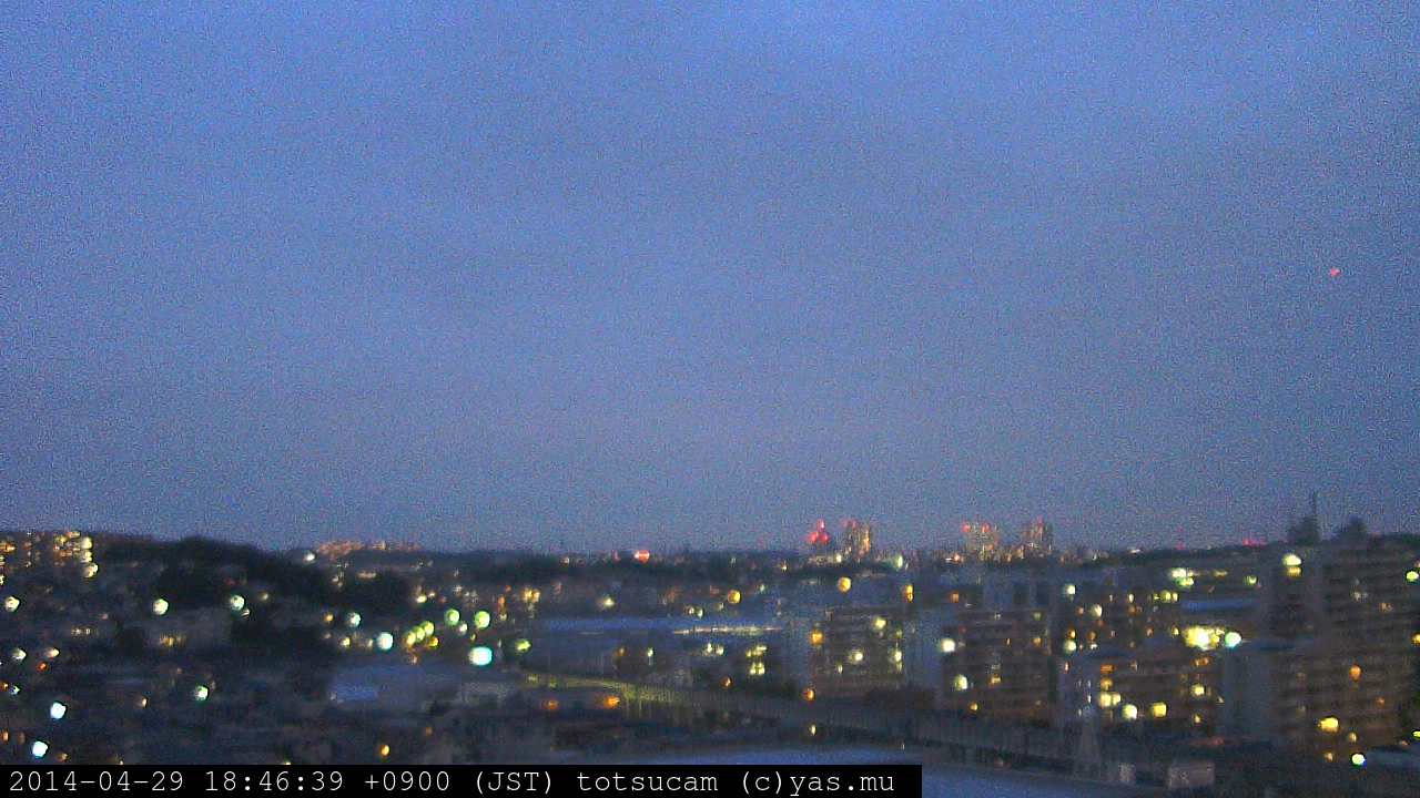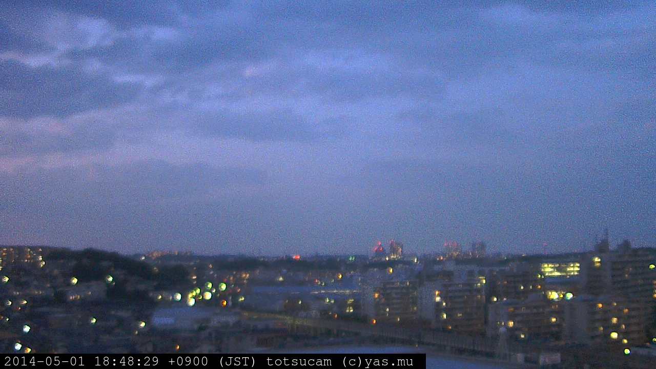 適度に曇った日の雲の動き (例: 2005-10-24) がとても楽しめます。 正面を横切っている高架は横須賀線下りです。 その下に横須賀線上り、東海道線、同貨物線が走っていますが、 高架に隠れていてよく見えません。 夜間は特に中央左寄りの車の動きがよく見えます。