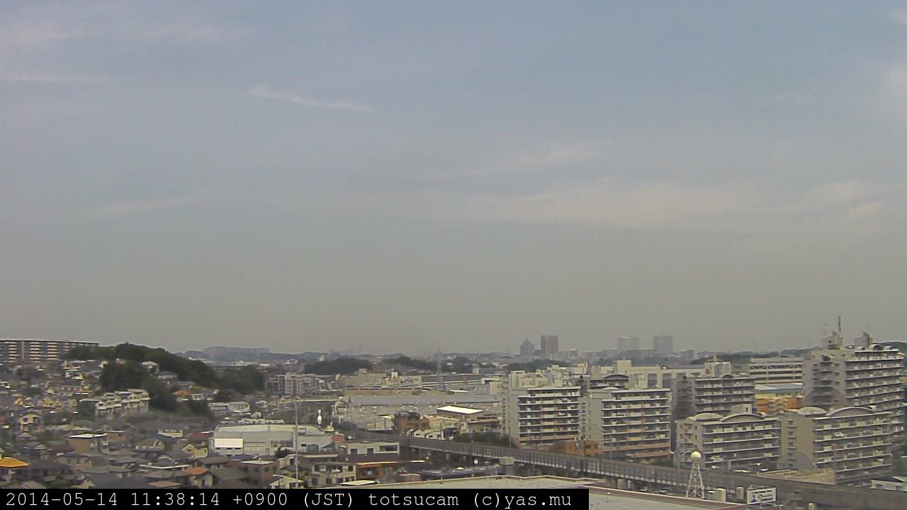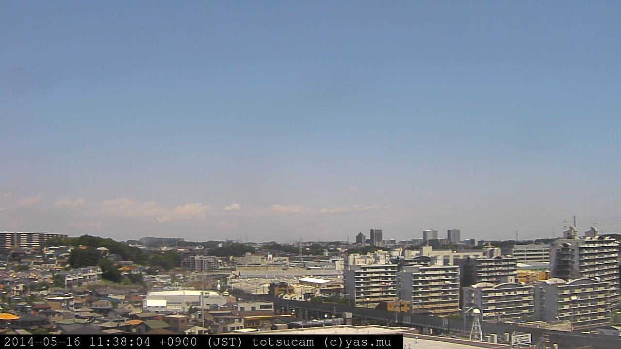 適度に曇った日の雲の動き (例: 2005-10-24) がとても楽しめます。 正面を横切っている高架は横須賀線下りです。 その下に横須賀線上り、東海道線、同貨物線が走っていますが、 高架に隠れていてよく見えません。 夜間は特に中央左寄りの車の動きがよく見えます。