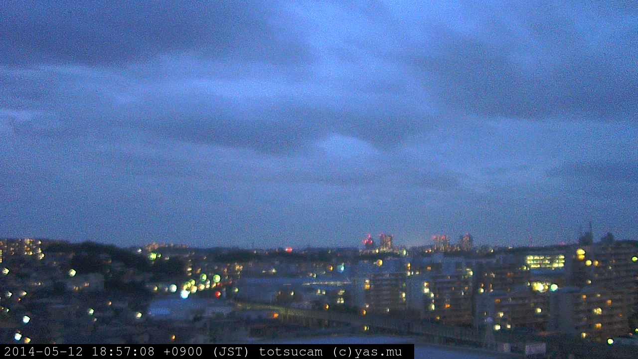 横浜市戸塚駅周辺から 東戸塚方面(北北東)を望む展望カメラの映像です。 左は現在の映像です。 下に並んでいるのは、 7日間に亘る日の出どき、昼間、夕暮れどきの写真(サムネイル)です。 それぞれ、日の出15分前、南中時、日没20分後の写真となっています。 各写真の下にはmpeg形式の動画へのリンクがあります。 それぞれ、日の出、南中、日没の前後1時間の画像です。 右欄にはその日24時間の動画へのリンクがあります。 この7日間以外は日付が一覧表示されています。 日付部分をクリックすると、 その日付から7日分が展開されて表示されます。