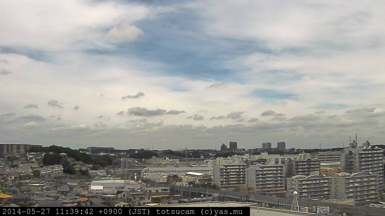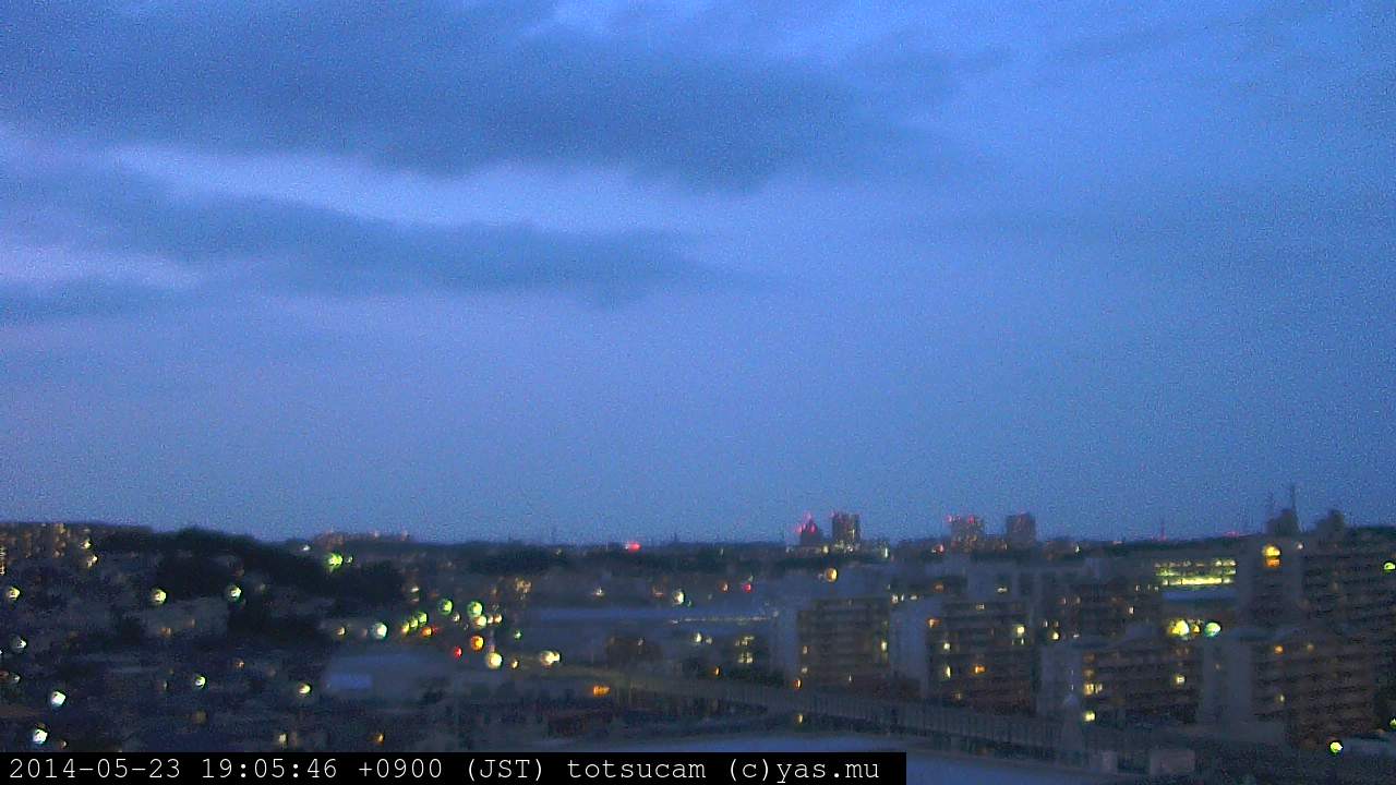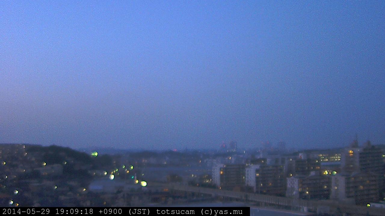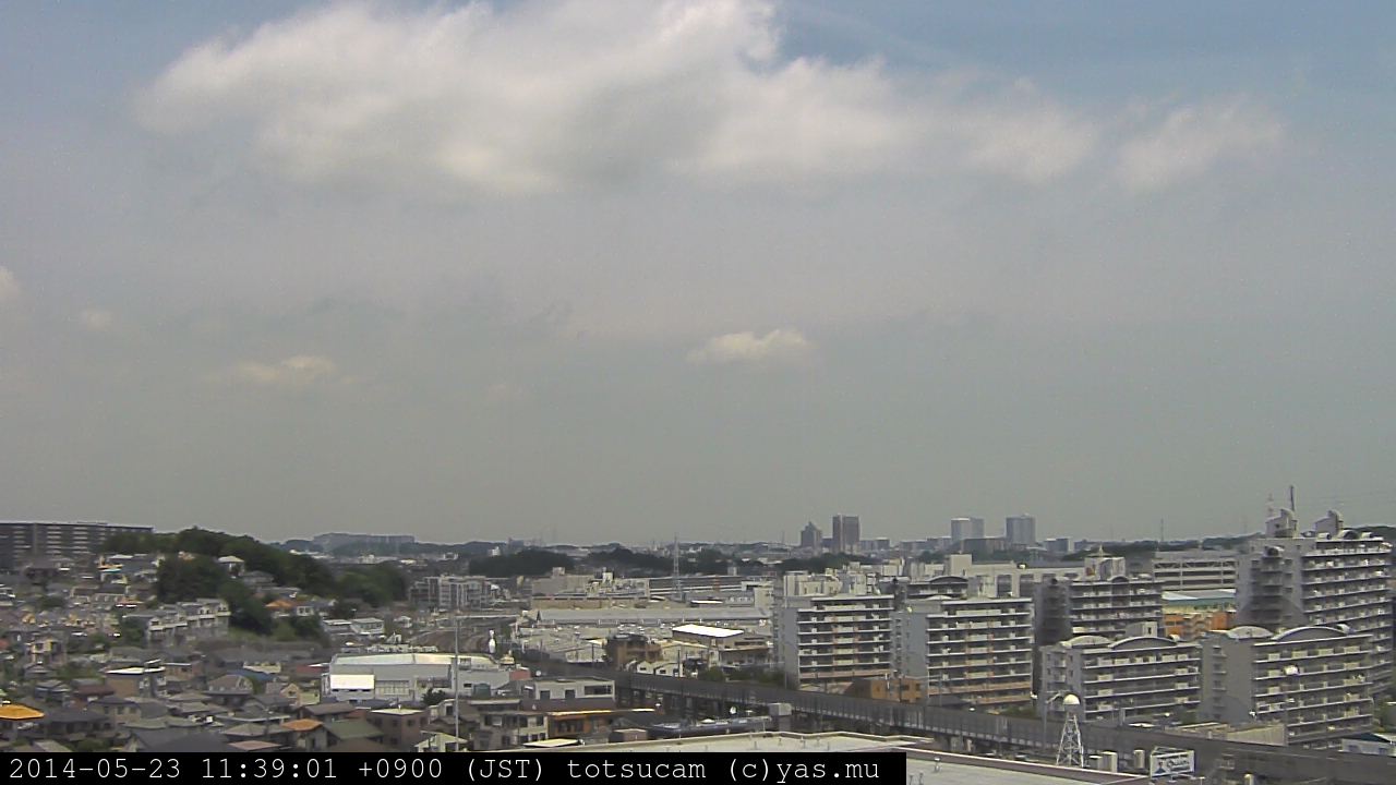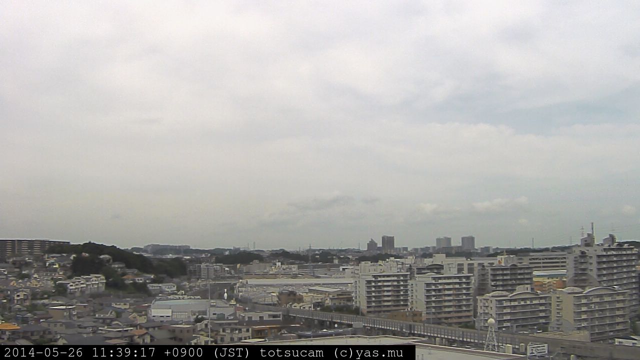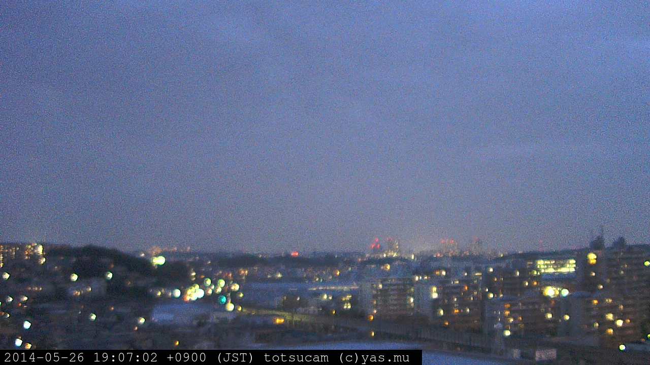 適度に曇った日の雲の動き (例: 2005-10-24) がとても楽しめます。 正面を横切っている高架は横須賀線下りです。 その下に横須賀線上り、東海道線、同貨物線が走っていますが、 高架に隠れていてよく見えません。 夜間は特に中央左寄りの車の動きがよく見えます。