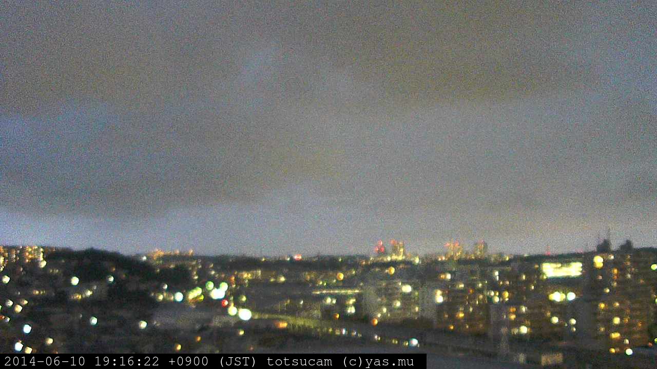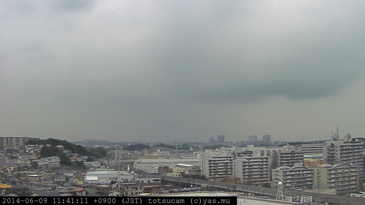 適度に曇った日の雲の動き (例: 2005-10-24) がとても楽しめます。 正面を横切っている高架は横須賀線下りです。 その下に横須賀線上り、東海道線、同貨物線が走っていますが、 高架に隠れていてよく見えません。 夜間は特に中央左寄りの車の動きがよく見えます。