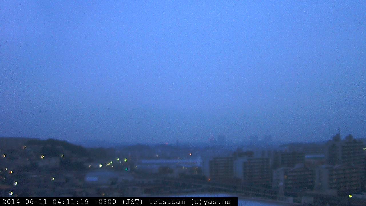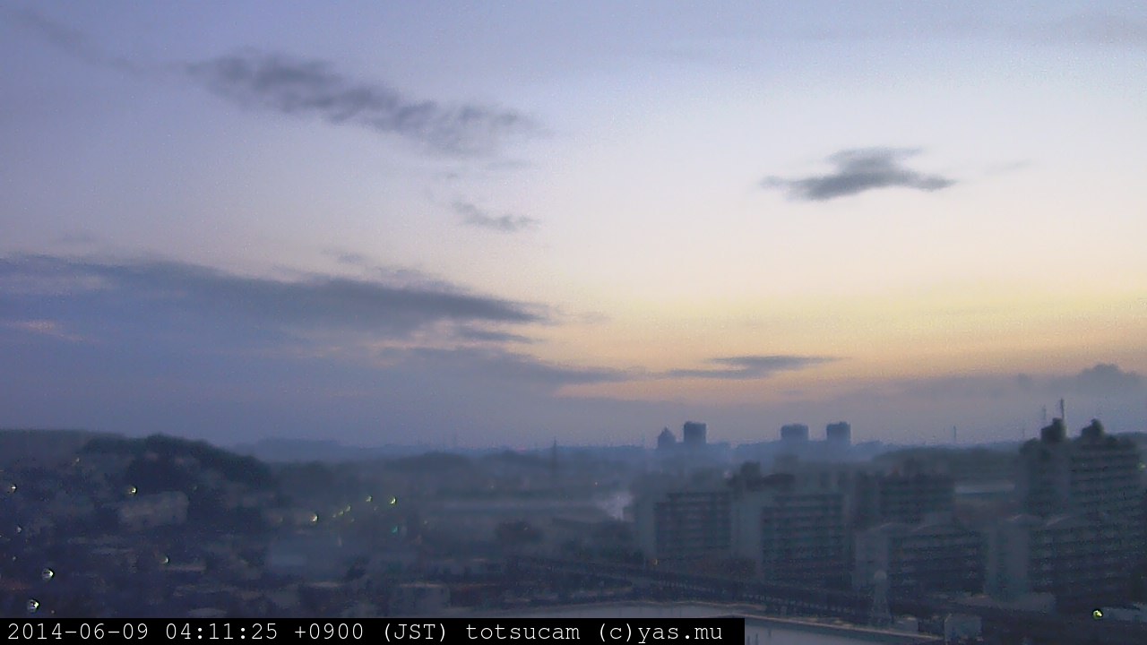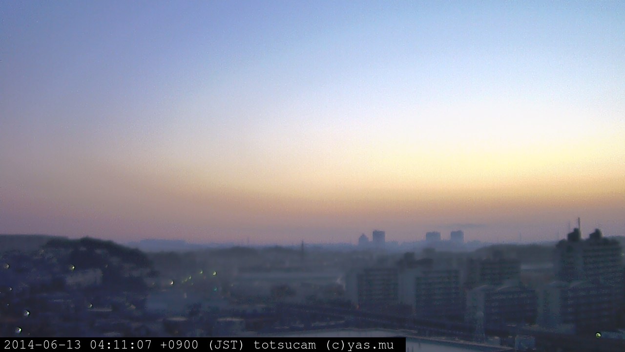 横浜市戸塚駅周辺から 東戸塚方面(北北東)を望む展望カメラの映像です。 左は現在の映像です。 下に並んでいるのは、 7日間に亘る日の出どき、昼間、夕暮れどきの写真(サムネイル)です。 それぞれ、日の出15分前、南中時、日没20分後の写真となっています。 各写真の下にはmpeg形式の動画へのリンクがあります。 それぞれ、日の出、南中、日没の前後1時間の画像です。 右欄にはその日24時間の動画へのリンクがあります。 この7日間以外は日付が一覧表示されています。 日付部分をクリックすると、 その日付から7日分が展開されて表示されます。