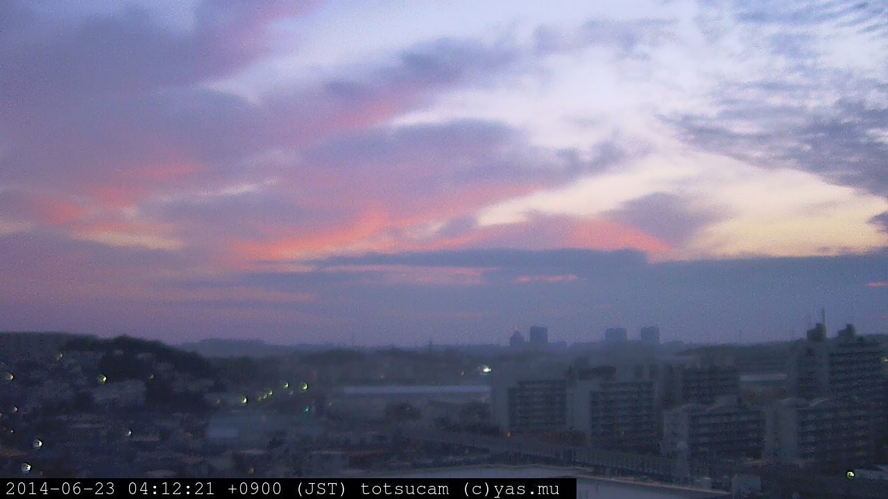 横浜市戸塚駅周辺から 東戸塚方面(北北東)を望む展望カメラの映像です。 左は現在の映像です。 下に並んでいるのは、 7日間に亘る日の出どき、昼間、夕暮れどきの写真(サムネイル)です。 それぞれ、日の出15分前、南中時、日没20分後の写真となっています。 各写真の下にはmpeg形式の動画へのリンクがあります。 それぞれ、日の出、南中、日没の前後1時間の画像です。 右欄にはその日24時間の動画へのリンクがあります。 この7日間以外は日付が一覧表示されています。 日付部分をクリックすると、 その日付から7日分が展開されて表示されます。