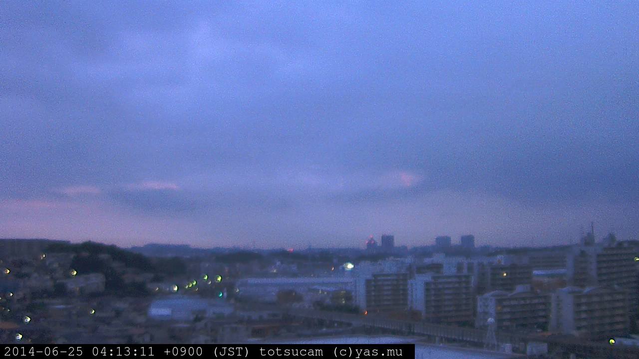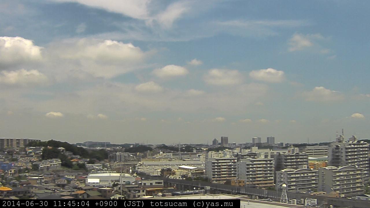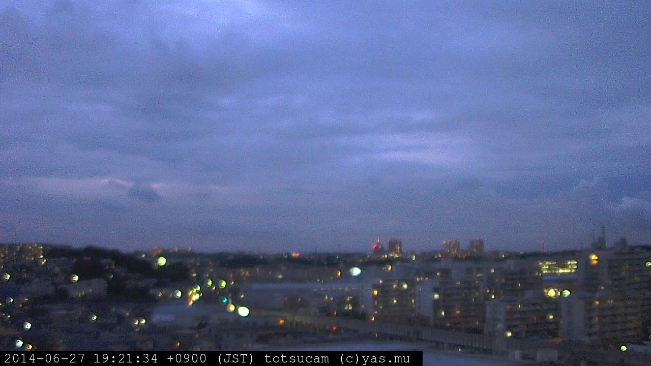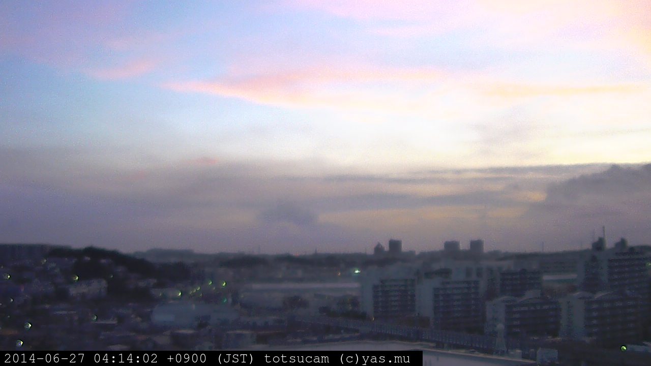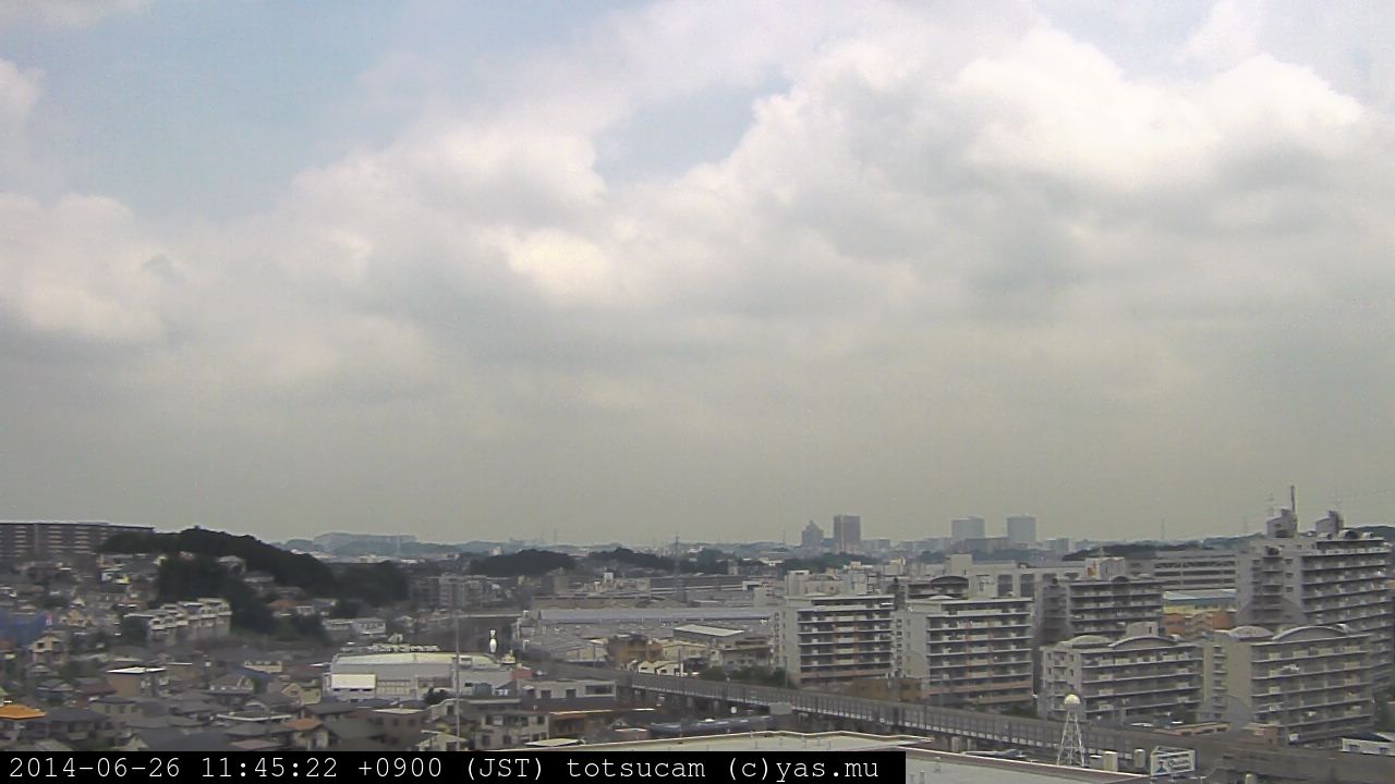 横浜市戸塚駅周辺から 東戸塚方面(北北東)を望む展望カメラの映像です。 左は現在の映像です。 下に並んでいるのは、 7日間に亘る日の出どき、昼間、夕暮れどきの写真(サムネイル)です。 それぞれ、日の出15分前、南中時、日没20分後の写真となっています。 各写真の下にはmpeg形式の動画へのリンクがあります。 それぞれ、日の出、南中、日没の前後1時間の画像です。 右欄にはその日24時間の動画へのリンクがあります。 この7日間以外は日付が一覧表示されています。 日付部分をクリックすると、 その日付から7日分が展開されて表示されます。