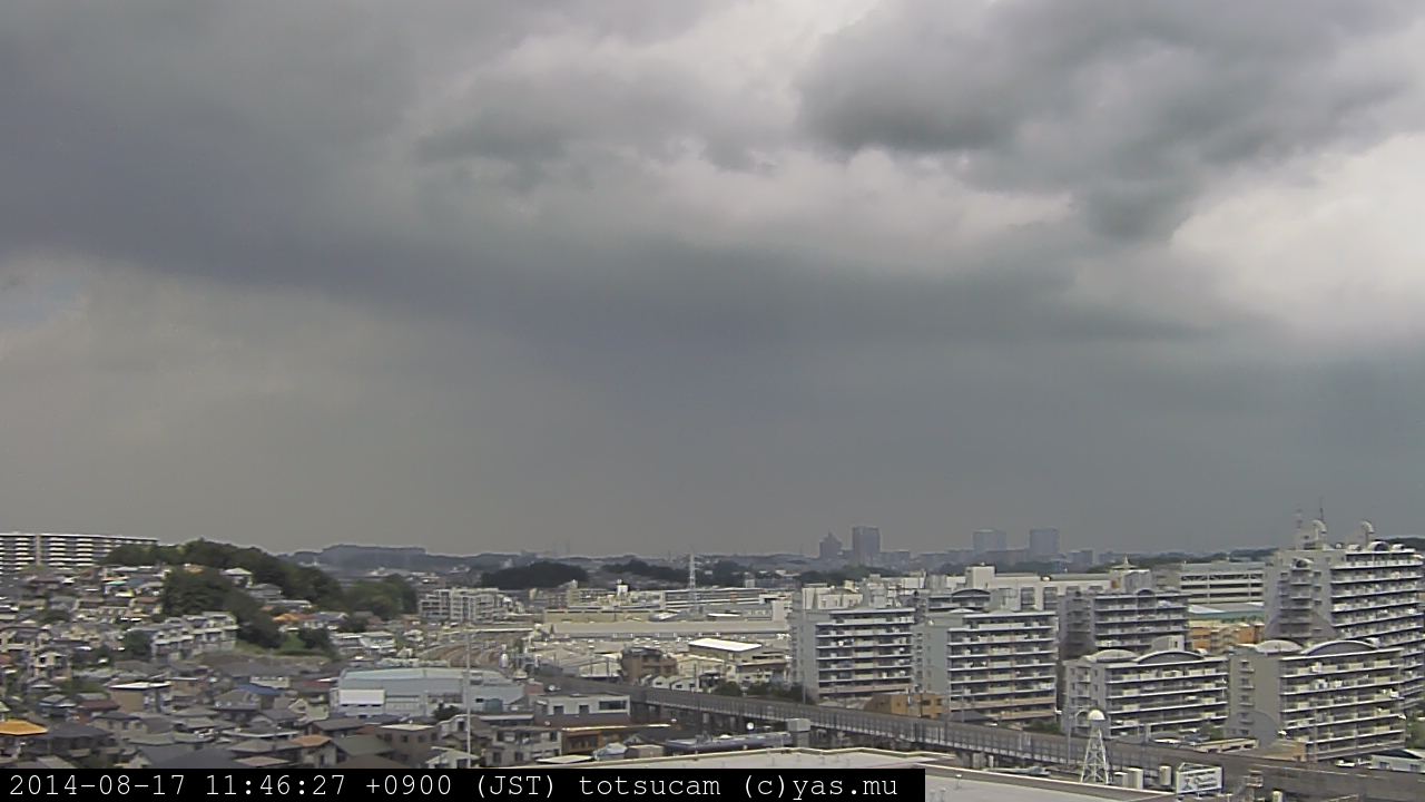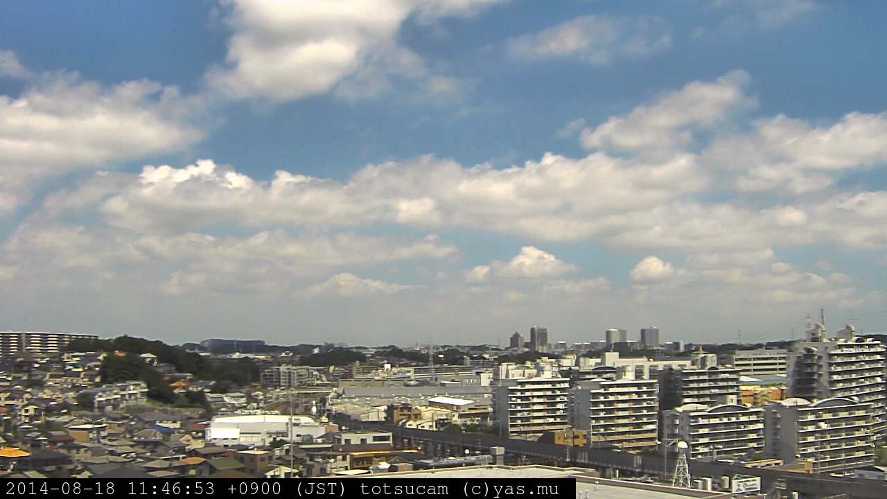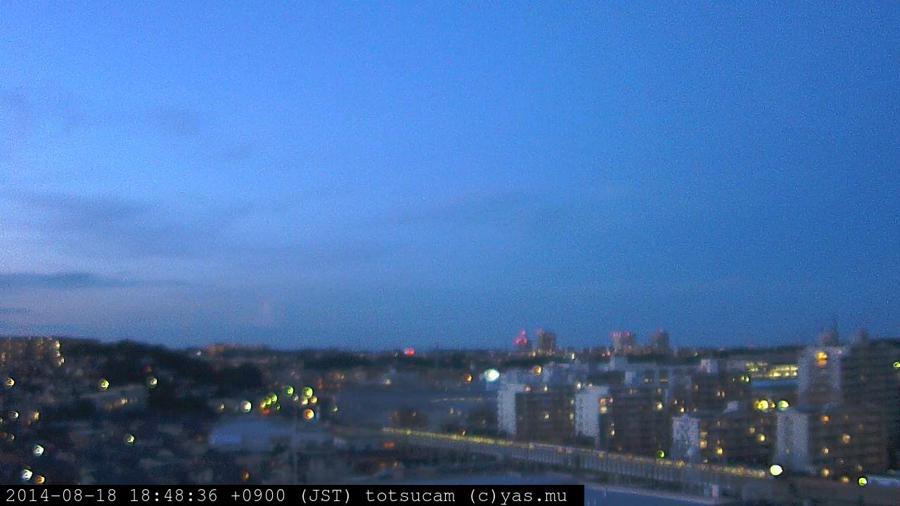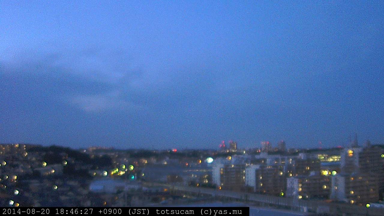 適度に曇った日の雲の動き (例: 2005-10-24) がとても楽しめます。 正面を横切っている高架は横須賀線下りです。 その下に横須賀線上り、東海道線、同貨物線が走っていますが、 高架に隠れていてよく見えません。 夜間は特に中央左寄りの車の動きがよく見えます。
