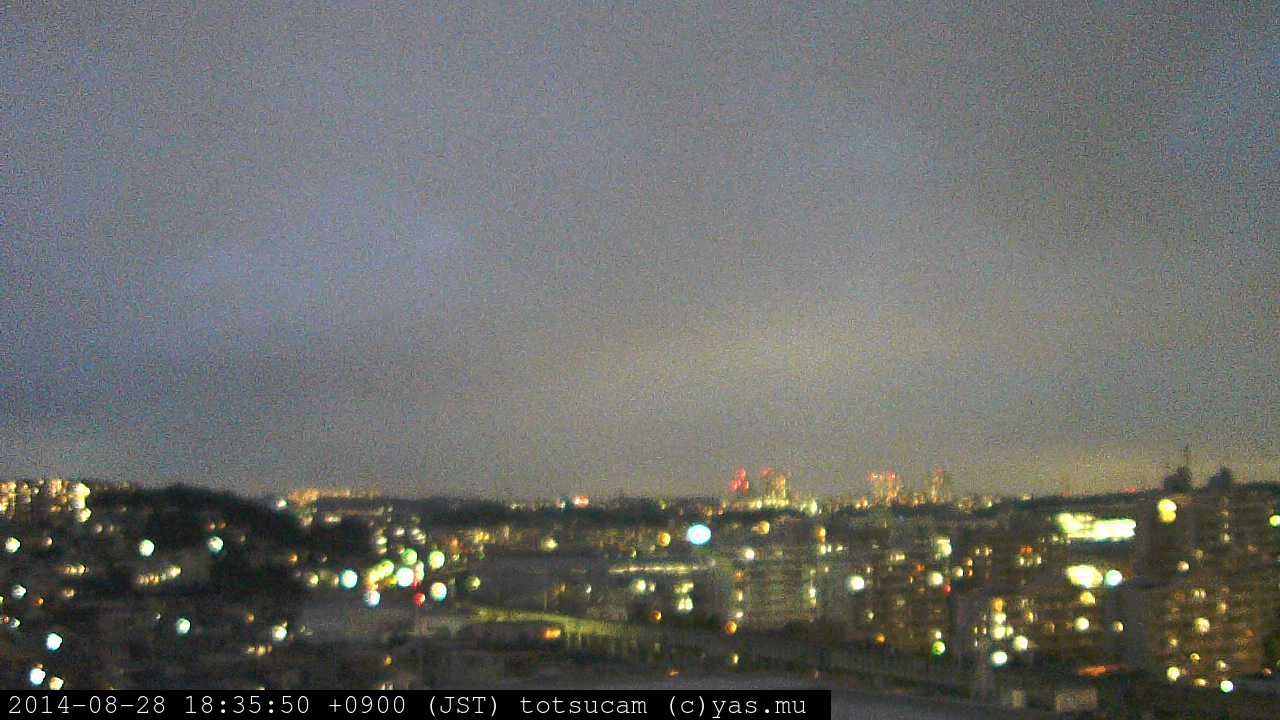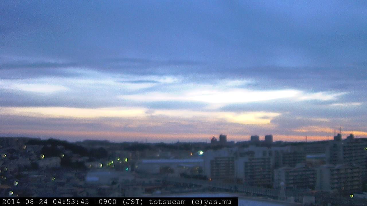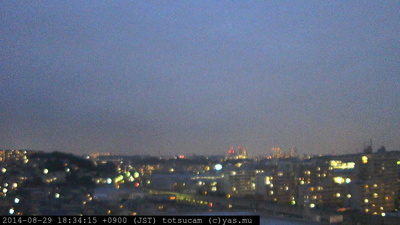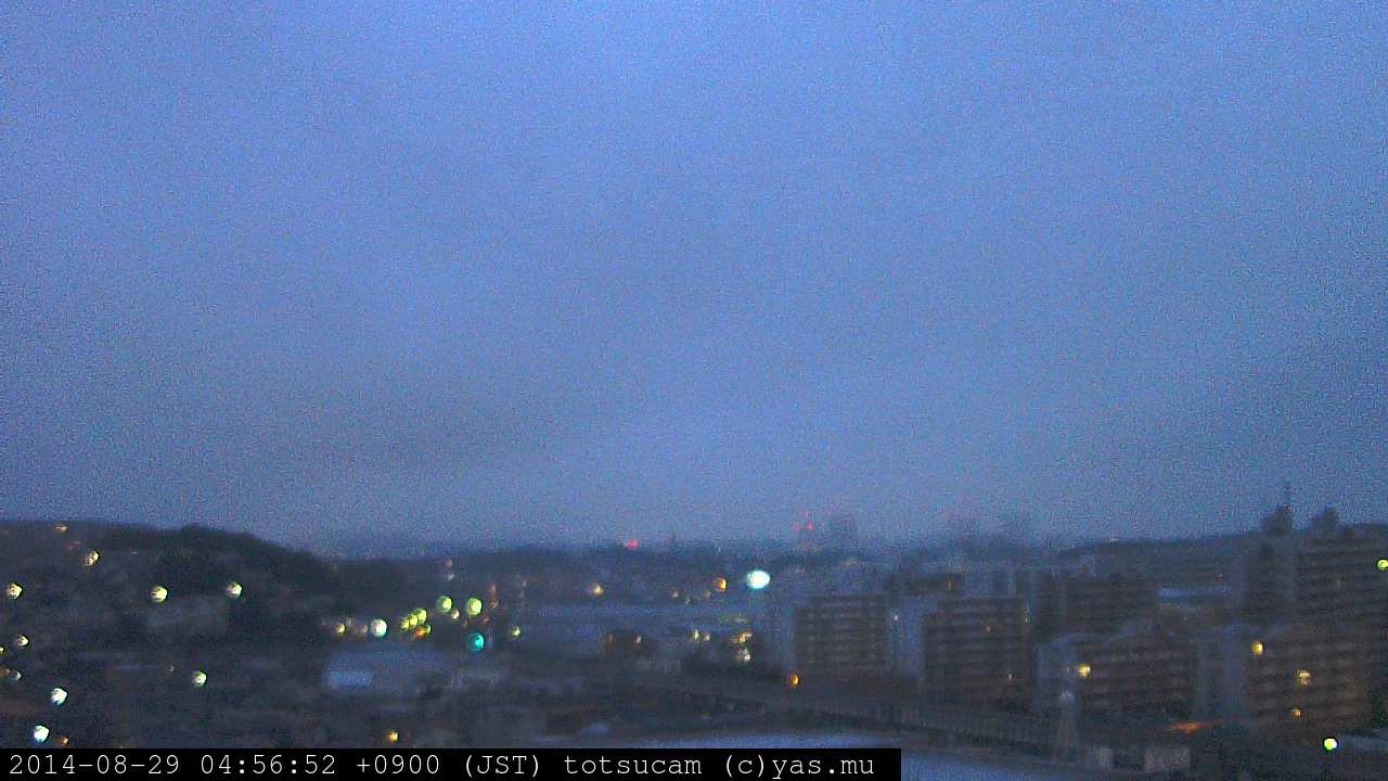 横浜市戸塚駅周辺から 東戸塚方面(北北東)を望む展望カメラの映像です。 左は現在の映像です。 下に並んでいるのは、 7日間に亘る日の出どき、昼間、夕暮れどきの写真(サムネイル)です。 それぞれ、日の出15分前、南中時、日没20分後の写真となっています。 各写真の下にはmpeg形式の動画へのリンクがあります。 それぞれ、日の出、南中、日没の前後1時間の画像です。 右欄にはその日24時間の動画へのリンクがあります。 この7日間以外は日付が一覧表示されています。 日付部分をクリックすると、 その日付から7日分が展開されて表示されます。