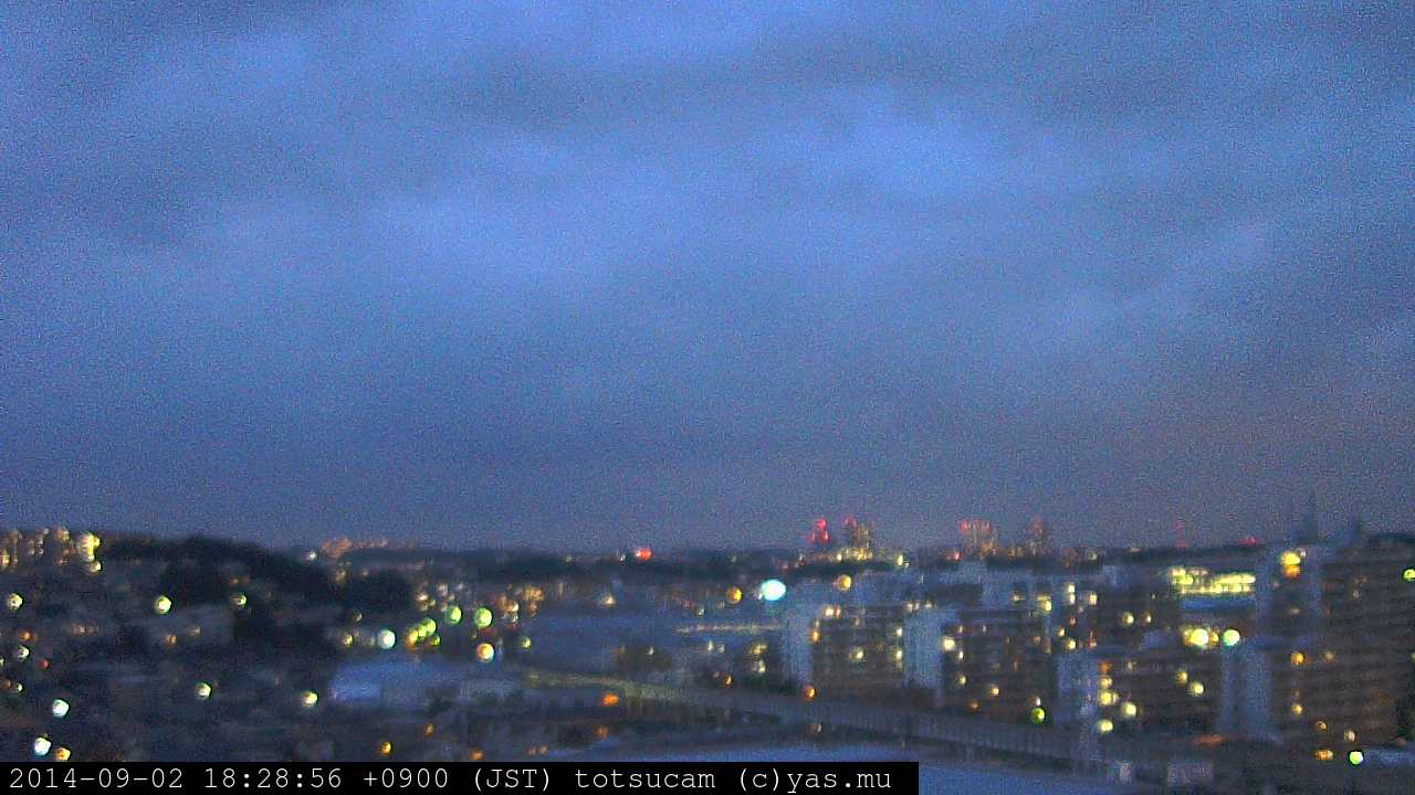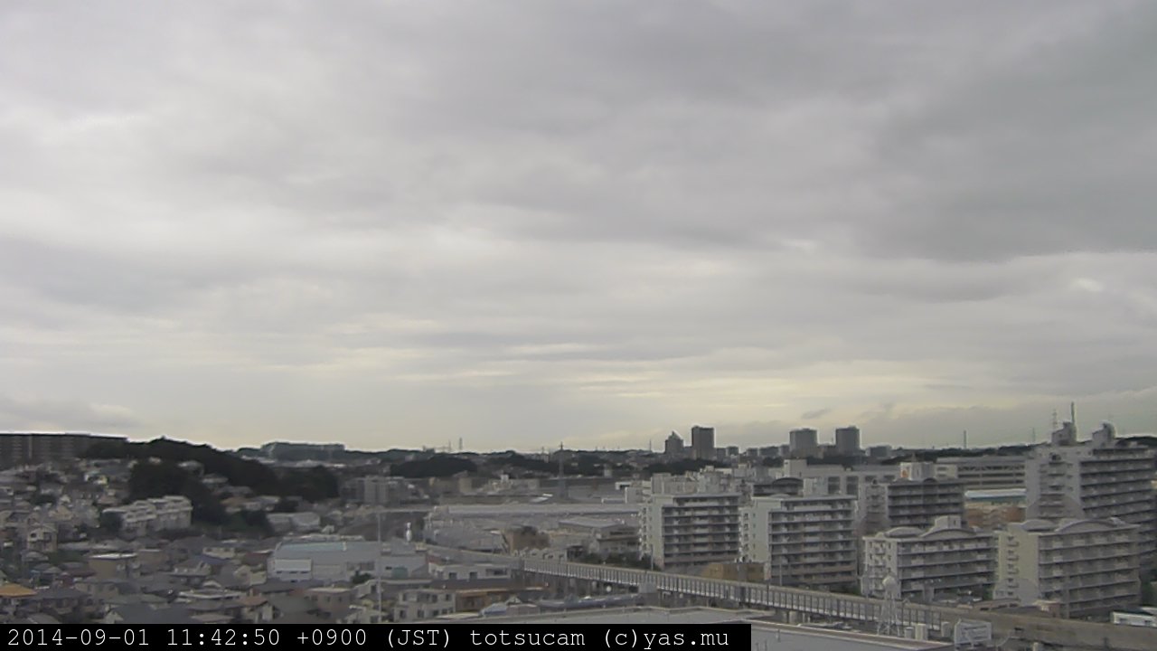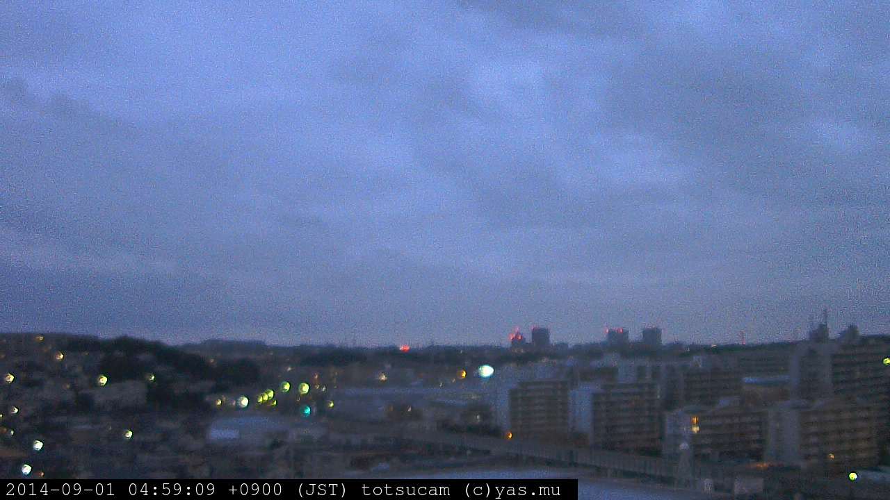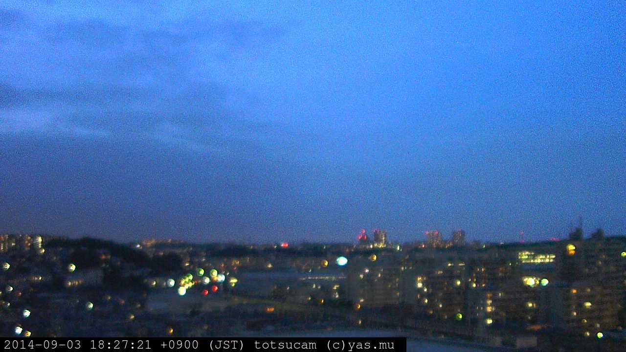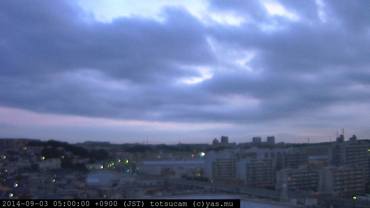 横浜市戸塚駅周辺から 東戸塚方面(北北東)を望む展望カメラの映像です。 左は現在の映像です。 下に並んでいるのは、 7日間に亘る日の出どき、昼間、夕暮れどきの写真(サムネイル)です。 それぞれ、日の出15分前、南中時、日没20分後の写真となっています。 各写真の下にはmpeg形式の動画へのリンクがあります。 それぞれ、日の出、南中、日没の前後1時間の画像です。 右欄にはその日24時間の動画へのリンクがあります。 この7日間以外は日付が一覧表示されています。 日付部分をクリックすると、 その日付から7日分が展開されて表示されます。