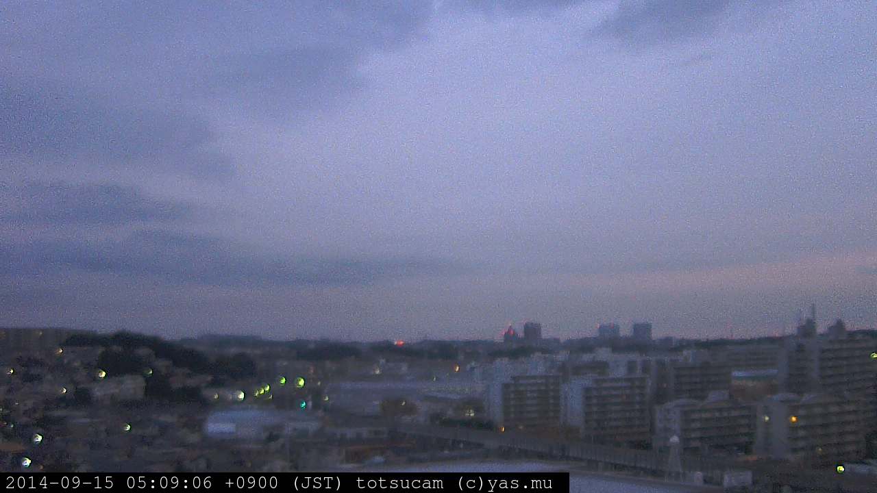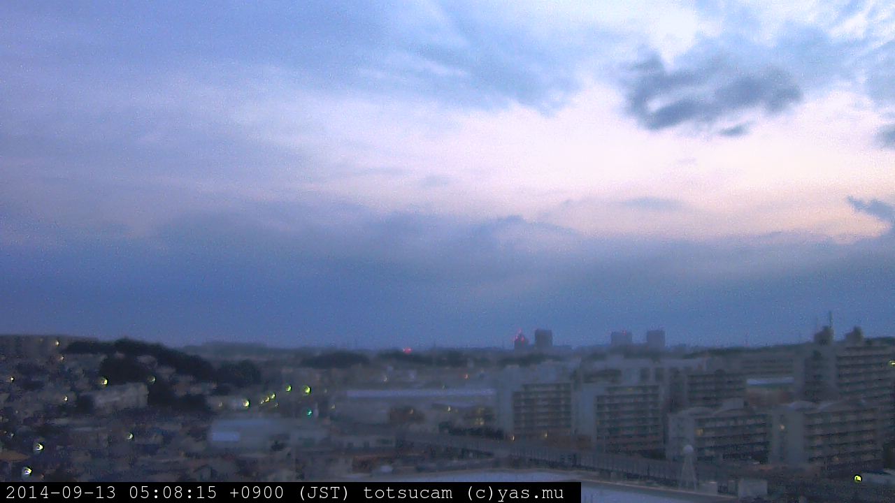 横浜市戸塚駅周辺から 東戸塚方面(北北東)を望む展望カメラの映像です。 左は現在の映像です。 下に並んでいるのは、 7日間に亘る日の出どき、昼間、夕暮れどきの写真(サムネイル)です。 それぞれ、日の出15分前、南中時、日没20分後の写真となっています。 各写真の下にはmpeg形式の動画へのリンクがあります。 それぞれ、日の出、南中、日没の前後1時間の画像です。 右欄にはその日24時間の動画へのリンクがあります。 この7日間以外は日付が一覧表示されています。 日付部分をクリックすると、 その日付から7日分が展開されて表示されます。