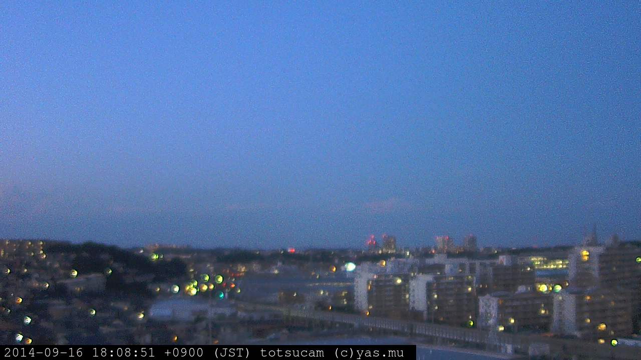 適度に曇った日の雲の動き (例: 2005-10-24) がとても楽しめます。 正面を横切っている高架は横須賀線下りです。 その下に横須賀線上り、東海道線、同貨物線が走っていますが、 高架に隠れていてよく見えません。 夜間は特に中央左寄りの車の動きがよく見えます。
