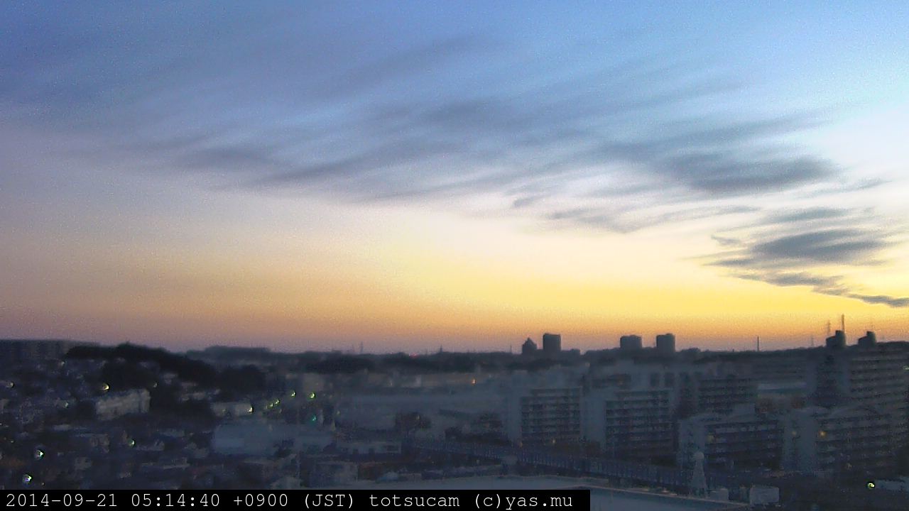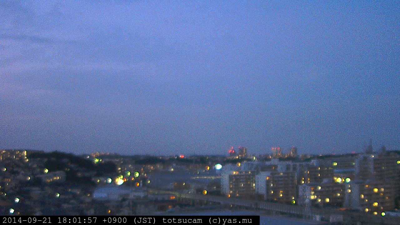 横浜市戸塚駅周辺から 東戸塚方面(北北東)を望む展望カメラの映像です。 左は現在の映像です。 下に並んでいるのは、 7日間に亘る日の出どき、昼間、夕暮れどきの写真(サムネイル)です。 それぞれ、日の出15分前、南中時、日没20分後の写真となっています。 各写真の下にはmpeg形式の動画へのリンクがあります。 それぞれ、日の出、南中、日没の前後1時間の画像です。 右欄にはその日24時間の動画へのリンクがあります。 この7日間以外は日付が一覧表示されています。 日付部分をクリックすると、 その日付から7日分が展開されて表示されます。