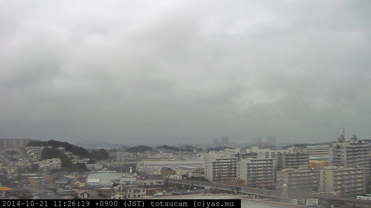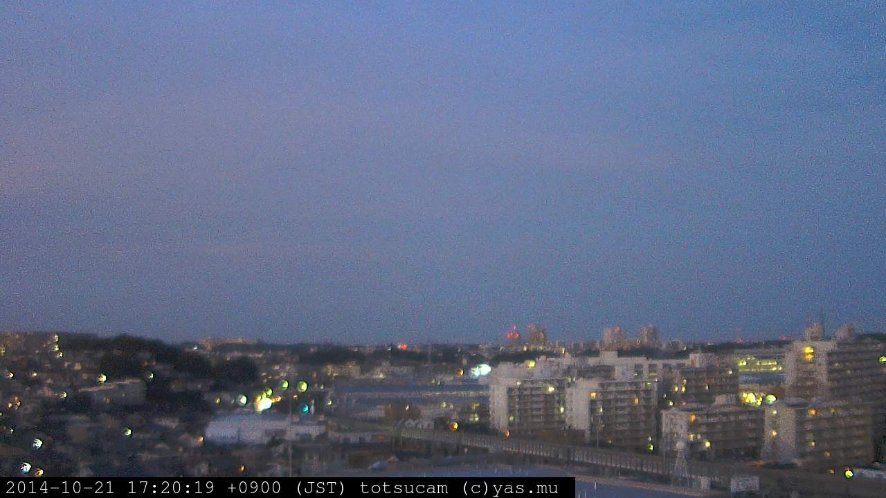 適度に曇った日の雲の動き (例: 2005-10-24) がとても楽しめます。 正面を横切っている高架は横須賀線下りです。 その下に横須賀線上り、東海道線、同貨物線が走っていますが、 高架に隠れていてよく見えません。 夜間は特に中央左寄りの車の動きがよく見えます。