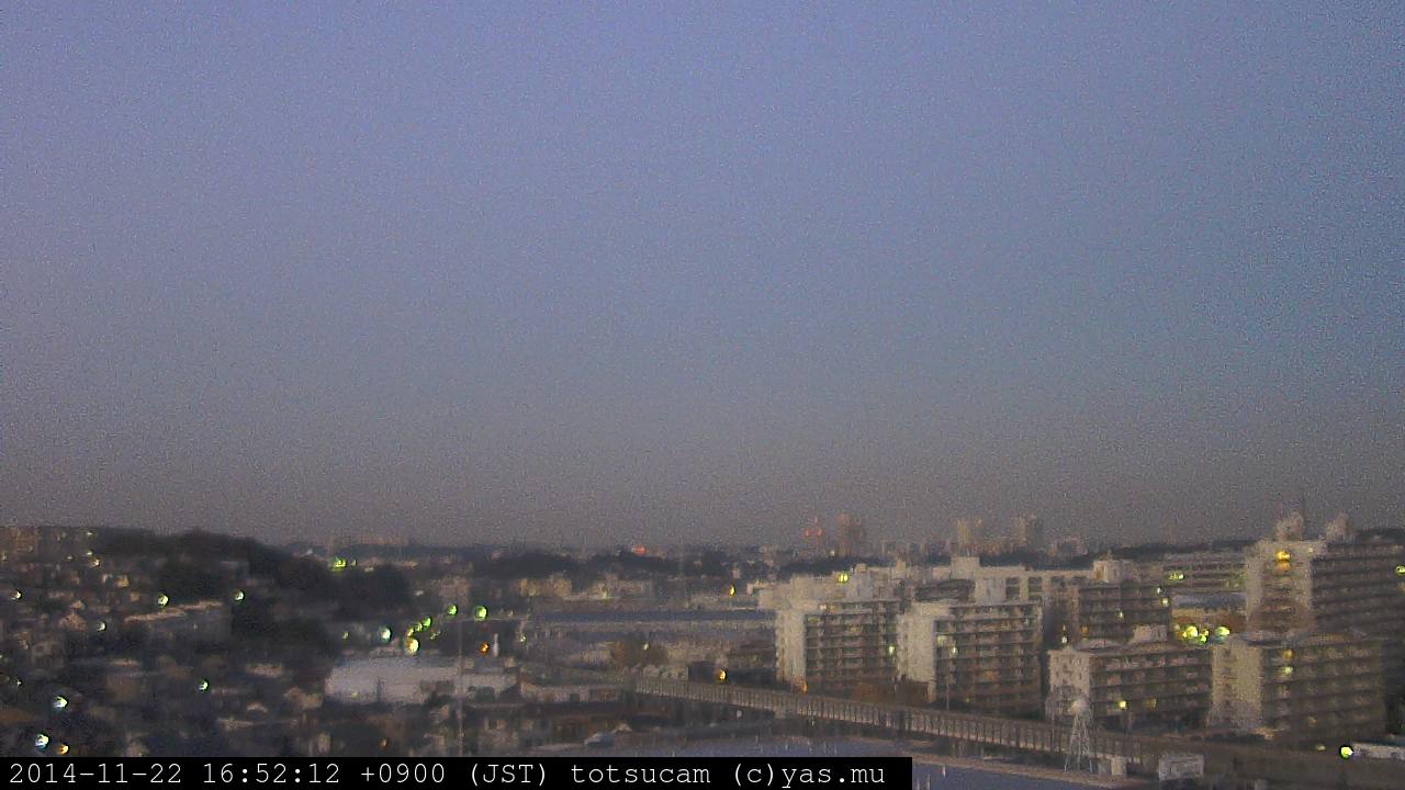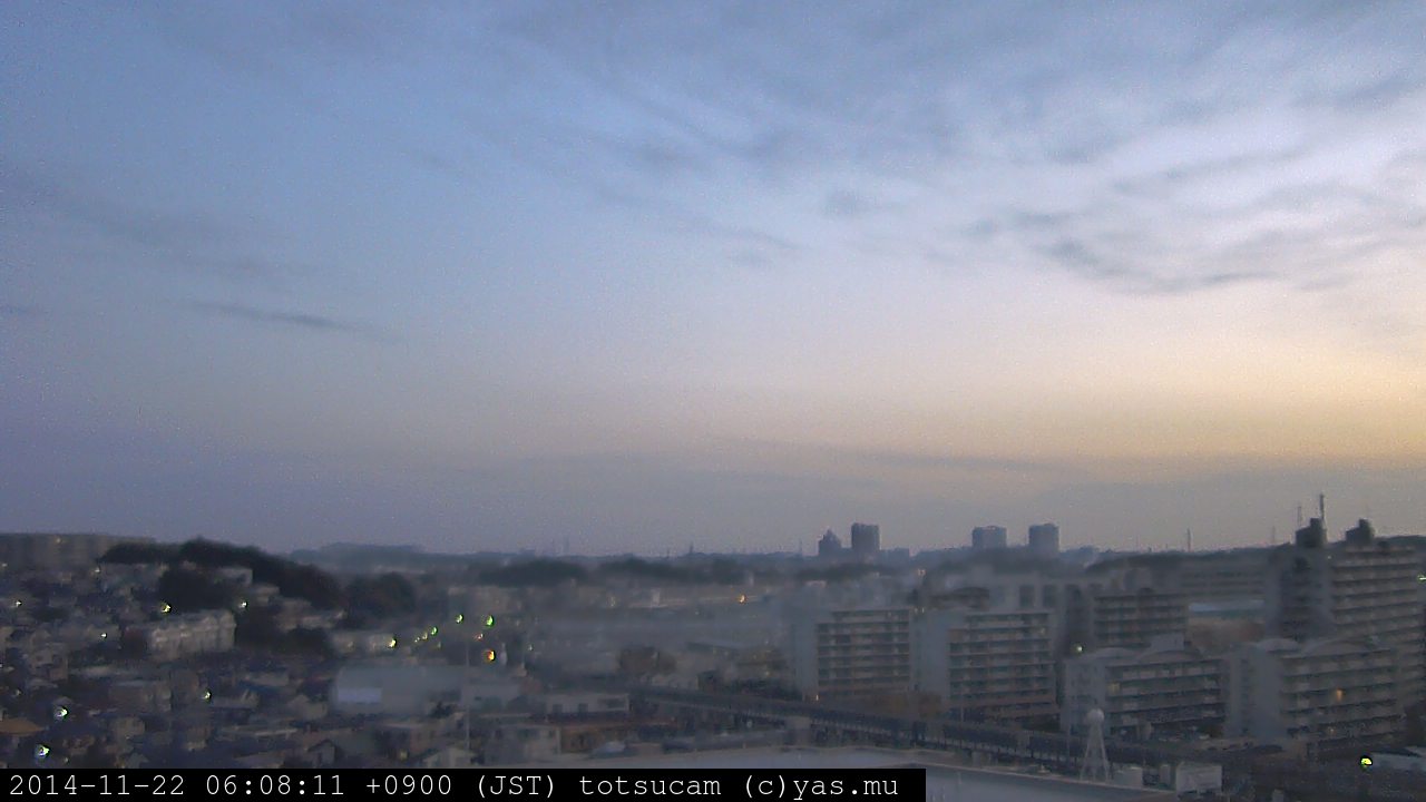 横浜市戸塚駅周辺から 東戸塚方面(北北東)を望む展望カメラの映像です。 左は現在の映像です。 下に並んでいるのは、 7日間に亘る日の出どき、昼間、夕暮れどきの写真(サムネイル)です。 それぞれ、日の出15分前、南中時、日没20分後の写真となっています。 各写真の下にはmpeg形式の動画へのリンクがあります。 それぞれ、日の出、南中、日没の前後1時間の画像です。 右欄にはその日24時間の動画へのリンクがあります。 この7日間以外は日付が一覧表示されています。 日付部分をクリックすると、 その日付から7日分が展開されて表示されます。