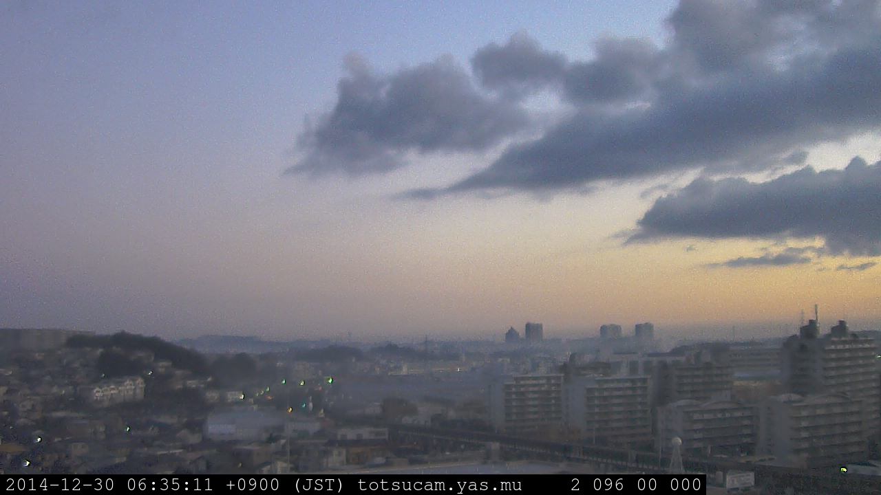 横浜市戸塚駅周辺から 東戸塚方面(北北東)を望む展望カメラの映像です。 左は現在の映像です。 下に並んでいるのは、 7日間に亘る日の出どき、昼間、夕暮れどきの写真(サムネイル)です。 それぞれ、日の出15分前、南中時、日没20分後の写真となっています。 各写真の下にはmpeg形式の動画へのリンクがあります。 それぞれ、日の出、南中、日没の前後1時間の画像です。 右欄にはその日24時間の動画へのリンクがあります。 この7日間以外は日付が一覧表示されています。 日付部分をクリックすると、 その日付から7日分が展開されて表示されます。
