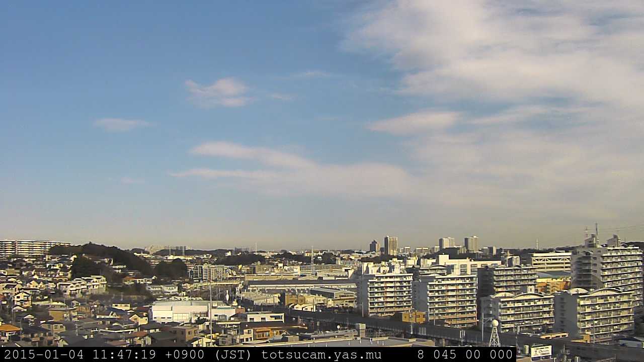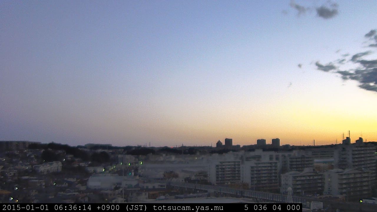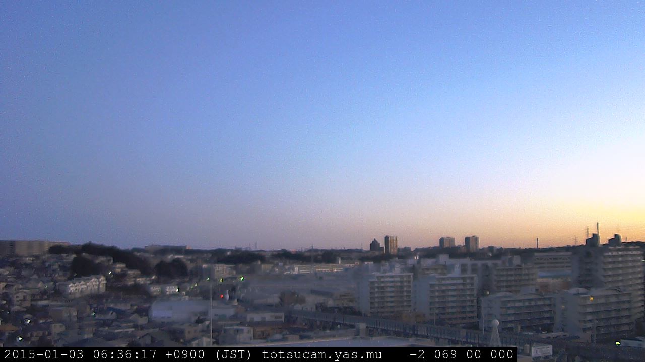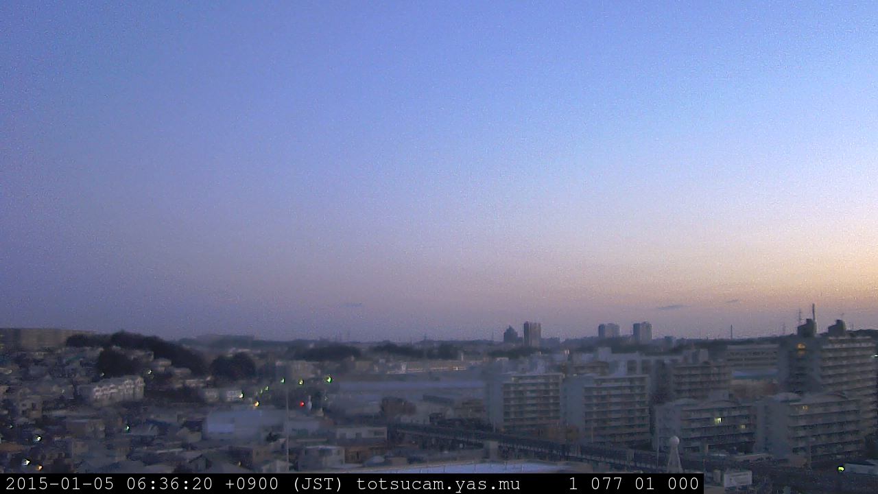 横浜市戸塚駅周辺から 東戸塚方面(北北東)を望む展望カメラの映像です。 左は現在の映像です。 下に並んでいるのは、 7日間に亘る日の出どき、昼間、夕暮れどきの写真(サムネイル)です。 それぞれ、日の出15分前、南中時、日没20分後の写真となっています。 各写真の下にはmpeg形式の動画へのリンクがあります。 それぞれ、日の出、南中、日没の前後1時間の画像です。 右欄にはその日24時間の動画へのリンクがあります。 この7日間以外は日付が一覧表示されています。 日付部分をクリックすると、 その日付から7日分が展開されて表示されます。