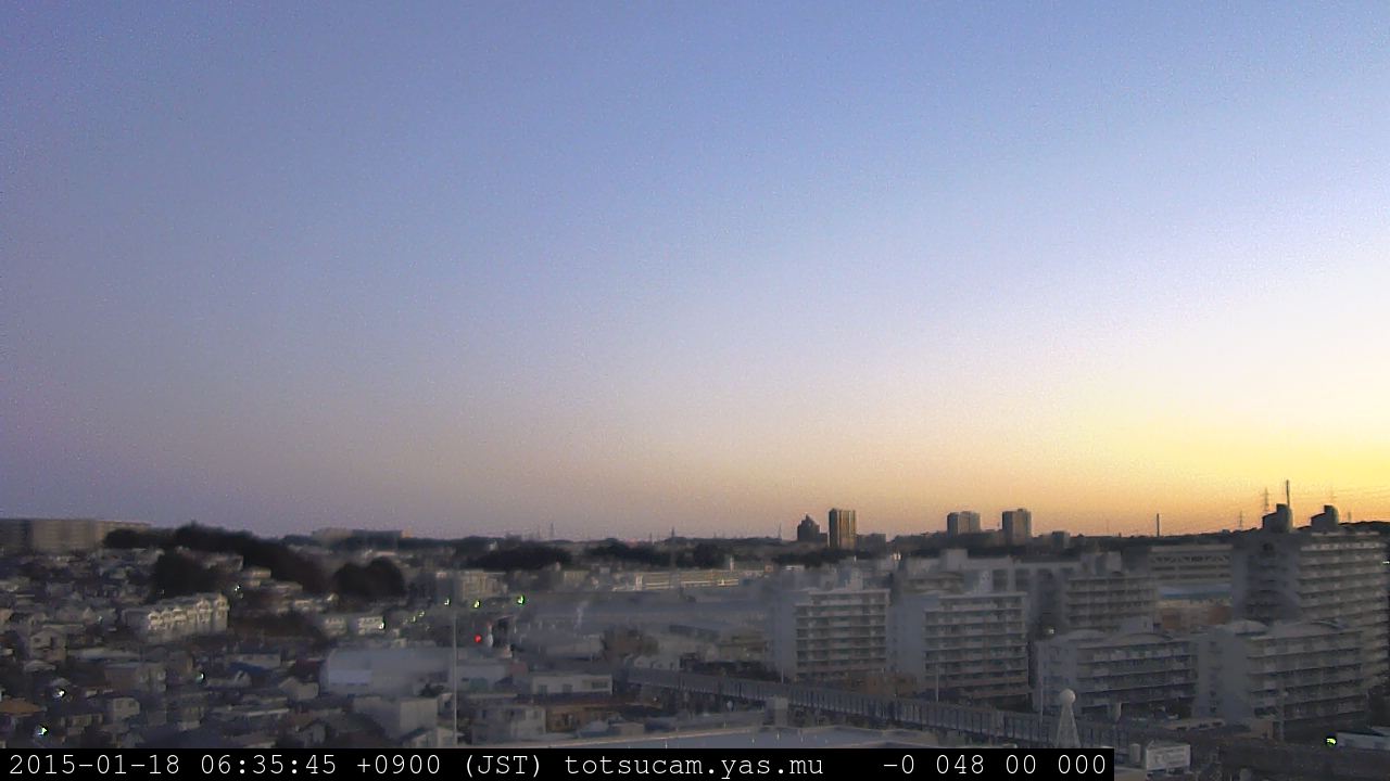 横浜市戸塚駅周辺から 東戸塚方面(北北東)を望む展望カメラの映像です。 左は現在の映像です。 下に並んでいるのは、 7日間に亘る日の出どき、昼間、夕暮れどきの写真(サムネイル)です。 それぞれ、日の出15分前、南中時、日没20分後の写真となっています。 各写真の下にはmpeg形式の動画へのリンクがあります。 それぞれ、日の出、南中、日没の前後1時間の画像です。 右欄にはその日24時間の動画へのリンクがあります。 この7日間以外は日付が一覧表示されています。 日付部分をクリックすると、 その日付から7日分が展開されて表示されます。