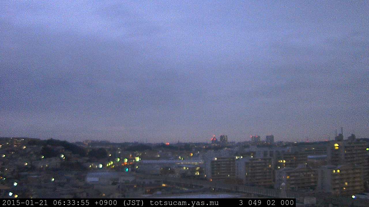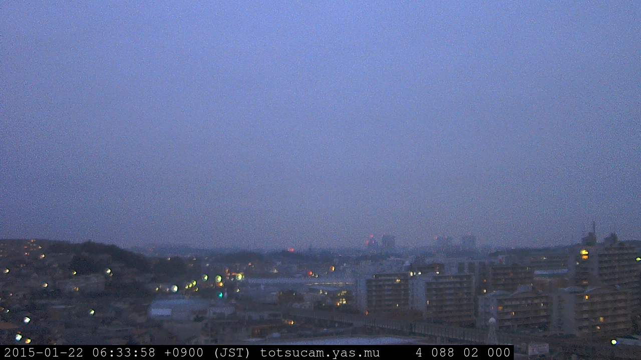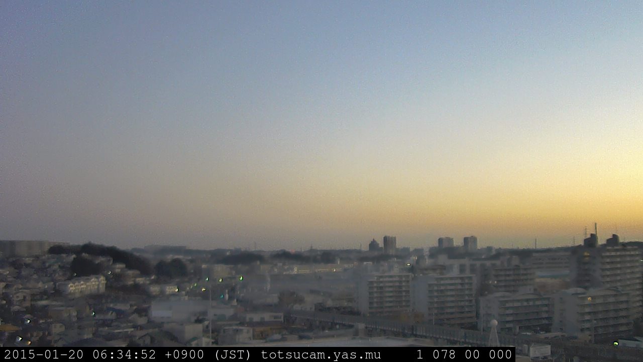 横浜市戸塚駅周辺から 東戸塚方面(北北東)を望む展望カメラの映像です。 左は現在の映像です。 下に並んでいるのは、 7日間に亘る日の出どき、昼間、夕暮れどきの写真(サムネイル)です。 それぞれ、日の出15分前、南中時、日没20分後の写真となっています。 各写真の下にはmpeg形式の動画へのリンクがあります。 それぞれ、日の出、南中、日没の前後1時間の画像です。 右欄にはその日24時間の動画へのリンクがあります。 この7日間以外は日付が一覧表示されています。 日付部分をクリックすると、 その日付から7日分が展開されて表示されます。