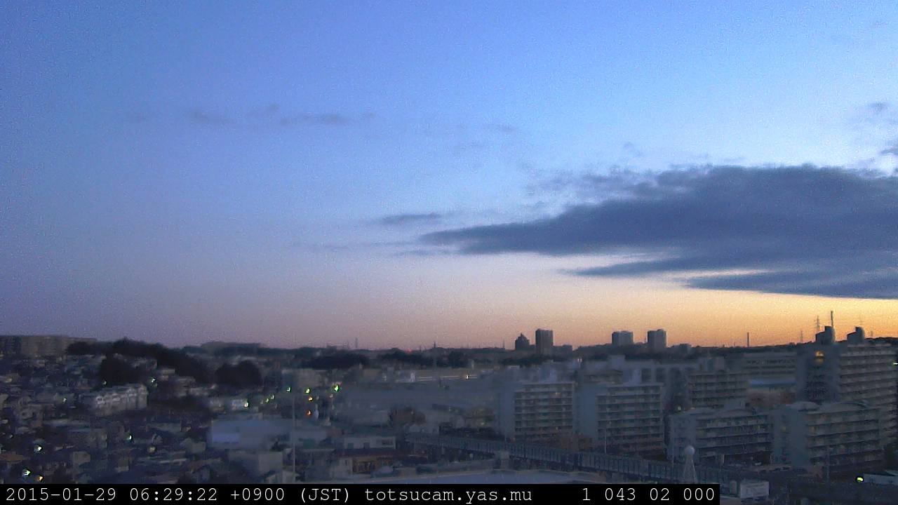 横浜市戸塚駅周辺から 東戸塚方面(北北東)を望む展望カメラの映像です。 左は現在の映像です。 下に並んでいるのは、 7日間に亘る日の出どき、昼間、夕暮れどきの写真(サムネイル)です。 それぞれ、日の出15分前、南中時、日没20分後の写真となっています。 各写真の下にはmpeg形式の動画へのリンクがあります。 それぞれ、日の出、南中、日没の前後1時間の画像です。 右欄にはその日24時間の動画へのリンクがあります。 この7日間以外は日付が一覧表示されています。 日付部分をクリックすると、 その日付から7日分が展開されて表示されます。