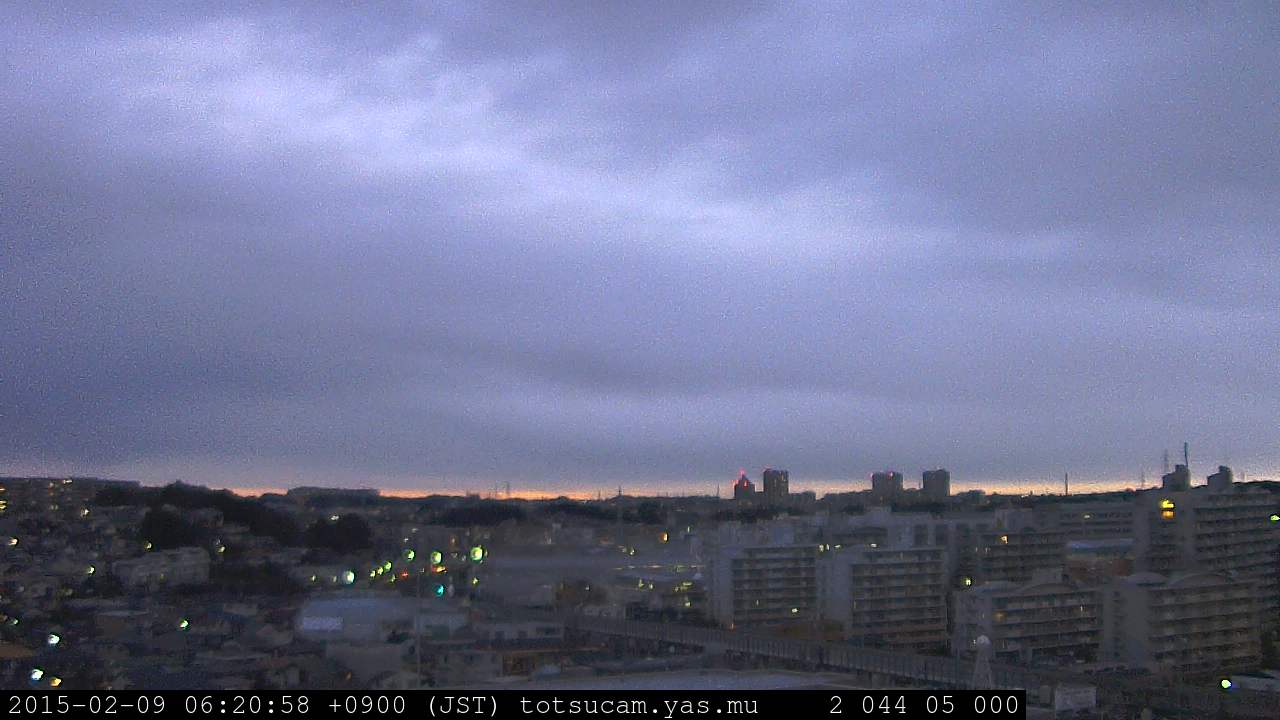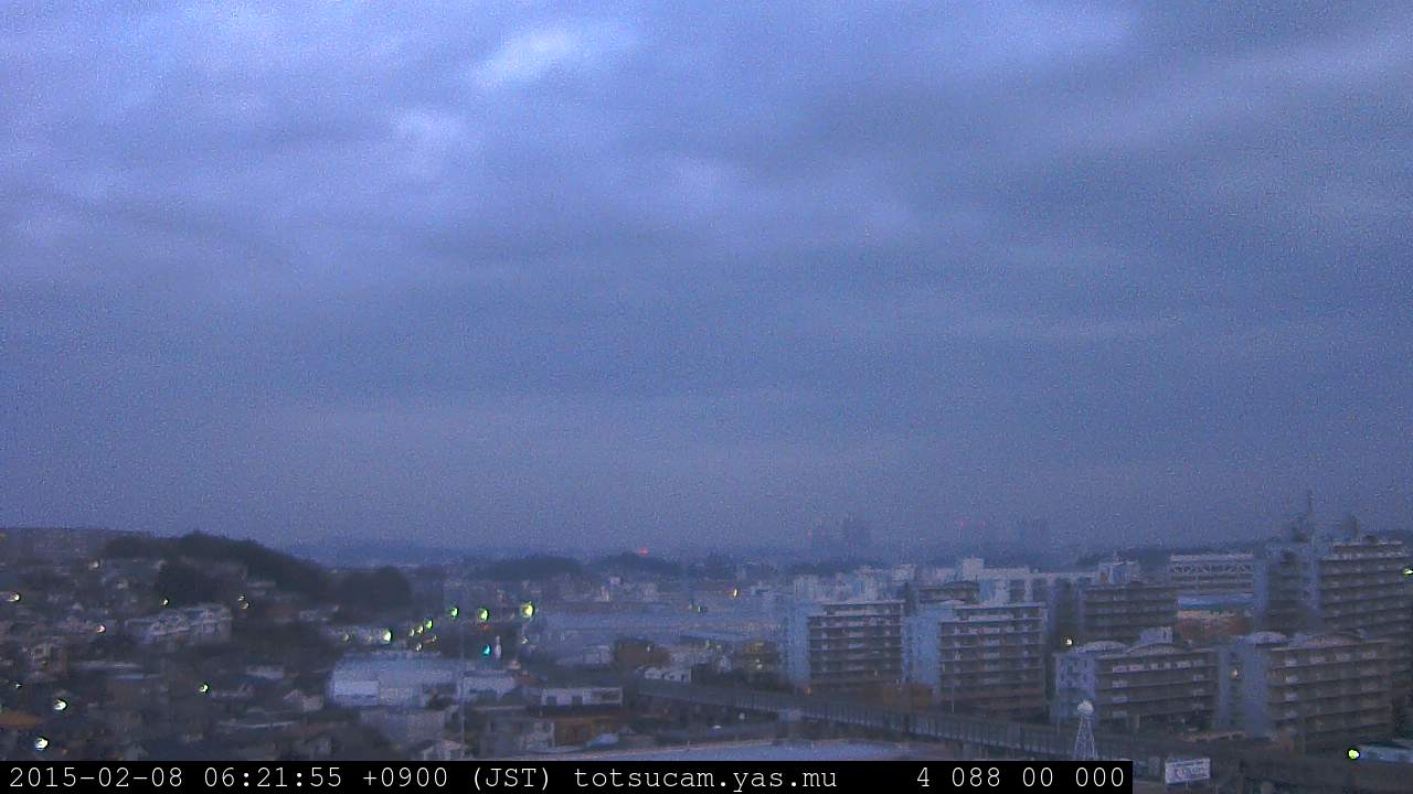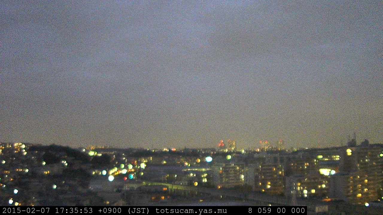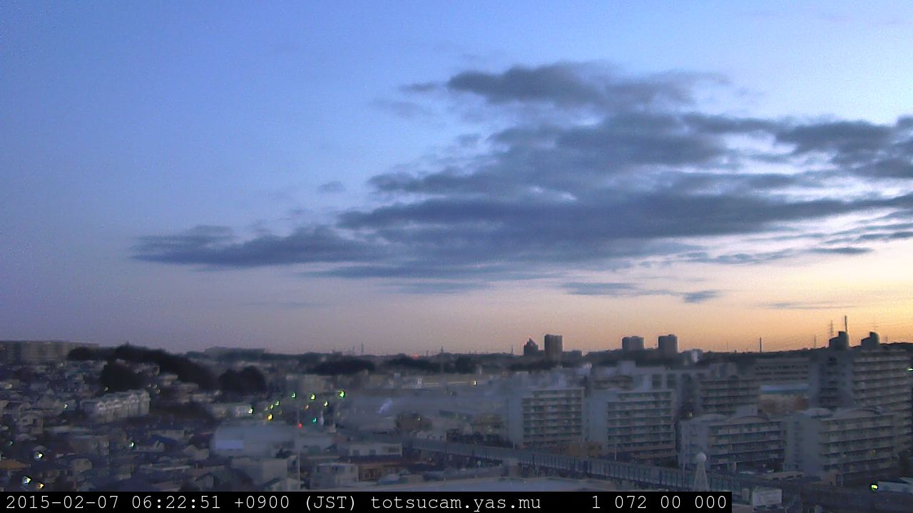 横浜市戸塚駅周辺から 東戸塚方面(北北東)を望む展望カメラの映像です。 左は現在の映像です。 下に並んでいるのは、 7日間に亘る日の出どき、昼間、夕暮れどきの写真(サムネイル)です。 それぞれ、日の出15分前、南中時、日没20分後の写真となっています。 各写真の下にはmpeg形式の動画へのリンクがあります。 それぞれ、日の出、南中、日没の前後1時間の画像です。 右欄にはその日24時間の動画へのリンクがあります。 この7日間以外は日付が一覧表示されています。 日付部分をクリックすると、 その日付から7日分が展開されて表示されます。