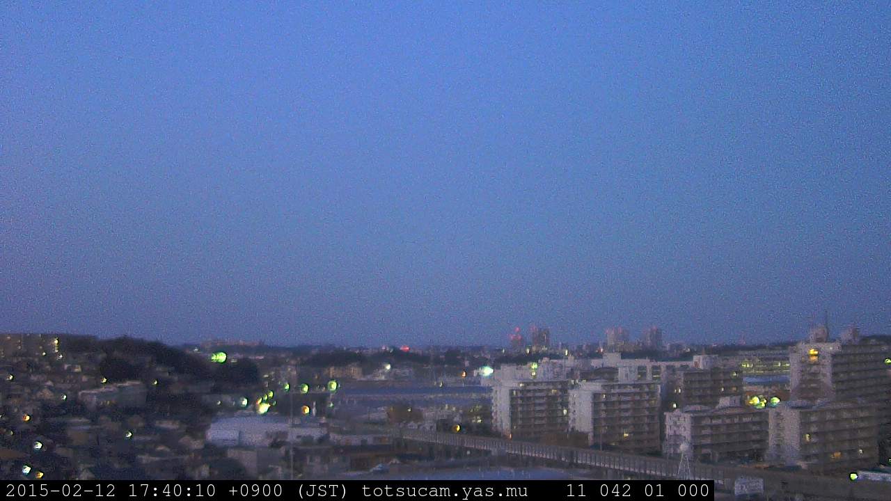 横浜市戸塚駅周辺から 東戸塚方面(北北東)を望む展望カメラの映像です。 左は現在の映像です。 下に並んでいるのは、 7日間に亘る日の出どき、昼間、夕暮れどきの写真(サムネイル)です。 それぞれ、日の出15分前、南中時、日没20分後の写真となっています。 各写真の下にはmpeg形式の動画へのリンクがあります。 それぞれ、日の出、南中、日没の前後1時間の画像です。 右欄にはその日24時間の動画へのリンクがあります。 この7日間以外は日付が一覧表示されています。 日付部分をクリックすると、 その日付から7日分が展開されて表示されます。