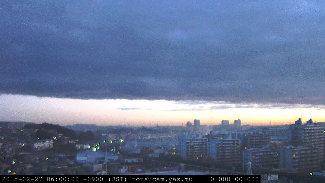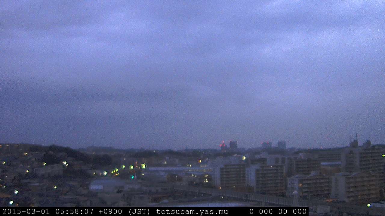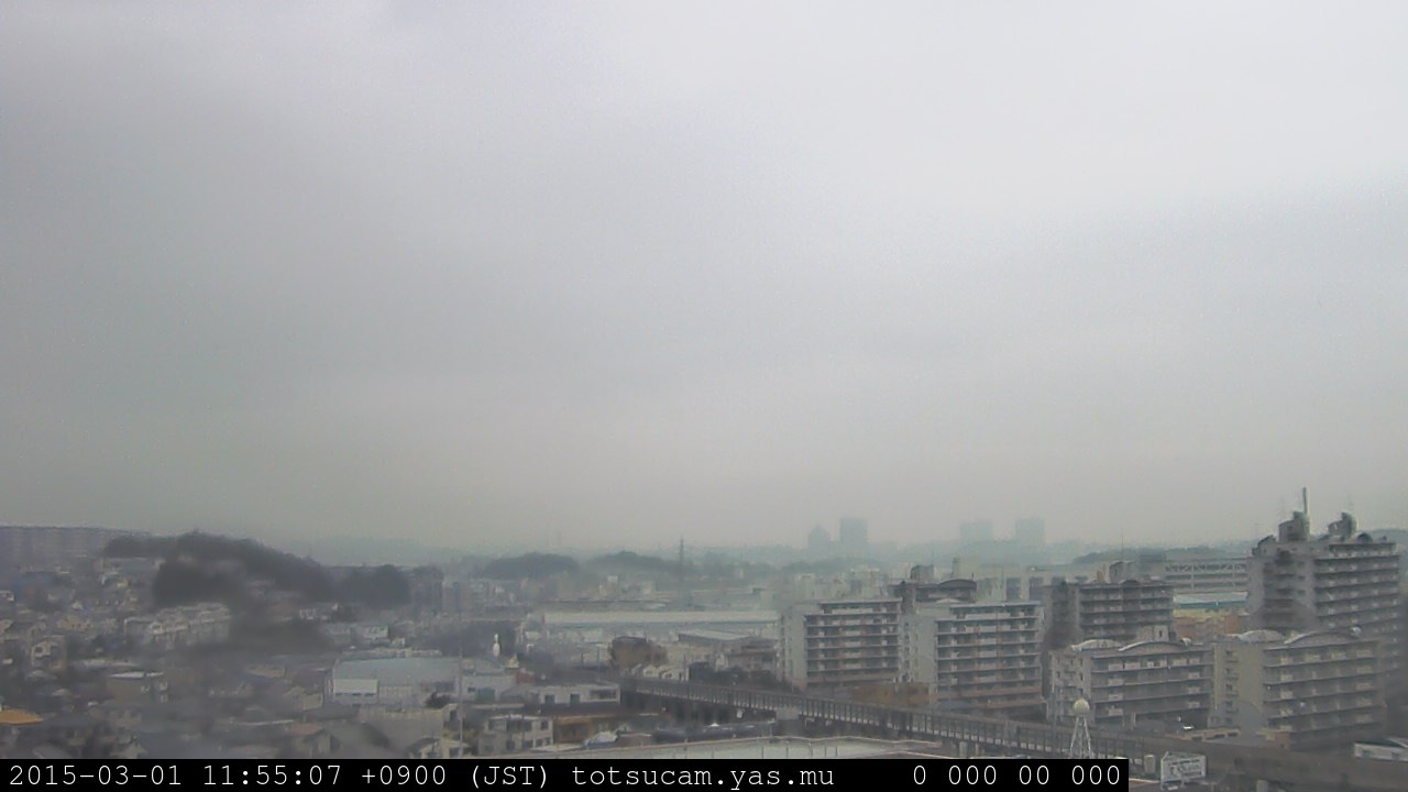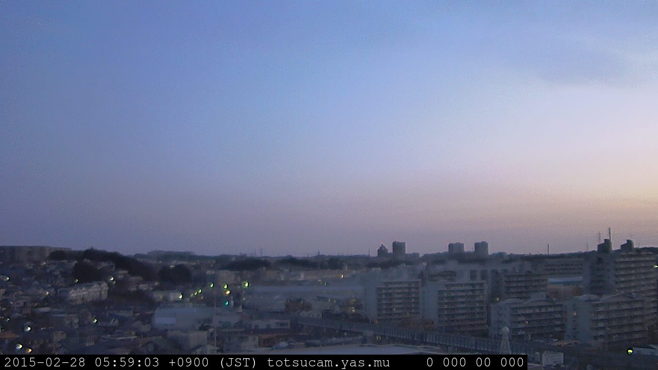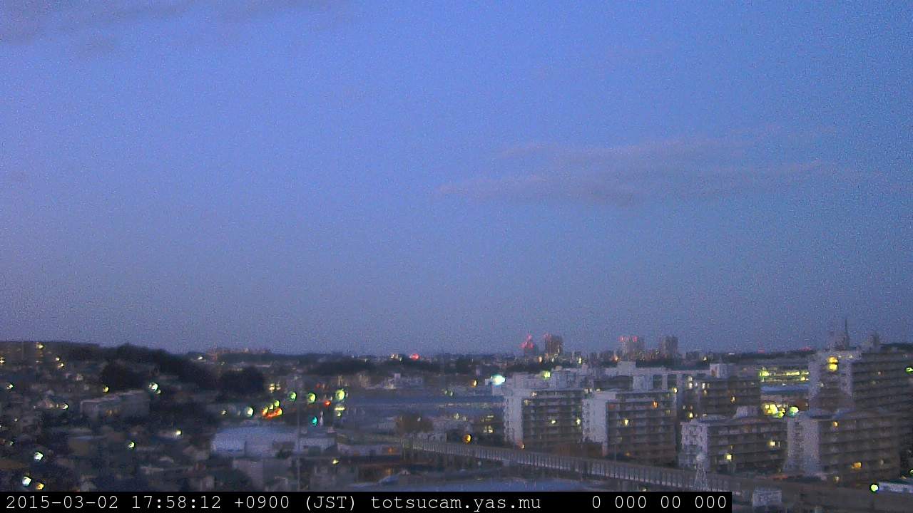 横浜市戸塚駅周辺から 東戸塚方面(北北東)を望む展望カメラの映像です。 左は現在の映像です。 下に並んでいるのは、 7日間に亘る日の出どき、昼間、夕暮れどきの写真(サムネイル)です。 それぞれ、日の出15分前、南中時、日没20分後の写真となっています。 各写真の下にはmpeg形式の動画へのリンクがあります。 それぞれ、日の出、南中、日没の前後1時間の画像です。 右欄にはその日24時間の動画へのリンクがあります。 この7日間以外は日付が一覧表示されています。 日付部分をクリックすると、 その日付から7日分が展開されて表示されます。