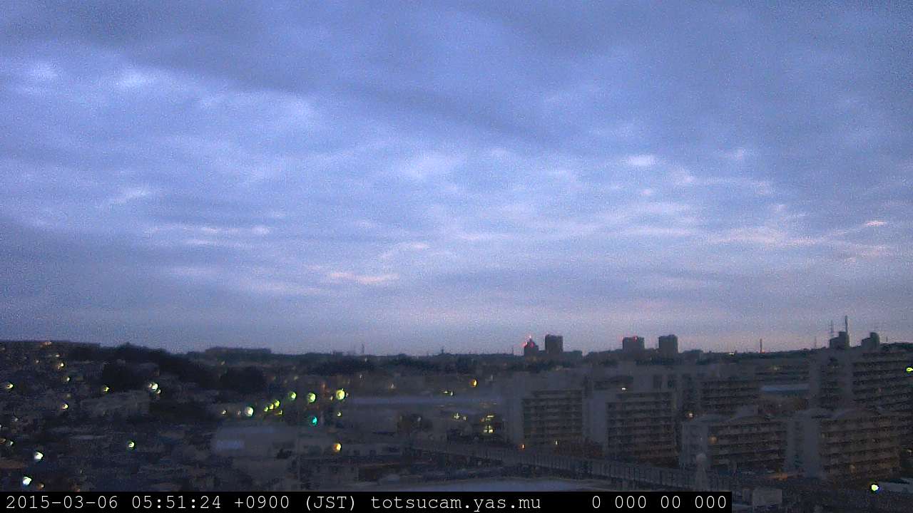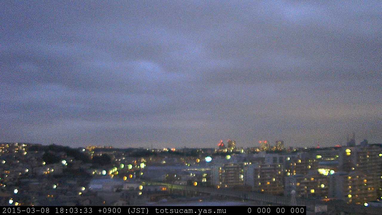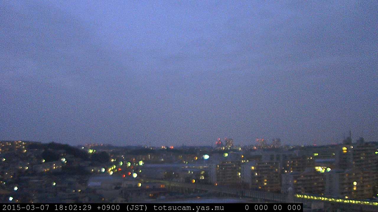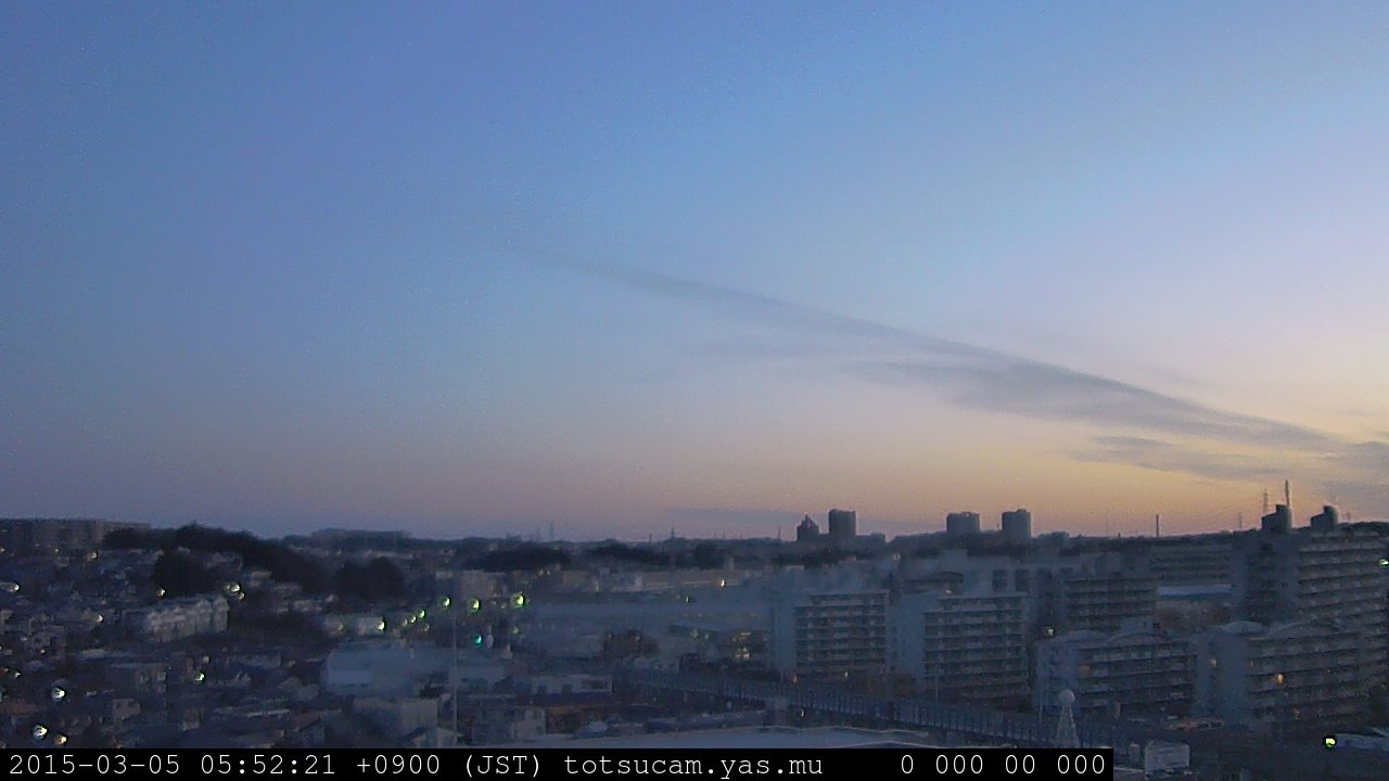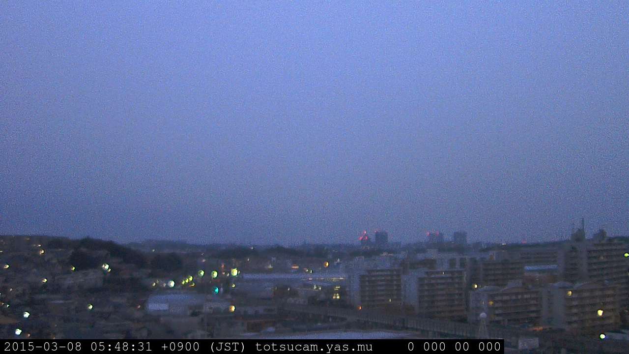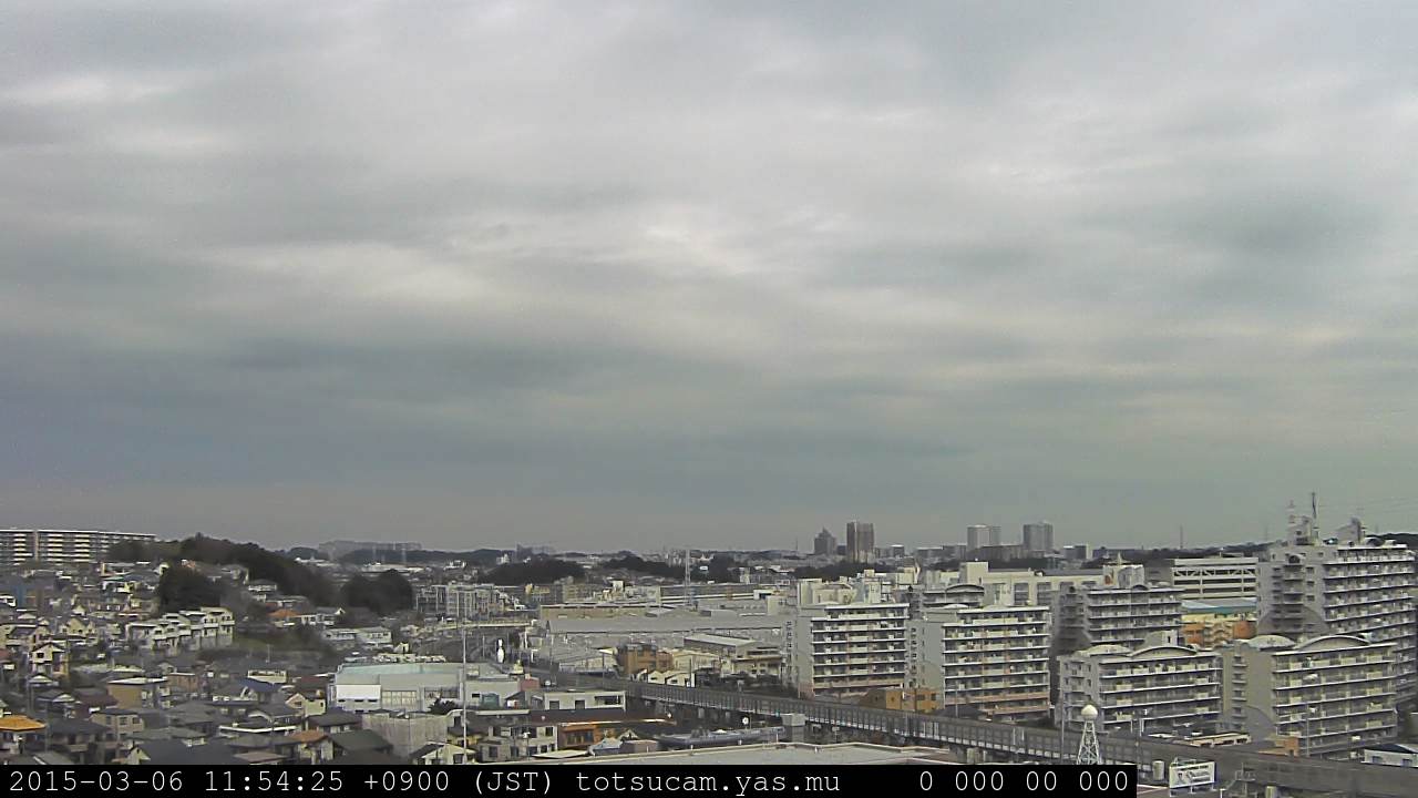 横浜市戸塚駅周辺から 東戸塚方面(北北東)を望む展望カメラの映像です。 左は現在の映像です。 下に並んでいるのは、 7日間に亘る日の出どき、昼間、夕暮れどきの写真(サムネイル)です。 それぞれ、日の出15分前、南中時、日没20分後の写真となっています。 各写真の下にはmpeg形式の動画へのリンクがあります。 それぞれ、日の出、南中、日没の前後1時間の画像です。 右欄にはその日24時間の動画へのリンクがあります。 この7日間以外は日付が一覧表示されています。 日付部分をクリックすると、 その日付から7日分が展開されて表示されます。