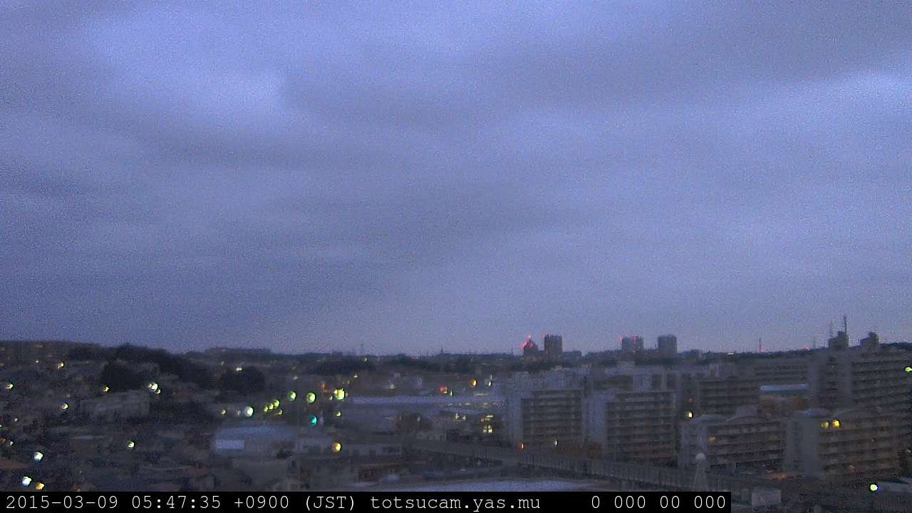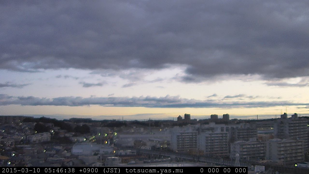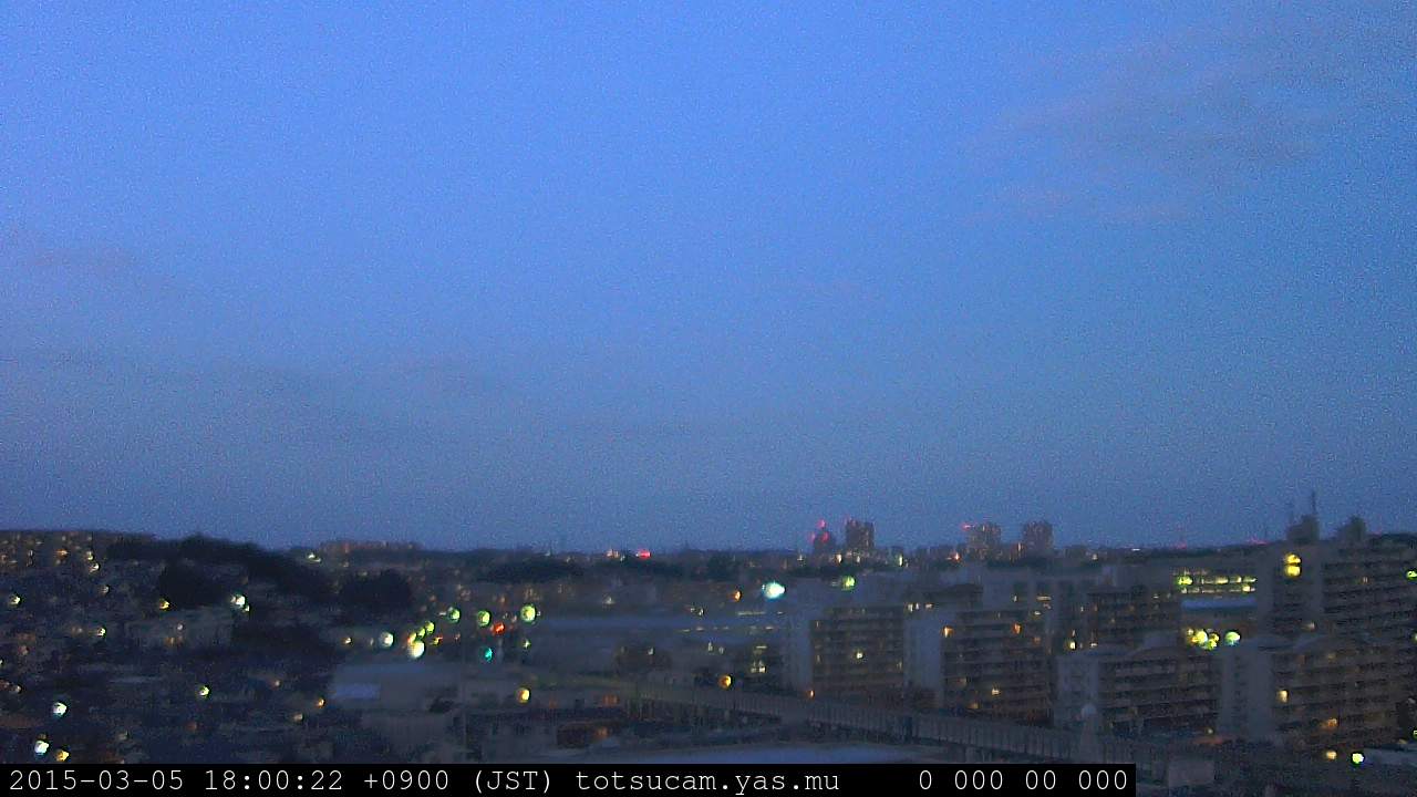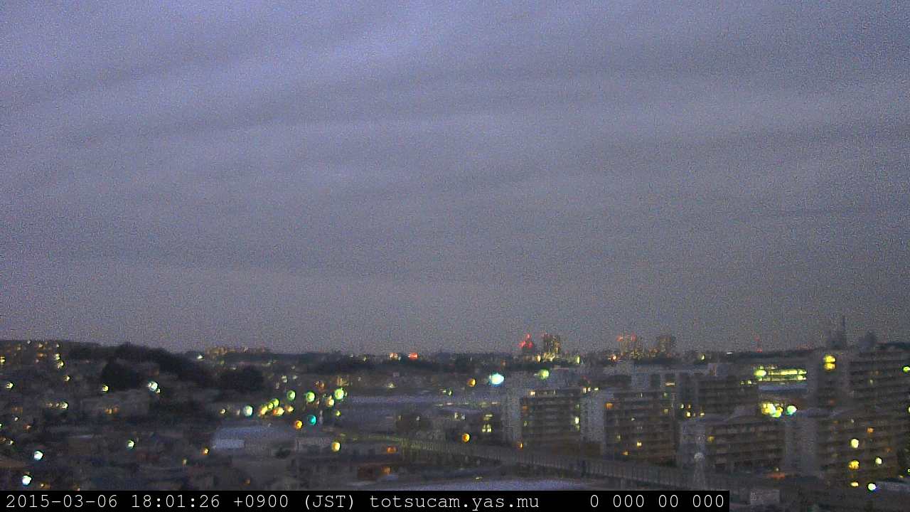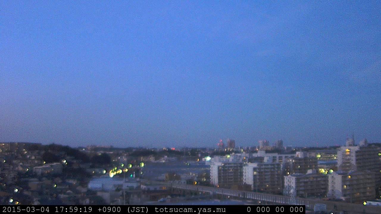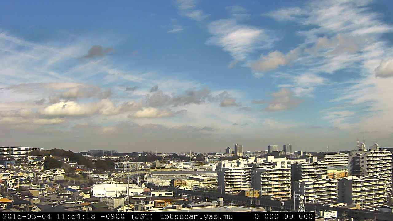 横浜市戸塚駅周辺から 東戸塚方面(北北東)を望む展望カメラの映像です。 左は現在の映像です。 下に並んでいるのは、 7日間に亘る日の出どき、昼間、夕暮れどきの写真(サムネイル)です。 それぞれ、日の出15分前、南中時、日没20分後の写真となっています。 各写真の下にはmpeg形式の動画へのリンクがあります。 それぞれ、日の出、南中、日没の前後1時間の画像です。 右欄にはその日24時間の動画へのリンクがあります。 この7日間以外は日付が一覧表示されています。 日付部分をクリックすると、 その日付から7日分が展開されて表示されます。