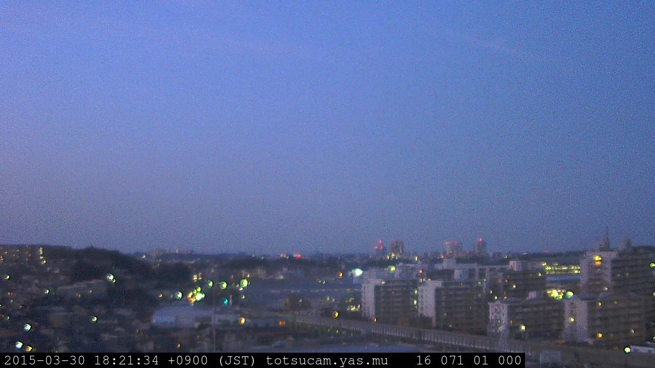 横浜市戸塚駅周辺から 東戸塚方面(北北東)を望む展望カメラの映像です。 左は現在の映像です。 下に並んでいるのは、 7日間に亘る日の出どき、昼間、夕暮れどきの写真(サムネイル)です。 それぞれ、日の出15分前、南中時、日没20分後の写真となっています。 各写真の下にはmpeg形式の動画へのリンクがあります。 それぞれ、日の出、南中、日没の前後1時間の画像です。 右欄にはその日24時間の動画へのリンクがあります。 この7日間以外は日付が一覧表示されています。 日付部分をクリックすると、 その日付から7日分が展開されて表示されます。