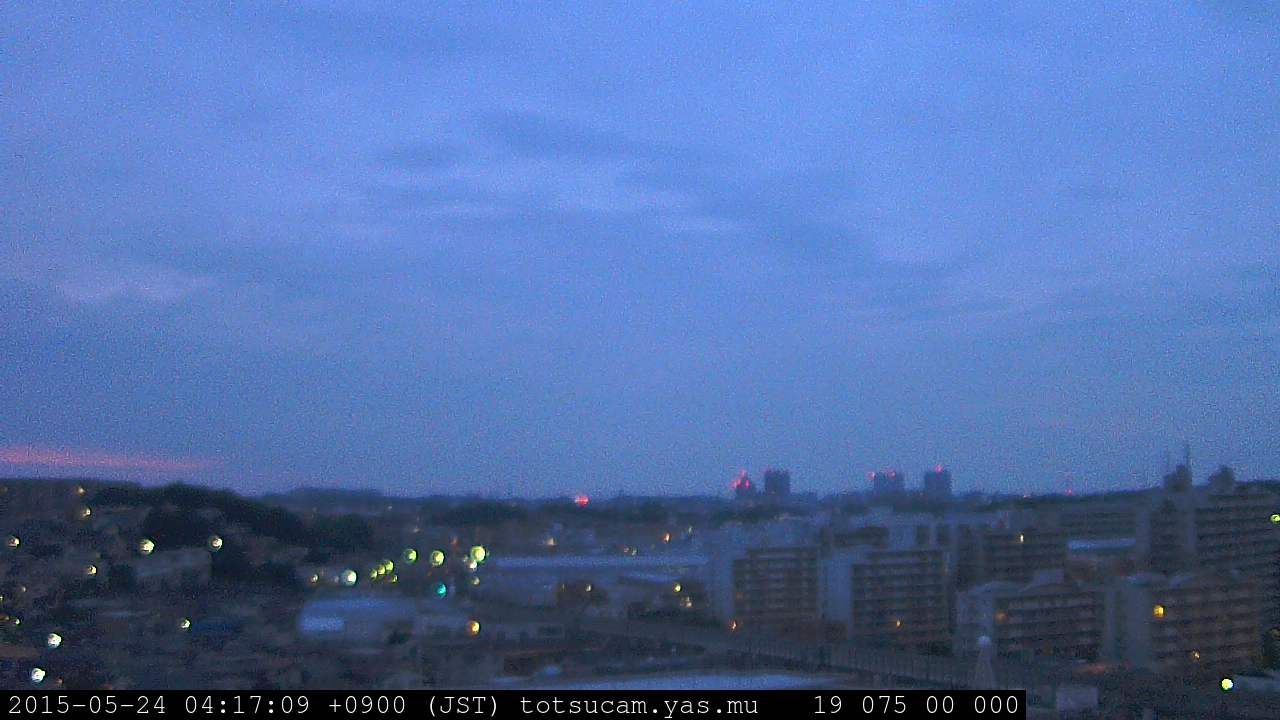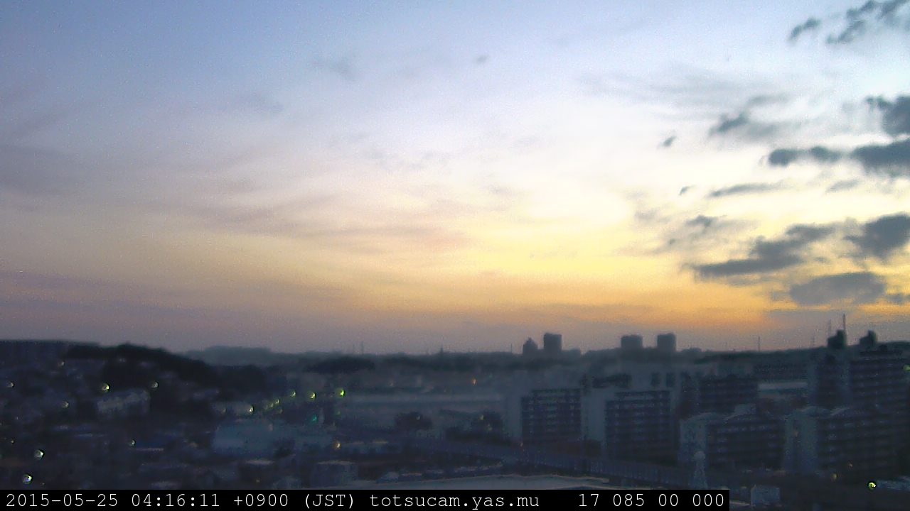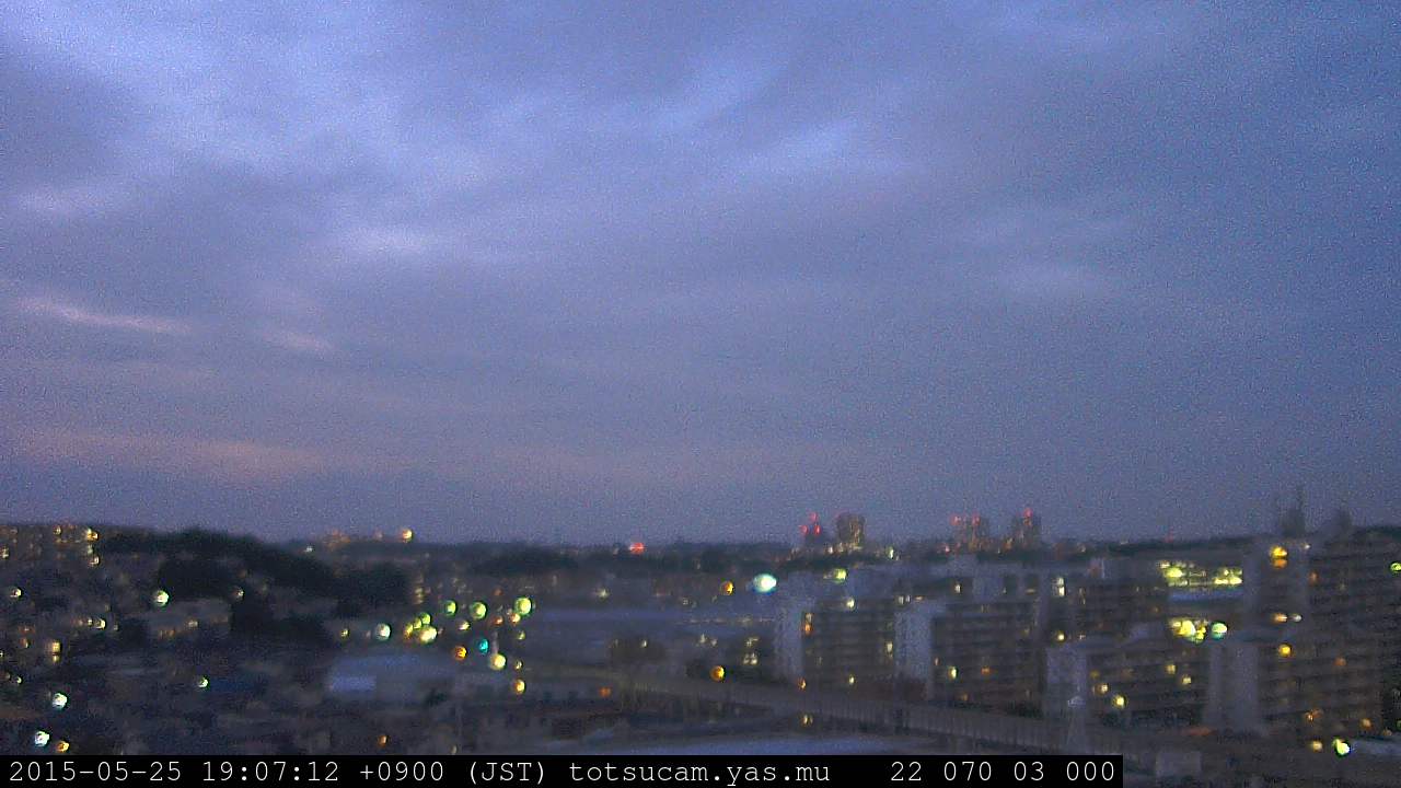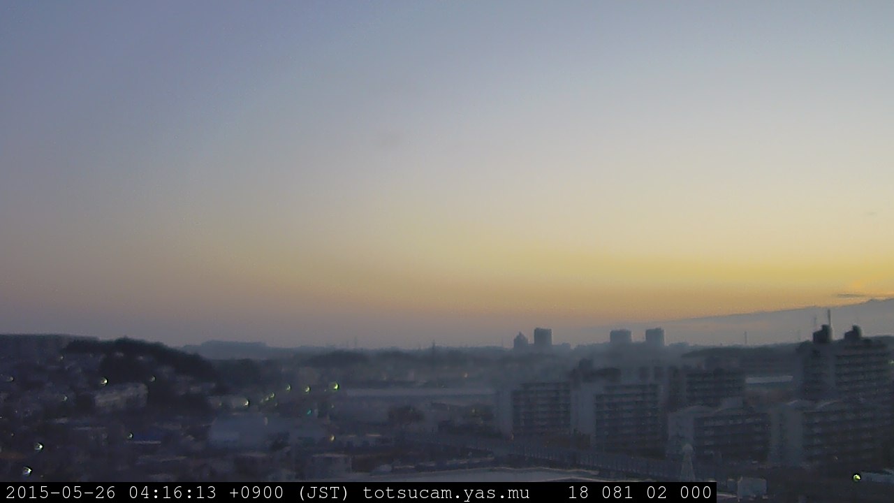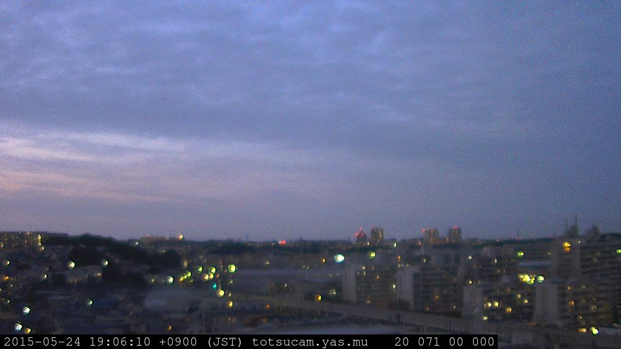 横浜市戸塚駅周辺から 東戸塚方面(北北東)を望む展望カメラの映像です。 左は現在の映像です。 下に並んでいるのは、 7日間に亘る日の出どき、昼間、夕暮れどきの写真(サムネイル)です。 それぞれ、日の出15分前、南中時、日没20分後の写真となっています。 各写真の下にはmpeg形式の動画へのリンクがあります。 それぞれ、日の出、南中、日没の前後1時間の画像です。 右欄にはその日24時間の動画へのリンクがあります。 この7日間以外は日付が一覧表示されています。 日付部分をクリックすると、 その日付から7日分が展開されて表示されます。