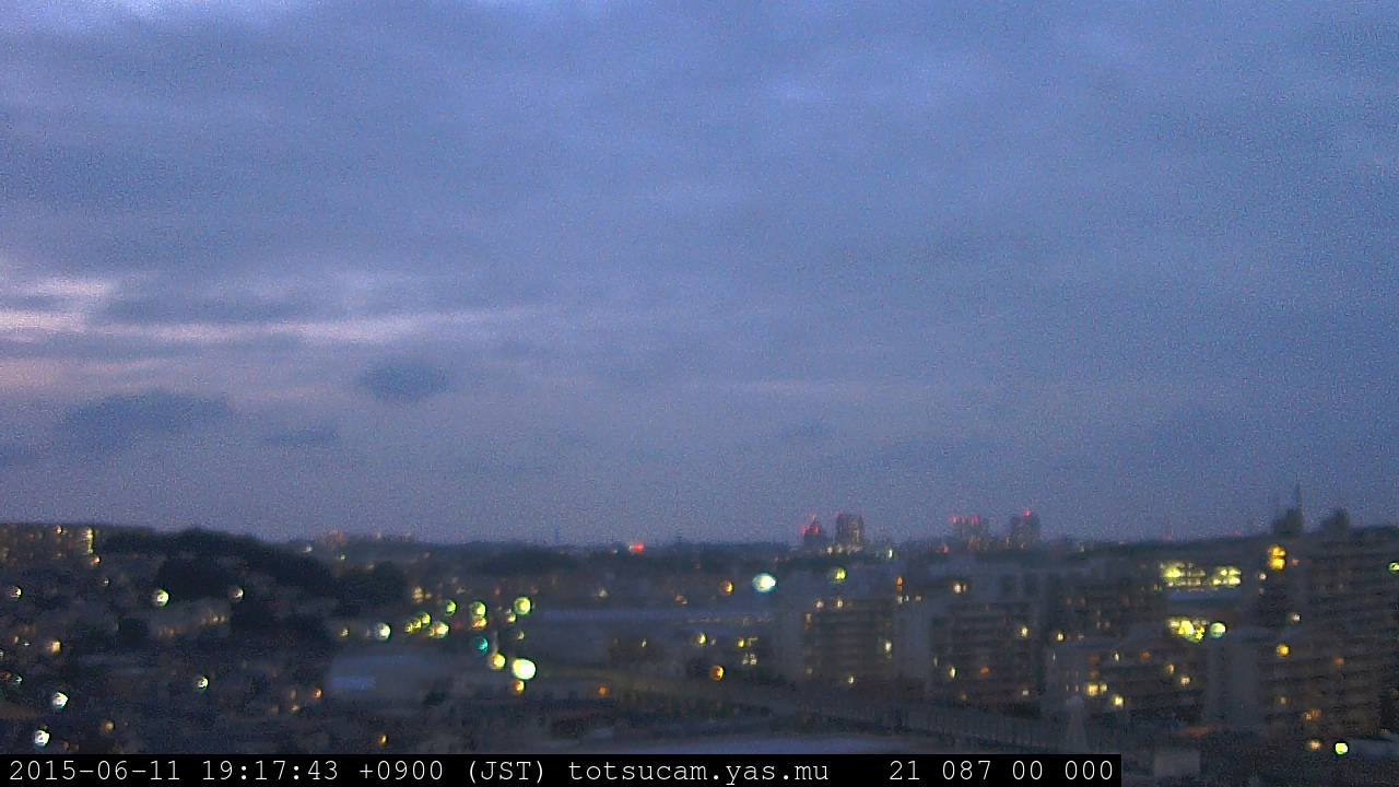 横浜市戸塚駅周辺から 東戸塚方面(北北東)を望む展望カメラの映像です。 左は現在の映像です。 下に並んでいるのは、 7日間に亘る日の出どき、昼間、夕暮れどきの写真(サムネイル)です。 それぞれ、日の出15分前、南中時、日没20分後の写真となっています。 各写真の下にはmpeg形式の動画へのリンクがあります。 それぞれ、日の出、南中、日没の前後1時間の画像です。 右欄にはその日24時間の動画へのリンクがあります。 この7日間以外は日付が一覧表示されています。 日付部分をクリックすると、 その日付から7日分が展開されて表示されます。
