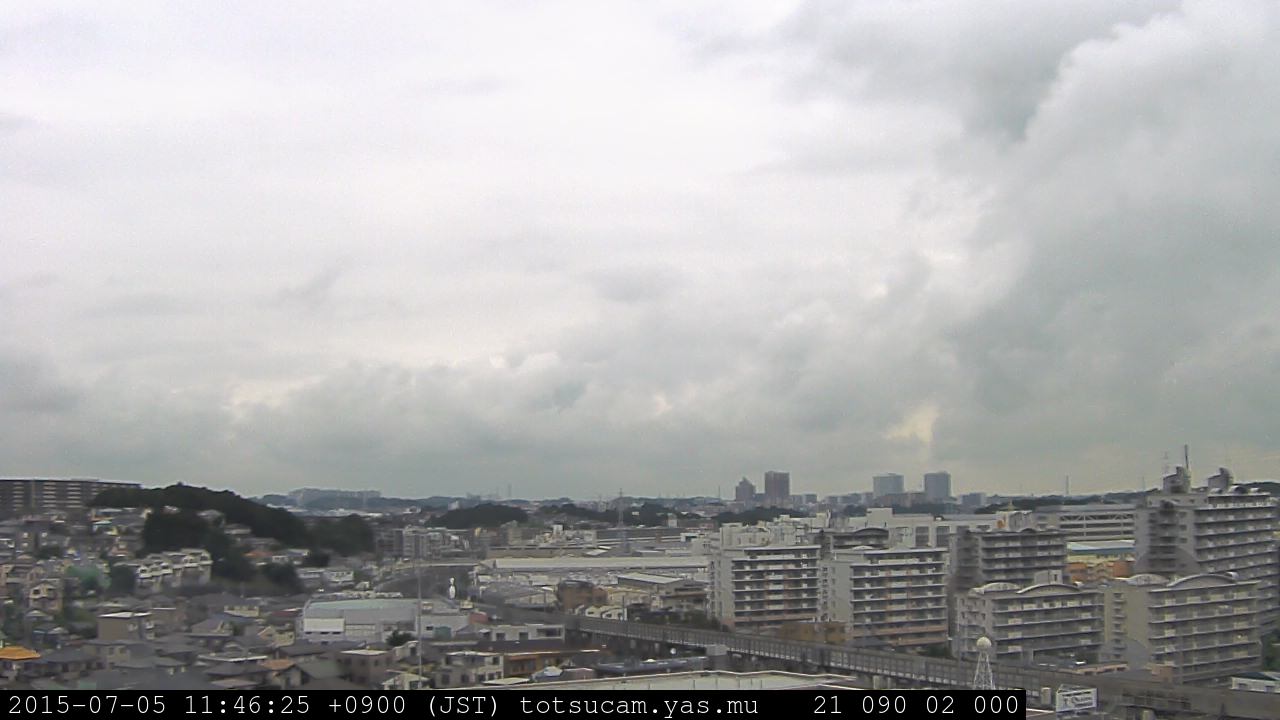適度に曇った日の雲の動き (例: 2005-10-24) がとても楽しめます。 正面を横切っている高架は横須賀線下りです。 その下に横須賀線上り、東海道線、同貨物線が走っていますが、 高架に隠れていてよく見えません。 夜間は特に中央左寄りの車の動きがよく見えます。