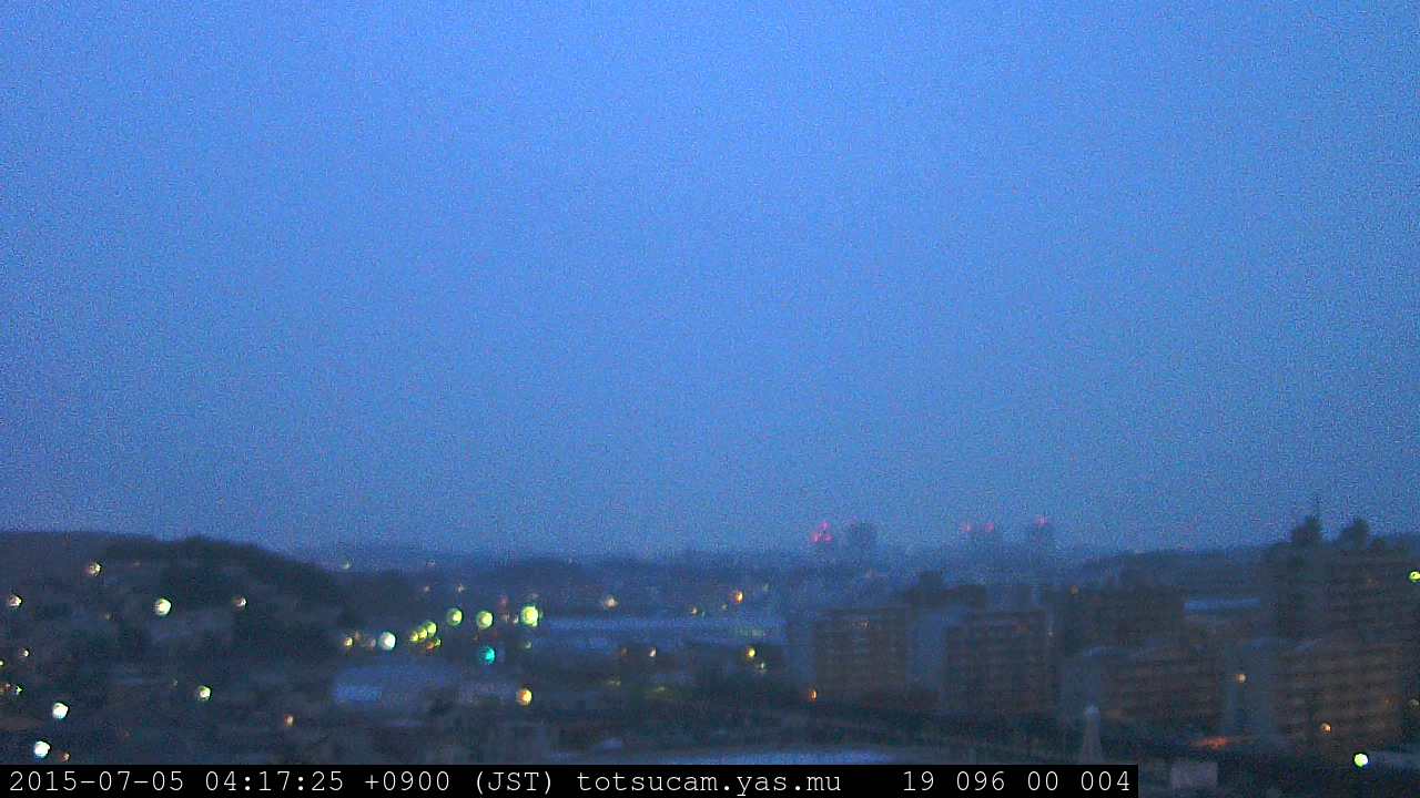 横浜市戸塚駅周辺から 東戸塚方面(北北東)を望む展望カメラの映像です。 左は現在の映像です。 下に並んでいるのは、 7日間に亘る日の出どき、昼間、夕暮れどきの写真(サムネイル)です。 それぞれ、日の出15分前、南中時、日没20分後の写真となっています。 各写真の下にはmpeg形式の動画へのリンクがあります。 それぞれ、日の出、南中、日没の前後1時間の画像です。 右欄にはその日24時間の動画へのリンクがあります。 この7日間以外は日付が一覧表示されています。 日付部分をクリックすると、 その日付から7日分が展開されて表示されます。
