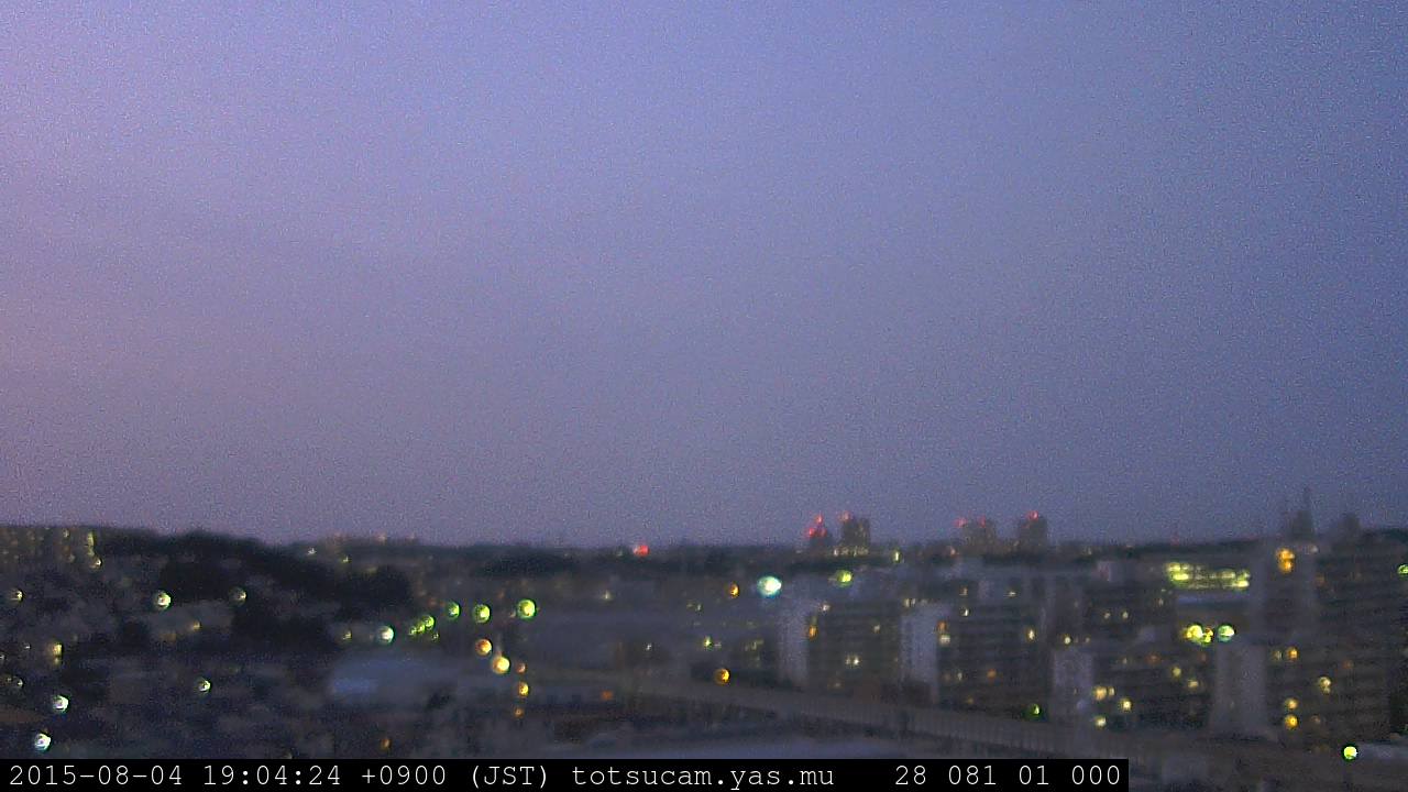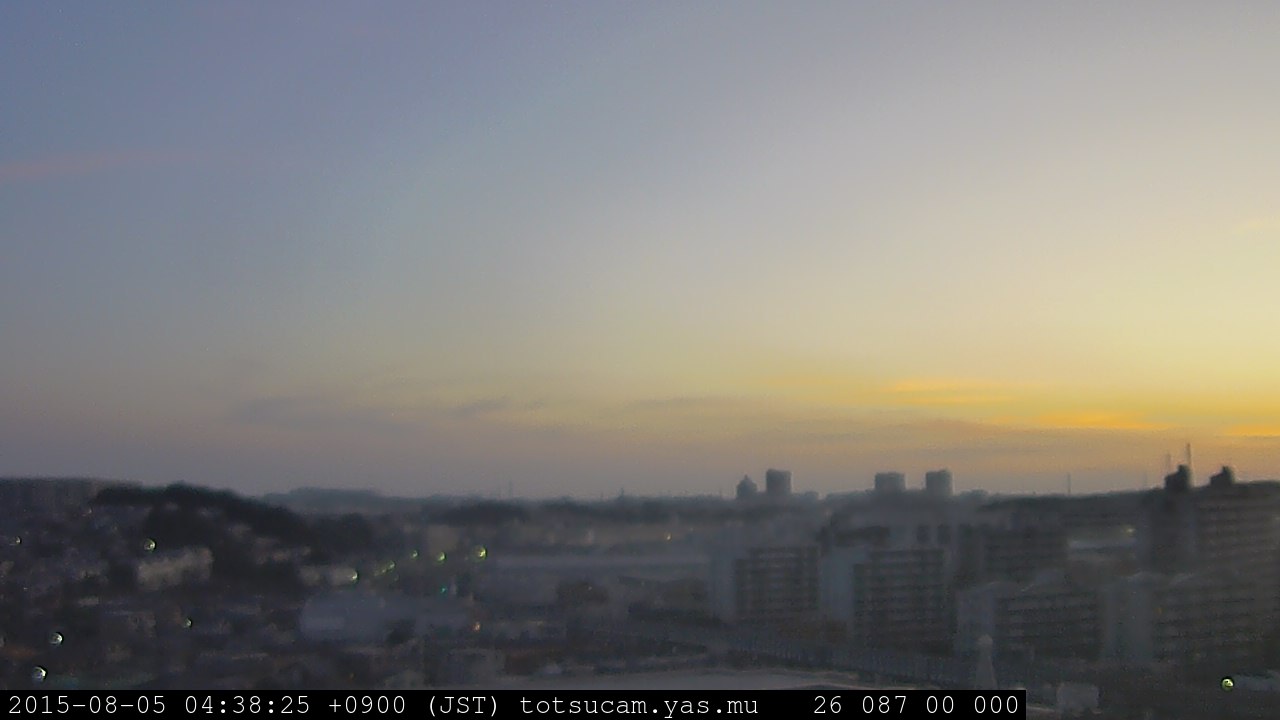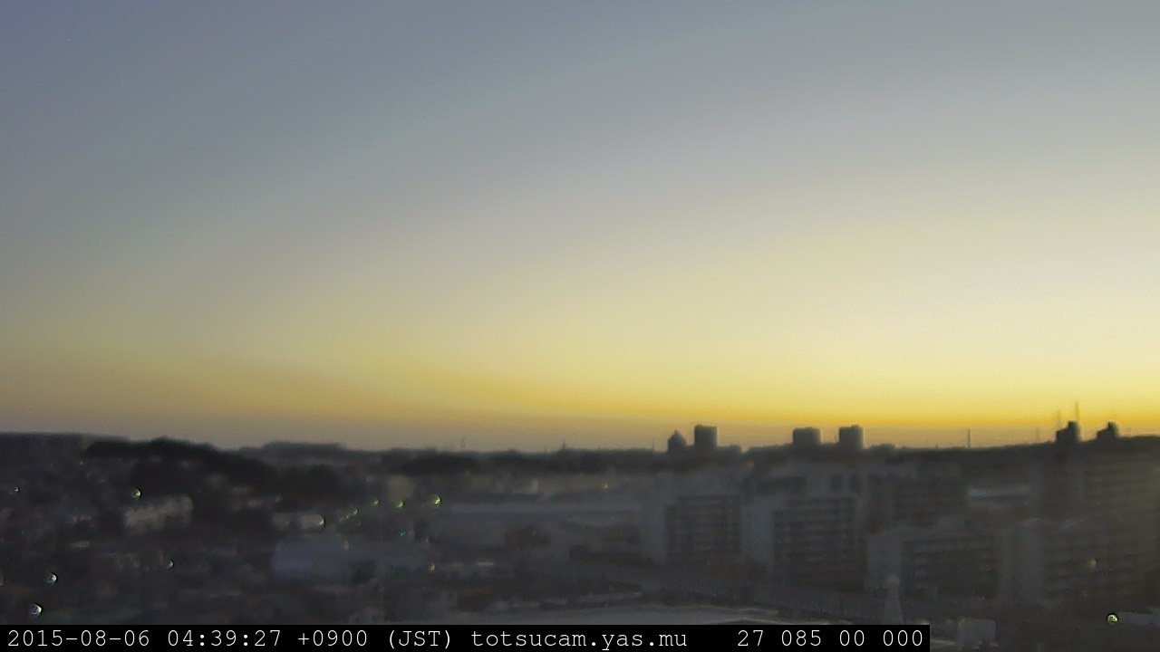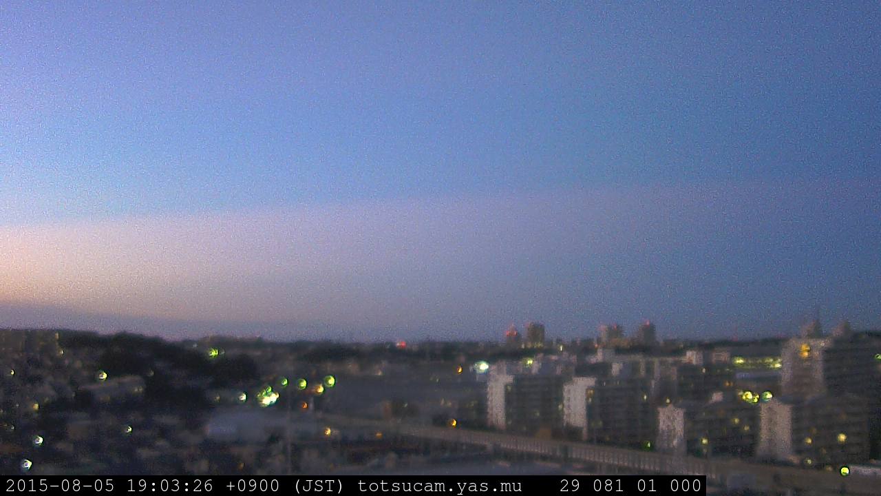 横浜市戸塚駅周辺から 東戸塚方面(北北東)を望む展望カメラの映像です。 左は現在の映像です。 下に並んでいるのは、 7日間に亘る日の出どき、昼間、夕暮れどきの写真(サムネイル)です。 それぞれ、日の出15分前、南中時、日没20分後の写真となっています。 各写真の下にはmpeg形式の動画へのリンクがあります。 それぞれ、日の出、南中、日没の前後1時間の画像です。 右欄にはその日24時間の動画へのリンクがあります。 この7日間以外は日付が一覧表示されています。 日付部分をクリックすると、 その日付から7日分が展開されて表示されます。