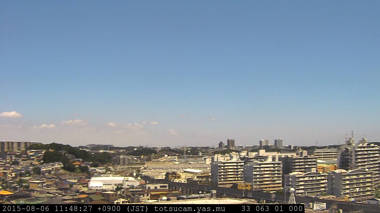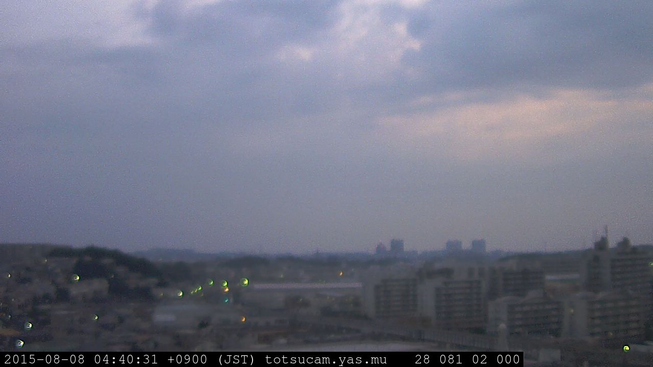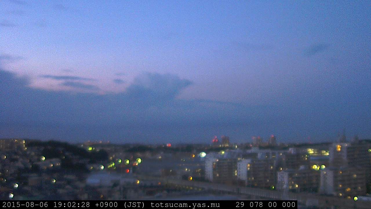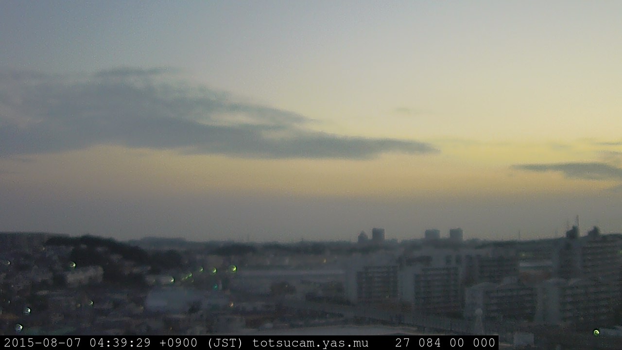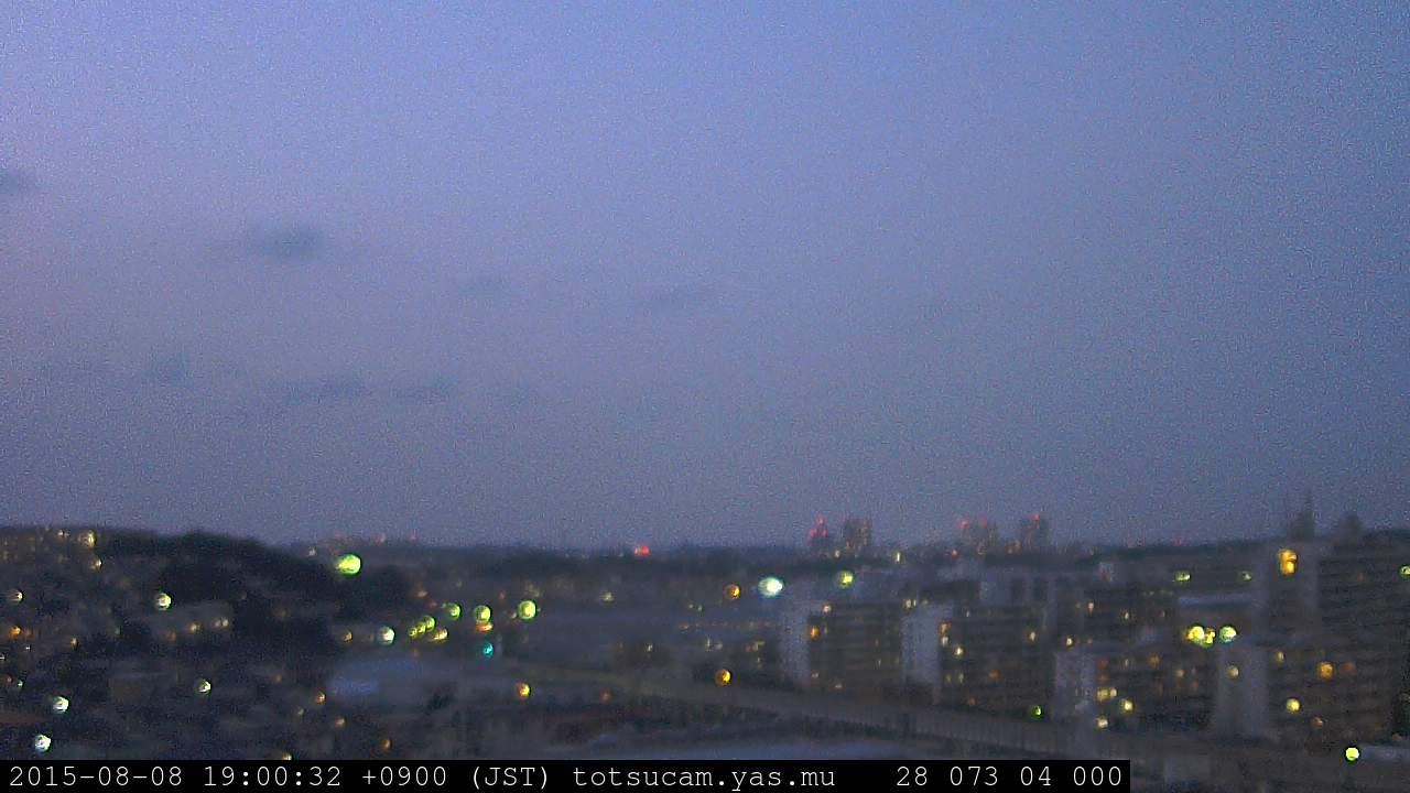 横浜市戸塚駅周辺から 東戸塚方面(北北東)を望む展望カメラの映像です。 左は現在の映像です。 下に並んでいるのは、 7日間に亘る日の出どき、昼間、夕暮れどきの写真(サムネイル)です。 それぞれ、日の出15分前、南中時、日没20分後の写真となっています。 各写真の下にはmpeg形式の動画へのリンクがあります。 それぞれ、日の出、南中、日没の前後1時間の画像です。 右欄にはその日24時間の動画へのリンクがあります。 この7日間以外は日付が一覧表示されています。 日付部分をクリックすると、 その日付から7日分が展開されて表示されます。