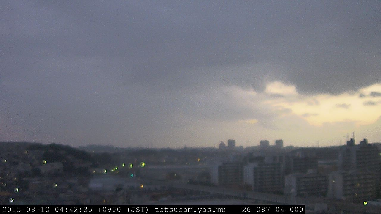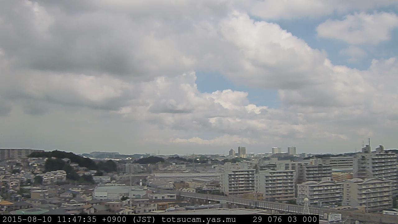 横浜市戸塚駅周辺から 東戸塚方面(北北東)を望む展望カメラの映像です。 左は現在の映像です。 下に並んでいるのは、 7日間に亘る日の出どき、昼間、夕暮れどきの写真(サムネイル)です。 それぞれ、日の出15分前、南中時、日没20分後の写真となっています。 各写真の下にはmpeg形式の動画へのリンクがあります。 それぞれ、日の出、南中、日没の前後1時間の画像です。 右欄にはその日24時間の動画へのリンクがあります。 この7日間以外は日付が一覧表示されています。 日付部分をクリックすると、 その日付から7日分が展開されて表示されます。