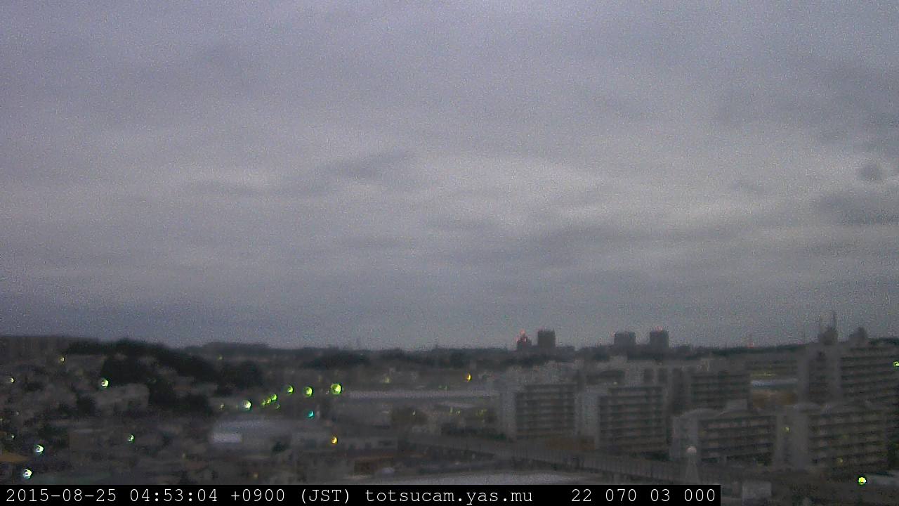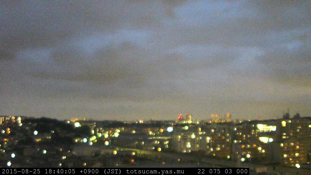 横浜市戸塚駅周辺から 東戸塚方面(北北東)を望む展望カメラの映像です。 左は現在の映像です。 下に並んでいるのは、 7日間に亘る日の出どき、昼間、夕暮れどきの写真(サムネイル)です。 それぞれ、日の出15分前、南中時、日没20分後の写真となっています。 各写真の下にはmpeg形式の動画へのリンクがあります。 それぞれ、日の出、南中、日没の前後1時間の画像です。 右欄にはその日24時間の動画へのリンクがあります。 この7日間以外は日付が一覧表示されています。 日付部分をクリックすると、 その日付から7日分が展開されて表示されます。