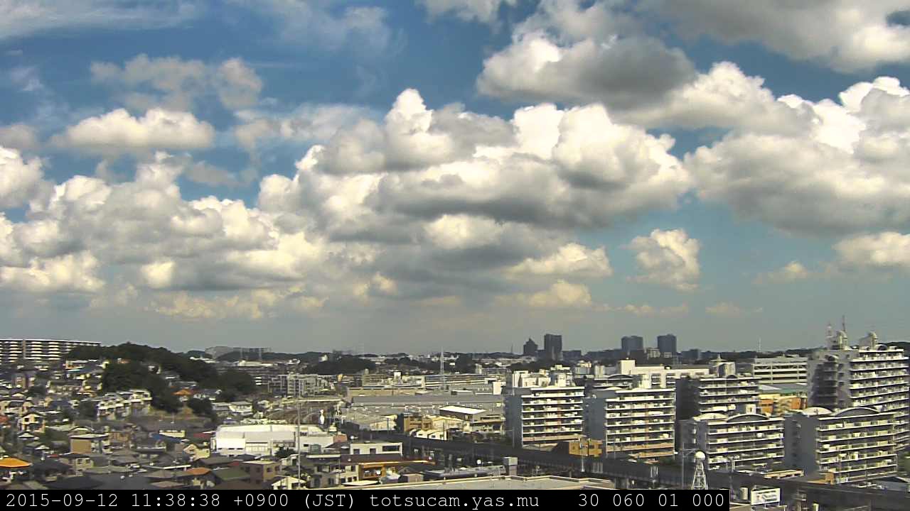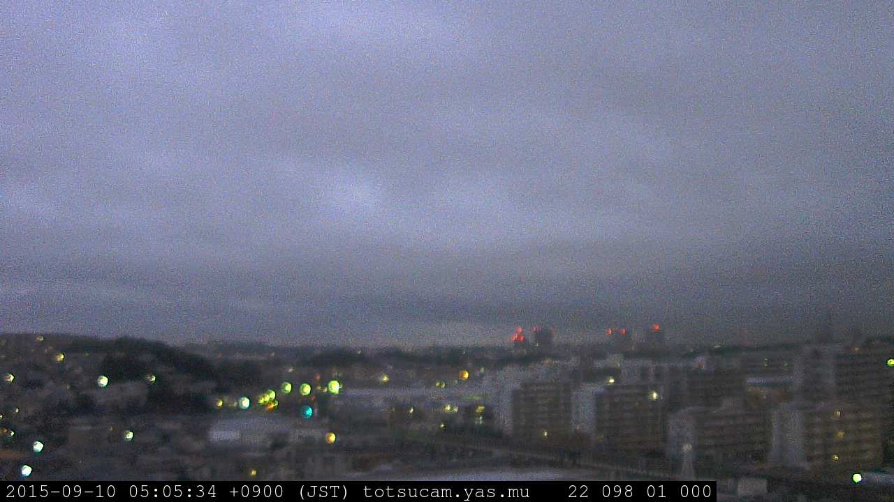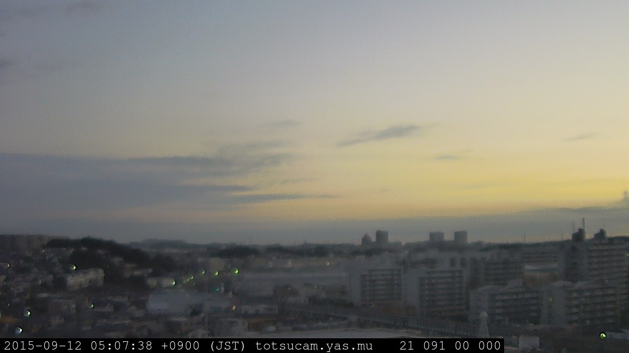 横浜市戸塚駅周辺から 東戸塚方面(北北東)を望む展望カメラの映像です。 左は現在の映像です。 下に並んでいるのは、 7日間に亘る日の出どき、昼間、夕暮れどきの写真(サムネイル)です。 それぞれ、日の出15分前、南中時、日没20分後の写真となっています。 各写真の下にはmpeg形式の動画へのリンクがあります。 それぞれ、日の出、南中、日没の前後1時間の画像です。 右欄にはその日24時間の動画へのリンクがあります。 この7日間以外は日付が一覧表示されています。 日付部分をクリックすると、 その日付から7日分が展開されて表示されます。