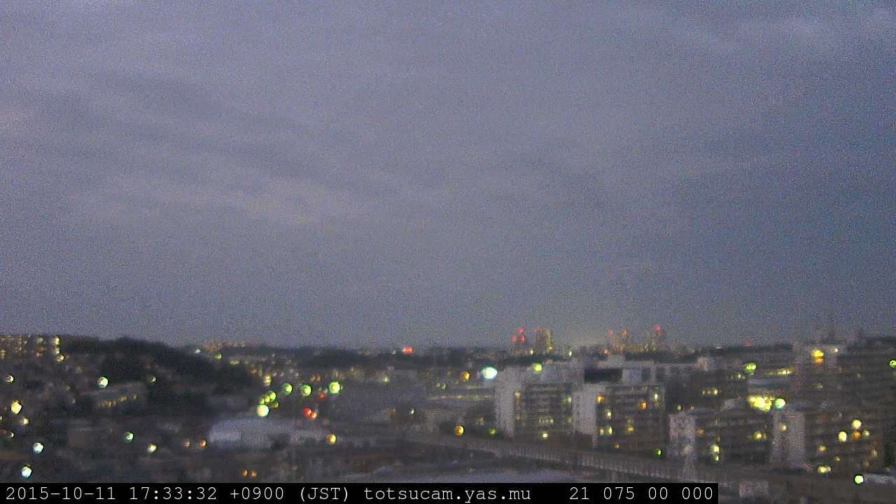 横浜市戸塚駅周辺から 東戸塚方面(北北東)を望む展望カメラの映像です。 左は現在の映像です。 下に並んでいるのは、 7日間に亘る日の出どき、昼間、夕暮れどきの写真(サムネイル)です。 それぞれ、日の出15分前、南中時、日没20分後の写真となっています。 各写真の下にはmpeg形式の動画へのリンクがあります。 それぞれ、日の出、南中、日没の前後1時間の画像です。 右欄にはその日24時間の動画へのリンクがあります。 この7日間以外は日付が一覧表示されています。 日付部分をクリックすると、 その日付から7日分が展開されて表示されます。